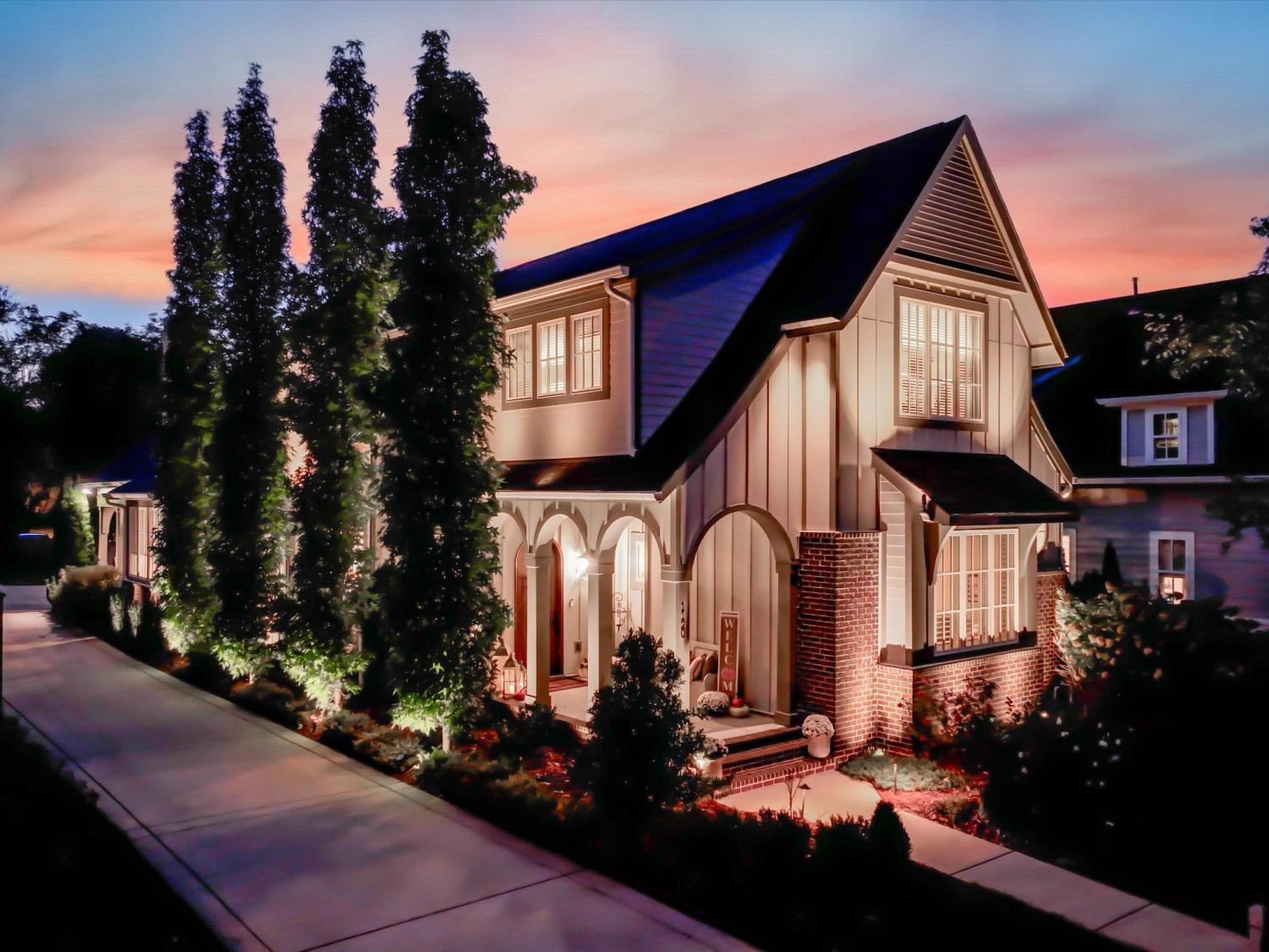 Experience timeless craftsmanship and modern luxury in this custom-built 2019 Hidden Valley estate, ideally located within walking distance of Downtown Franklin and the exciting future Margin & Hill Center Franklin districts. This thoughtfully designed home combines elegance and functionality on a level homesite. Step through the custom mahogany front door into a light-filled open floor plan accented by sand and finished hardwood floors, with ship lapped, coffered, and vaulted ceilings with decorative wood beams. The great room’s floor-to-ceiling stone fireplace creates a stunning focal point and invites gatherings of any size. The chef’s kitchen is both stylish and practical, featuring a massive island with seating for five, professional Thermador appliances, a butler’s pantry, and a large walk-in pantry with wood shelving to the ceiling. A full dry bar with dual wine refrigerators and ice maker make entertaining effortless, while built-in ceiling speakers and Smart Home automation add comfort and convenience throughout. The main-level primary suite is a luxurious retreat with vaulted ceilings, dual walk-in closets, and a spa-inspired bath with soaking tub and oversized shower. A second main-level guest suite offers a private shower, while two additional upstairs bedrooms, each with their own baths are complimented by a spacious bonus room and dedicated multifunctional home school, craft or hobby space. Outdoor living is exceptional, with a covered rear porch featuring Firerock stone pavers, a wood-burning fireplace, and in-ceiling speakers surrounded by professional landscaping and full irrigation. Additional highlights include a 3-car garage with extended driveway and turnaround for added parking, tankless water heater, and abundant walk-in storage or future home expansion. Located in the acclaimed Williamson County & Franklin Special School, this extraordinary home delivers luxury living, walkable convenience, and the very best of downtown Franklin lifestyle.