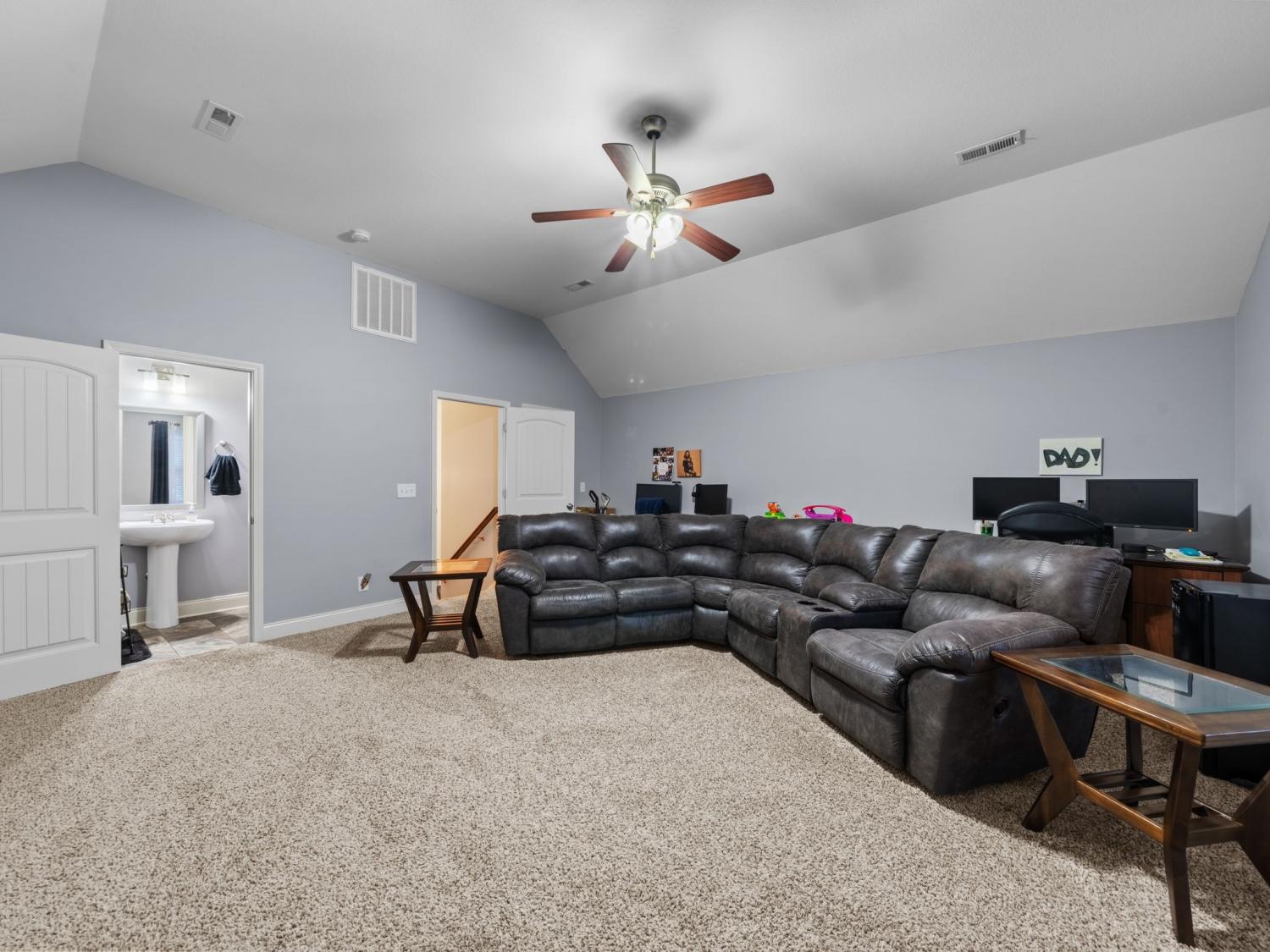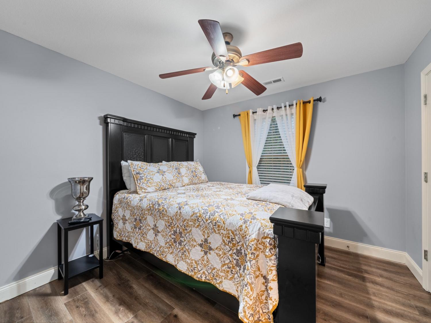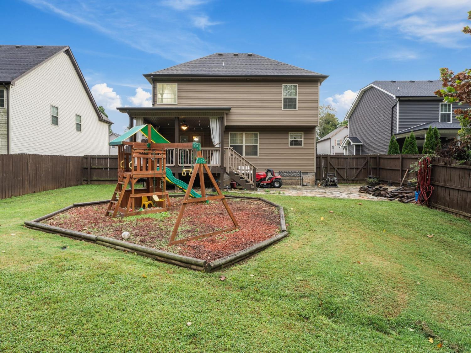 Well maintained newer home with open floor plan. Enjoy peaceful days/nights on your covered back porch overlooking a huge backyard. Children wooden play set to remain. Stone patio is perfect for entertaining with friends. The open kitchen has granite countertops and tile backsplash. An abundance of kitchen cabinets and prep space will be the highlight of your cooking experience. 3 bed 3 bath upstairs with HUGE Bonus room. The primary suite has designer ceilings and ceiling fan for comfort. Hardwood in all the spaces except bonus room. A 2 car garage completes the luxury this home offers.