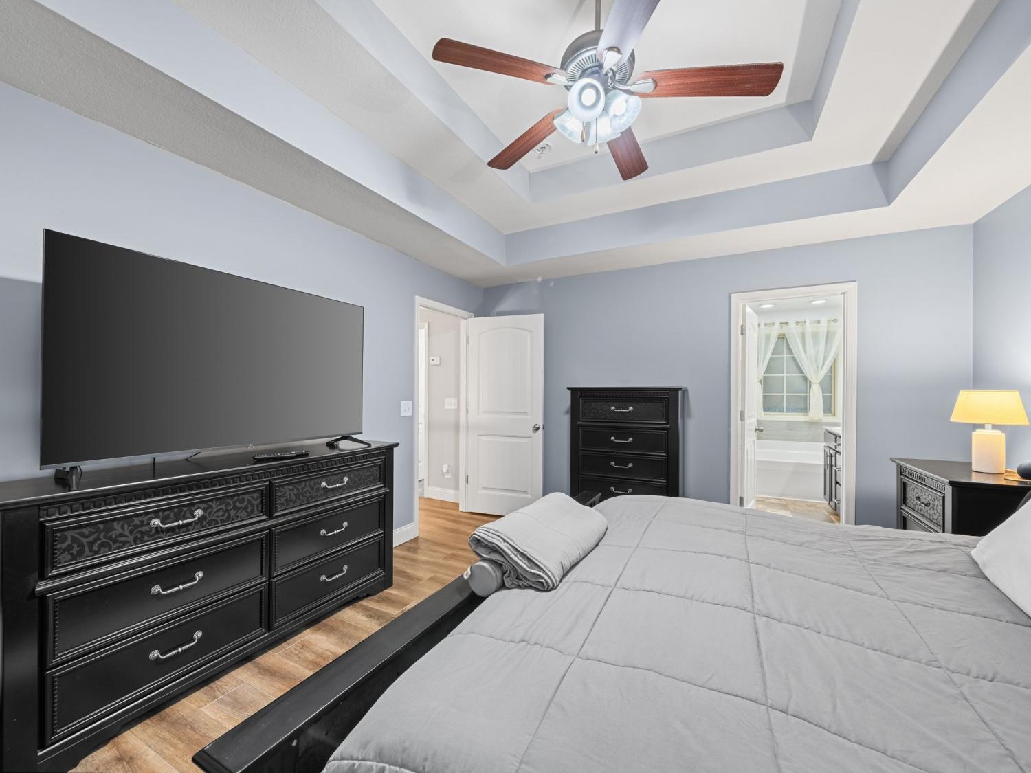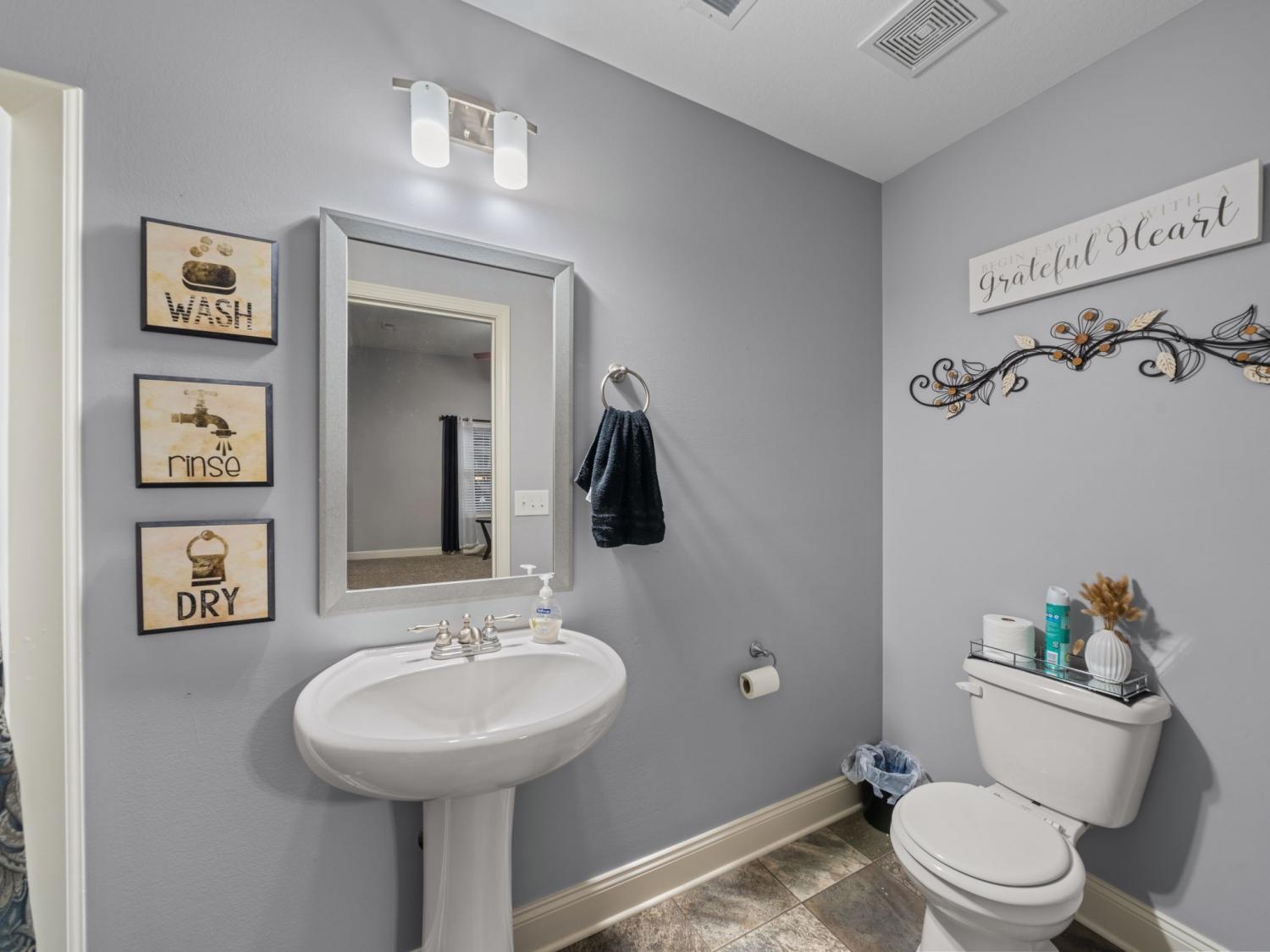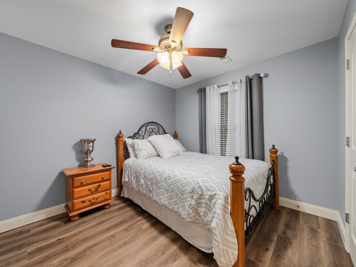 Well maintained newer home with open floor plan. Enjoy peaceful days/nights on your covered back porch overlooking a huge backyard. Children wooden play set to remain. Stone patio is perfect for entertaining with friends. The open kitchen has granite countertops and tile backsplash. An abundance of kitchen cabinets and prep space will be the highlight of your cooking experience. 3 bed 3 bath upstairs with HUGE Bonus room. The primary suite has designer ceilings and ceiling fan for comfort. Hardwood in all the spaces except bonus room. A 2 car garage completes the luxury this home offers.