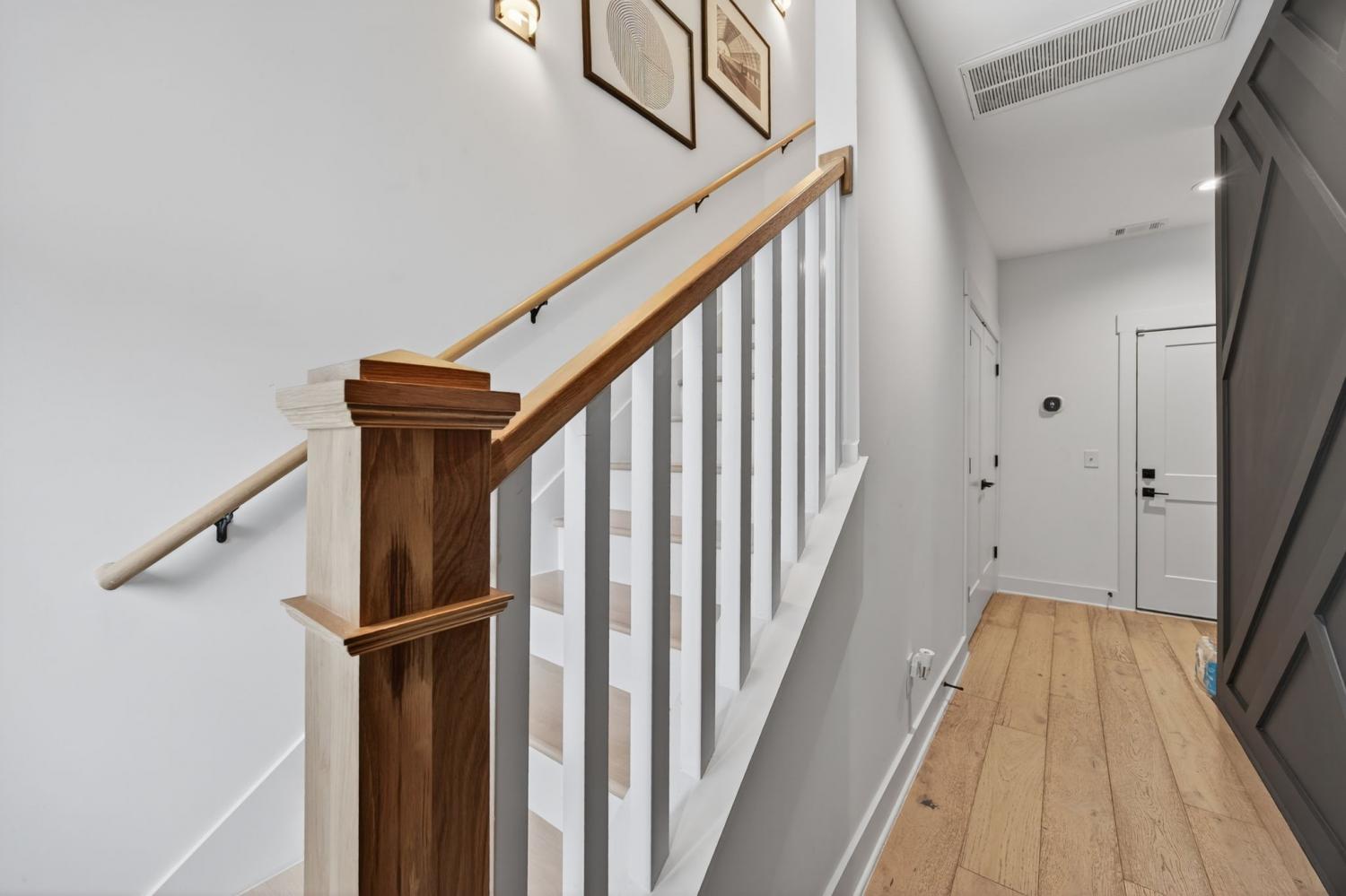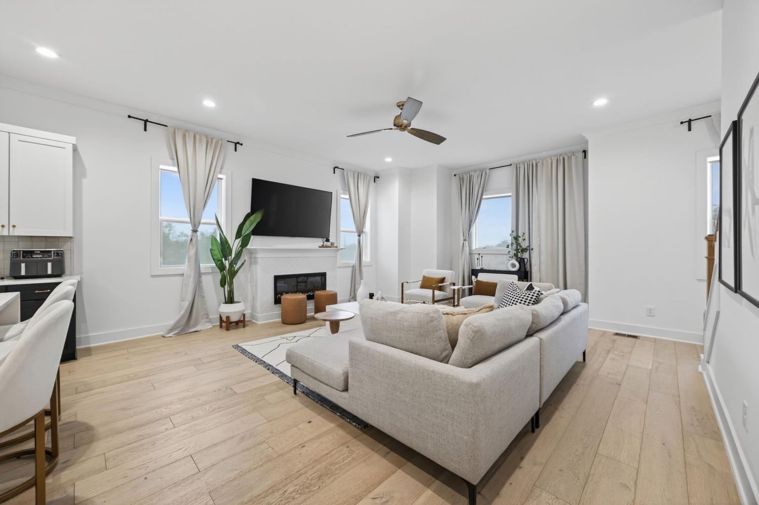 ***Seller offering $$20k$$ in closing costs/buy down/prepaids assistance -- welcome home!!*** Welcome to LIKE-NEW, luxury living at Creative Way Village! This corner-unit brownstone offers an upscale yet inviting retreat just 10 minutes from Downtown Nashville. Flooded with natural light from extra end-unit windows, the home boasts an open layout enhanced by soaring ceilings, 8’ doors, and rich engineered hardwood floors throughout. Designer-curated interiors showcase this highly upgraded unit – from the chef’s kitchen with GE Café appliances and a waterfall quartz island, to the stylish living area perfect for entertaining. The kitchen’s custom cabinetry, chic tile backsplash, and spacious pantry with built-ins will delight any home chef. Adjacent, a built-in wet bar elevates your hosting potential, while modern pendant lighting and upgraded fixtures add a touch of elegance to every room. Each of the three bedrooms is a private suite, complete with its own spa-inspired bathroom featuring quartz countertops, premium tile, and spacious vanities. The primary suite pampers you with a large walk-in closet (custom built-ins included) and a bathroom straight out of a luxury hotel. No detail has been overlooked, from the smart-home features (security cameras, smart thermostat) to the ample storage cleverly integrated on all three levels. And with a rare attached 2-car garage, you’ll have secure parking and room for all your gear – a true bonus this close to downtown. This impressive home also features a spacious bonus room/loft. Enjoy resort-style living at Creative Way Village with a sparkling pool, cabana lounge, outdoor kitchen, dog park, and yoga green space—all just steps from your door in this gated community offering privacy and peace of mind. Minutes from East Nashville’s top restaurants, shops, and entertainment, This home delivers luxury, comfort, and convenience in a truly turnkey corner home that defines modern Nashville living.