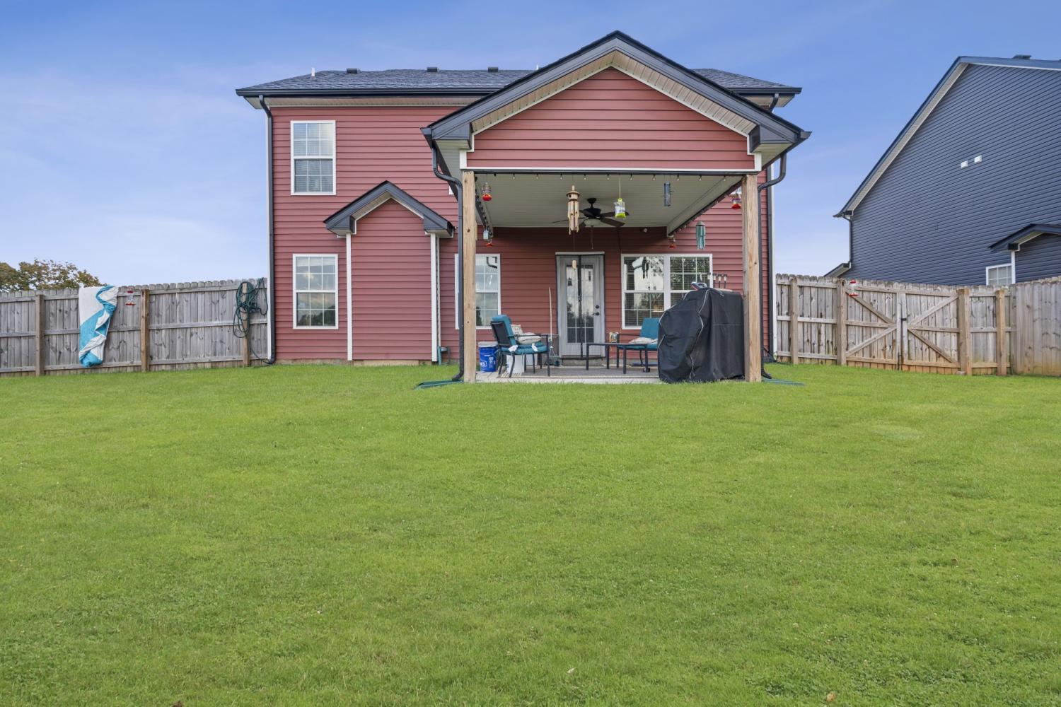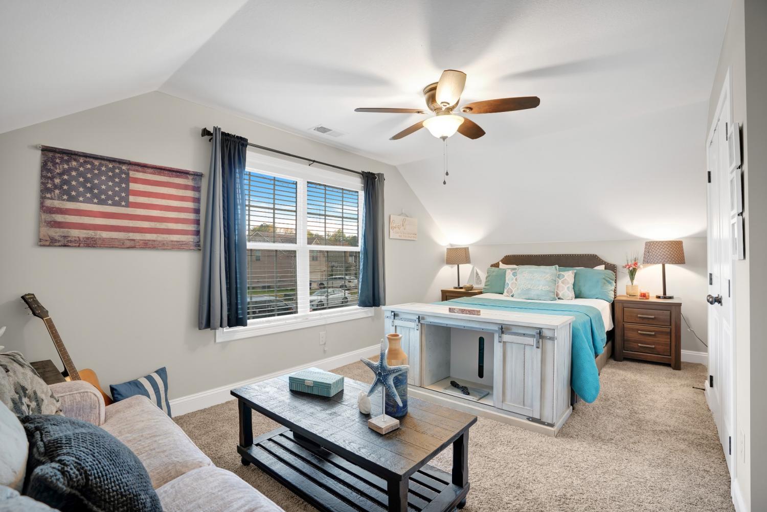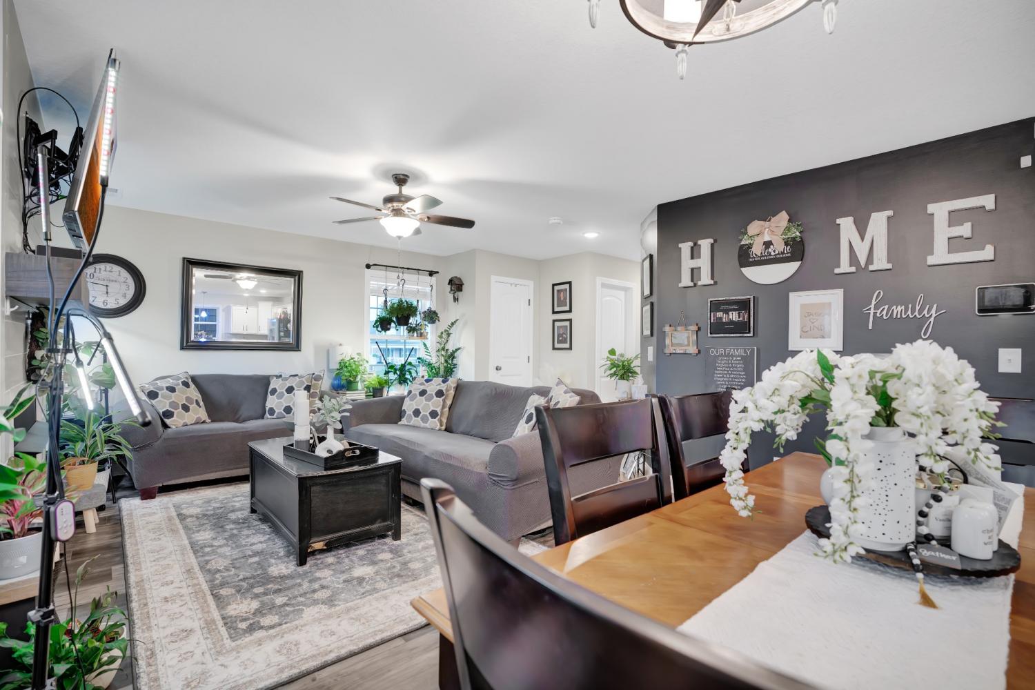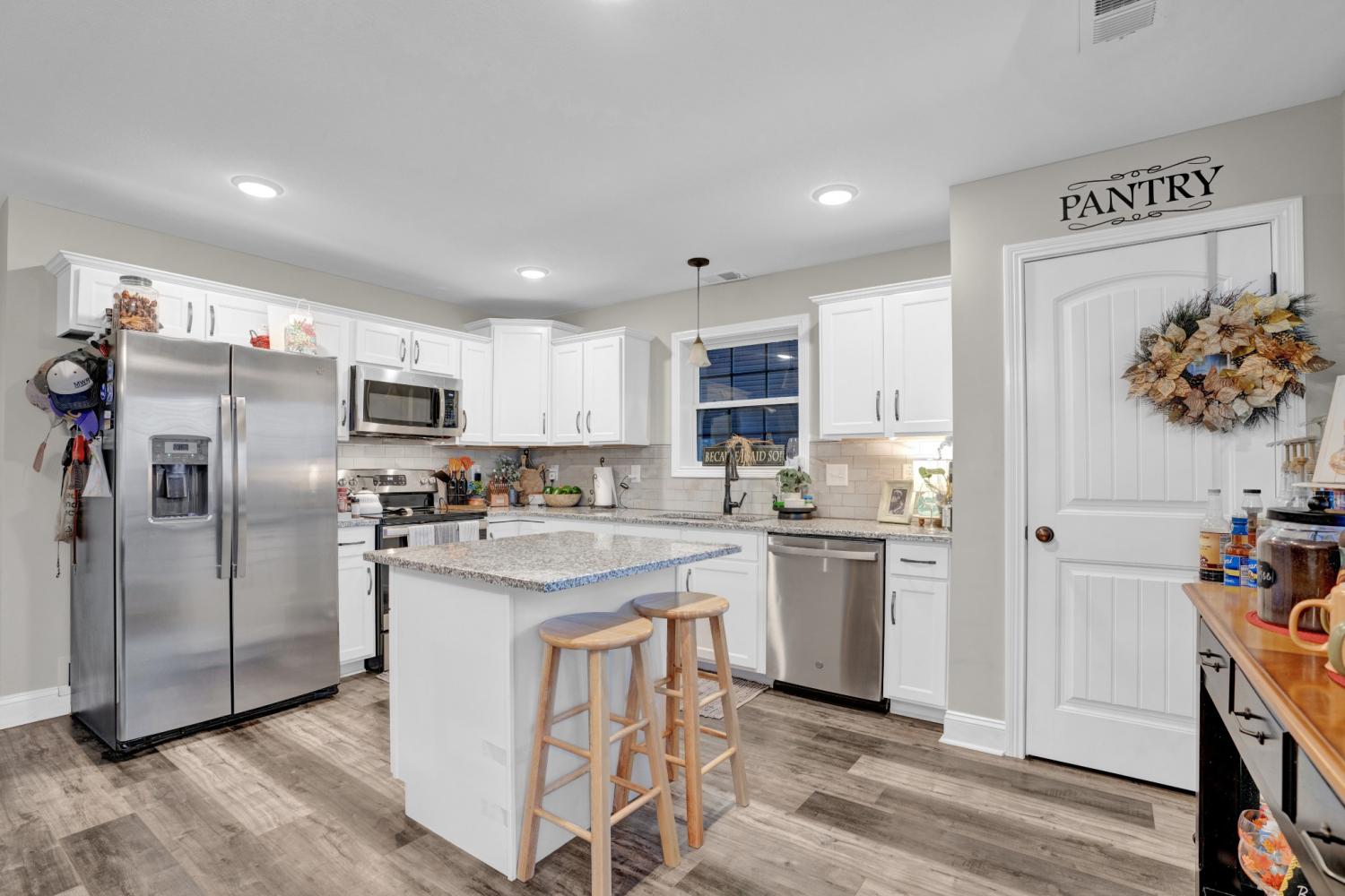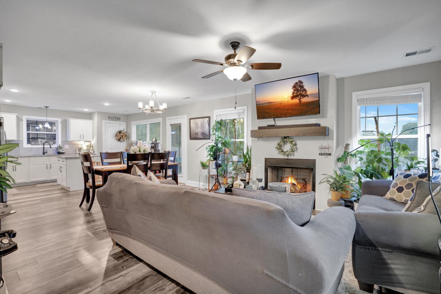 This beautifully designed Hollingsworth Floor Plan offers 4 bedrooms and 2.5 baths, blending style and functionality throughout. The spacious living room features a cozy fireplace, while the gourmet kitchen includes granite countertops, stainless steel appliances, a tile backsplash, and ample cabinetry. Tile flooring accents all wet areas, complemented by rich wood floors in the main living spaces. The luxurious primary suite showcases a granite composite shower and dual vanities, creating the perfect retreat. A must-see home that combines comfort, quality, and modern elegance!