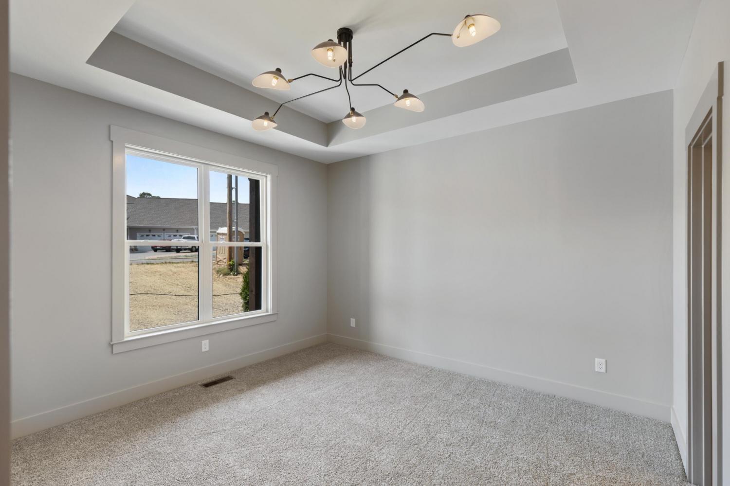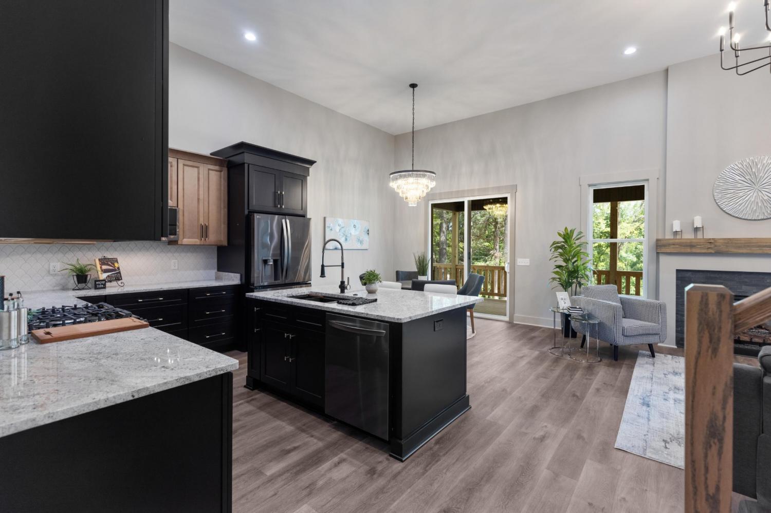 Welcome to your dream home in Fort Oglethorpe - an exquisite new construction home with an amazing floor plan that is gracefully positioned on a large corner lot in one of the area's most desirable subdivisions. Step into an expansive open-concept main level home, where soaring ceilings elevate the living and dining areas, anchored by a cozy gas log fireplace and serene views of the backyard from your dining space. The gourmet kitchen is a chef's delight, featuring a gas range, walk-in pantry, gleaming granite countertops, and custom cabinetry, and sleek LVP flooring that flows seamlessly throughout the home. The main-level primary suite is a luxurious retreat with an accent wall, tranquil views, and a spa-inspired bath featuring double vanities, a walk-in closet, and a soaking tub perfectly positioned beneath a window. Enjoy the convenience of the main-level en-suite bedroom, while everyday function shines in the tiled laundry room with built-in cabinetry and a thoughtfully designed mudroom. Upstairs, discover two generously sized bedrooms with expansive closets, a well appointed full bath & a versatile bonus room - ideal for a home office, playroom, or a quiet retreat. Thoughtfully designed, the upper level also includes a spacious floored attic, offering ample storage for all of life's extras. Savor peaceful evenings on your elevated covered back deck, complete with ceiling fans, multiple outlets, and convenient stairs leading to the back yard, or start your mornings sipping coffee on the inviting covered front porch, perfect for two rocking chairs. The oversized 2-car garage adds everyday practicality, while every closet features custom-built cabinetry, offering a tailored and truly refined touch throughout the home. Conveniently located near shops, restaurants, parks, schools, and major highways, this home combines high-end living