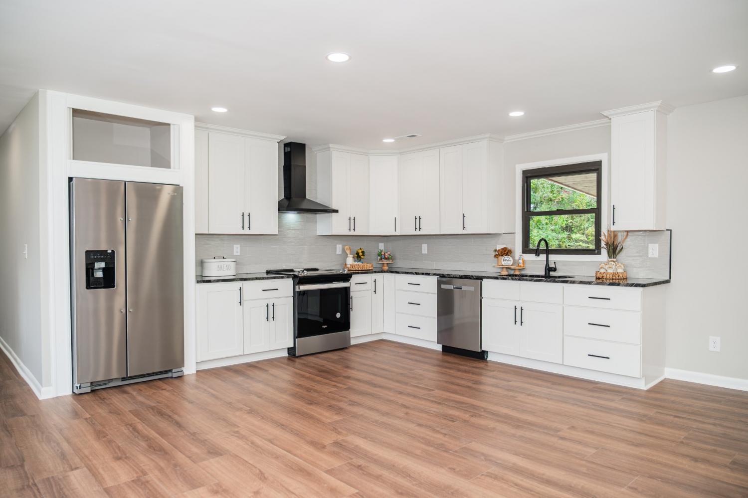 Welcome to one of Manchester’s most established and beloved neighborhoods! Nestled in the heart of town yet offering that peaceful “country feel,” this beautifully renovated home at 1221 Hillcrest Drive truly offers the best of both worlds: comfort, convenience, and character. From the moment you arrive, you’ll fall in love with the park-like yard, concrete driveway, and two-car garage that make daily living easy. Step through the stunning new front doorway into a spacious open-concept floor plan that feels bright, modern, and inviting. The home has been completely renovated from top to bottom, with LVP flooring, tile, and new carpet in the bedrooms. The kitchen is a showstopper, featuring granite countertops, new stainless-steel appliances, and elegant finishes that flow seamlessly into the living area. A cozy gas fireplace anchors the living room, perfect for relaxing or entertaining guests. You’ll love the mudroom/utility area for its practicality and style, and the half bath adds a perfect touch of convenience for visitors. Throughout the home, you’ll find exquisite light fixtures, custom hardware, and beautifully designed bathrooms both full baths showcasing tile showers, gorgeous finishes, and thoughtful attention to detail. Step outside and unwind under the covered back patio, ideal for backyard gatherings, morning coffee, or quiet evenings enjoying the peaceful surroundings. Whether you’re relaxing outdoors or welcoming friends, this home captures the feeling of small-town charm and timeless Tennessee living…right in the heart of Manchester.