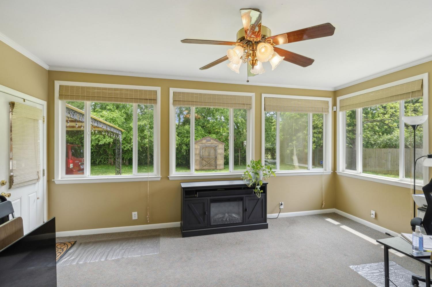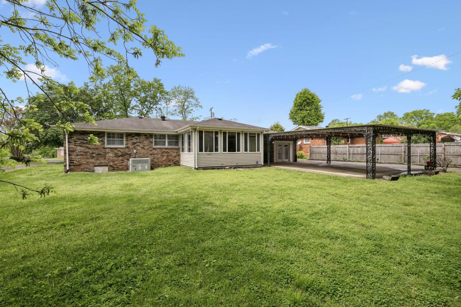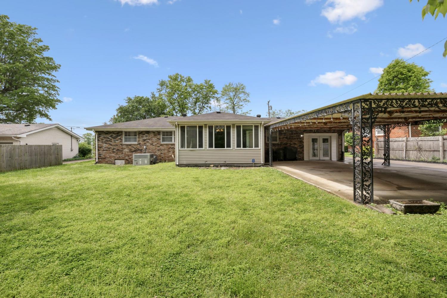 Fantastic layout on this classic ranch with ample space for entertaining inside and outside! This home has multiple living areas, a spacious kitchen with updated cabinets, built in cook top, wall oven and eat-in dining area with full glass doors leading to the sunroom. Garage was converted to den in 2020 with modern flooring, large closet and french doors leading outside. The hall bathroom has vintage charm while a double vanity with granite top, large mirror and linen closet make it practical. Primary bedroom has half bath, original hardwood flooring and double closets. Plenty of windows throughout providing good natural light. Step out into the back yard to find a massive 3 car carport big enough for outdoor living and parking overlooking a huge, level back yard!