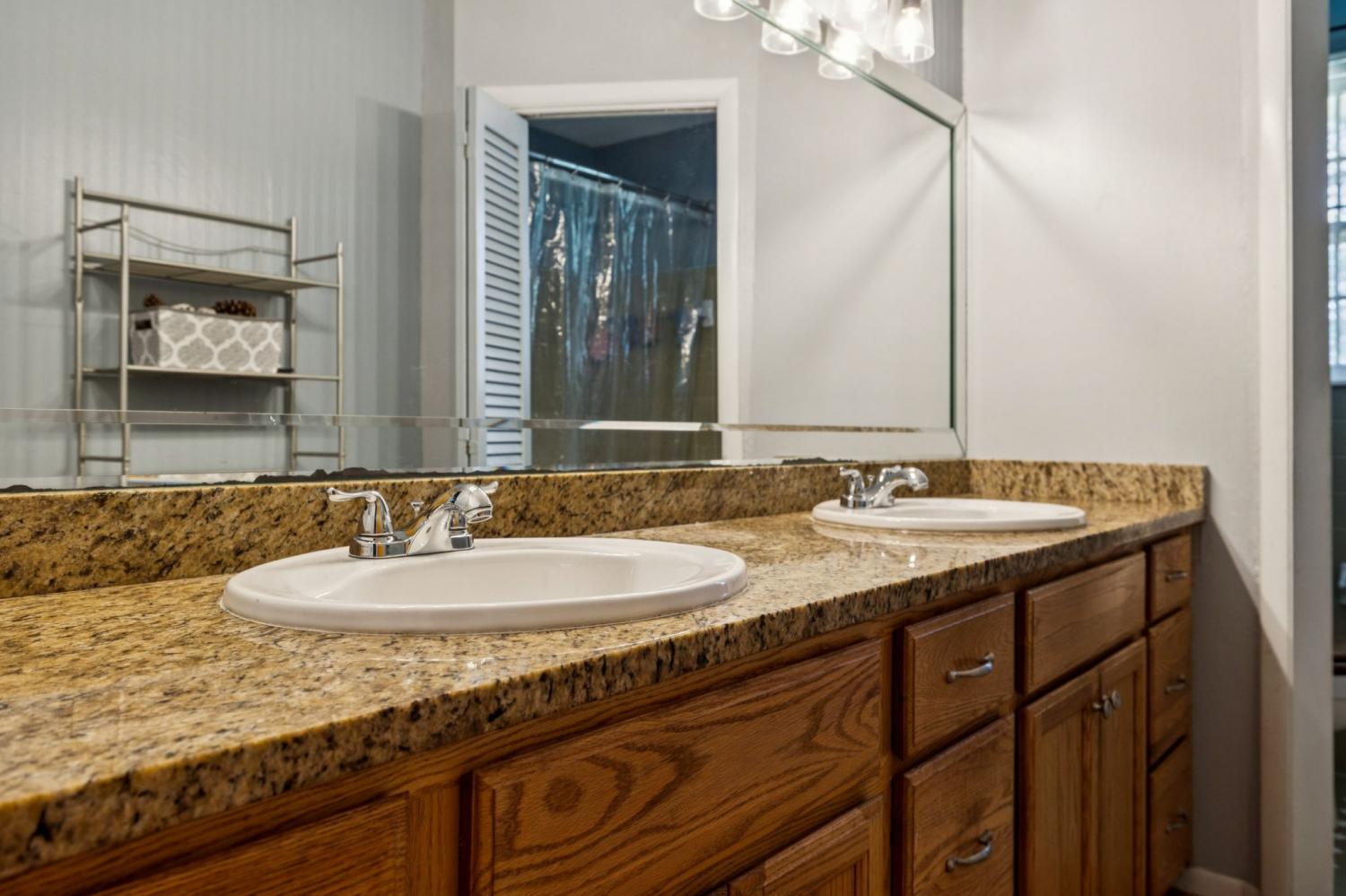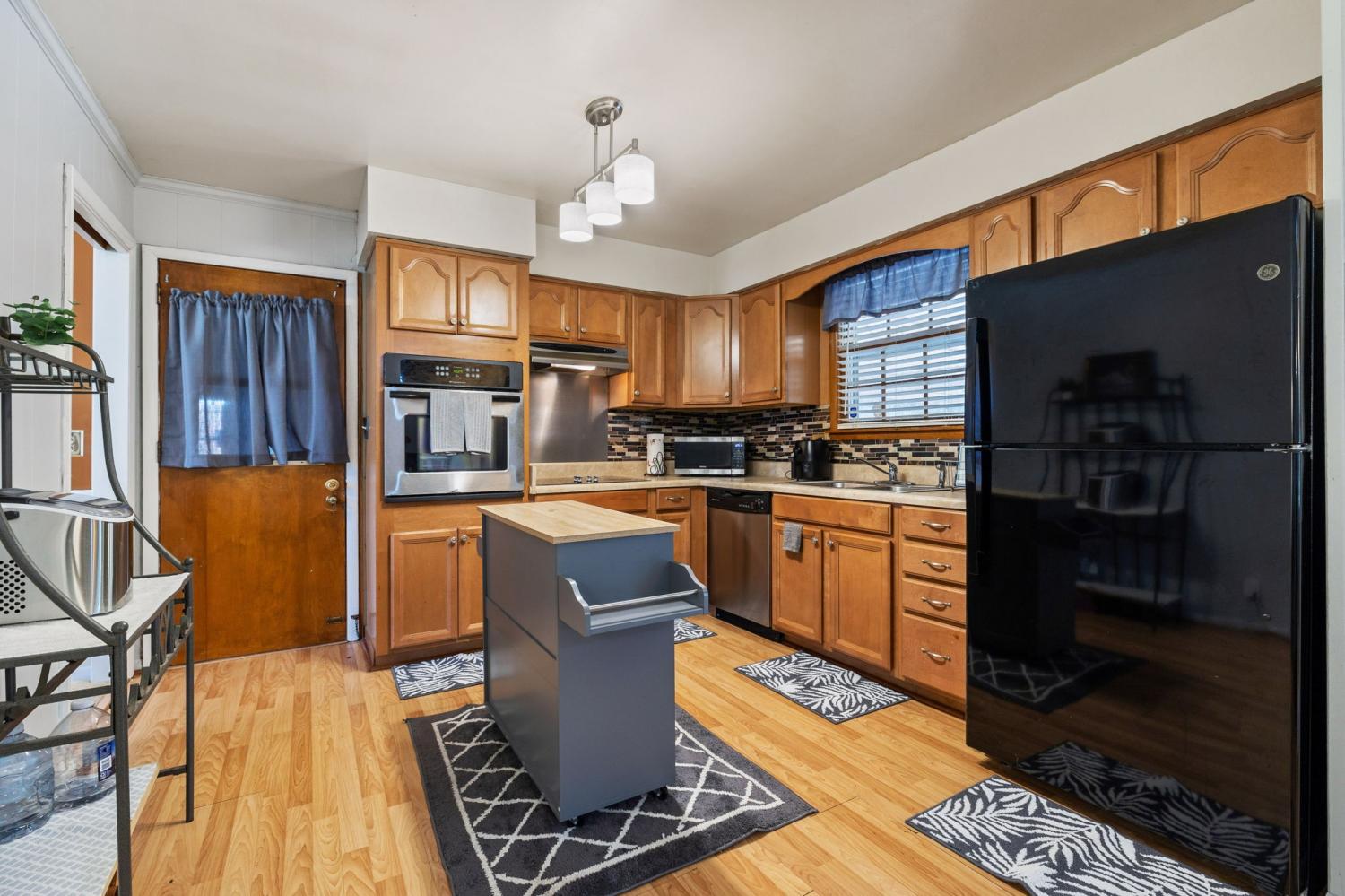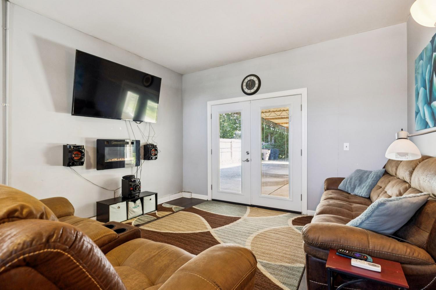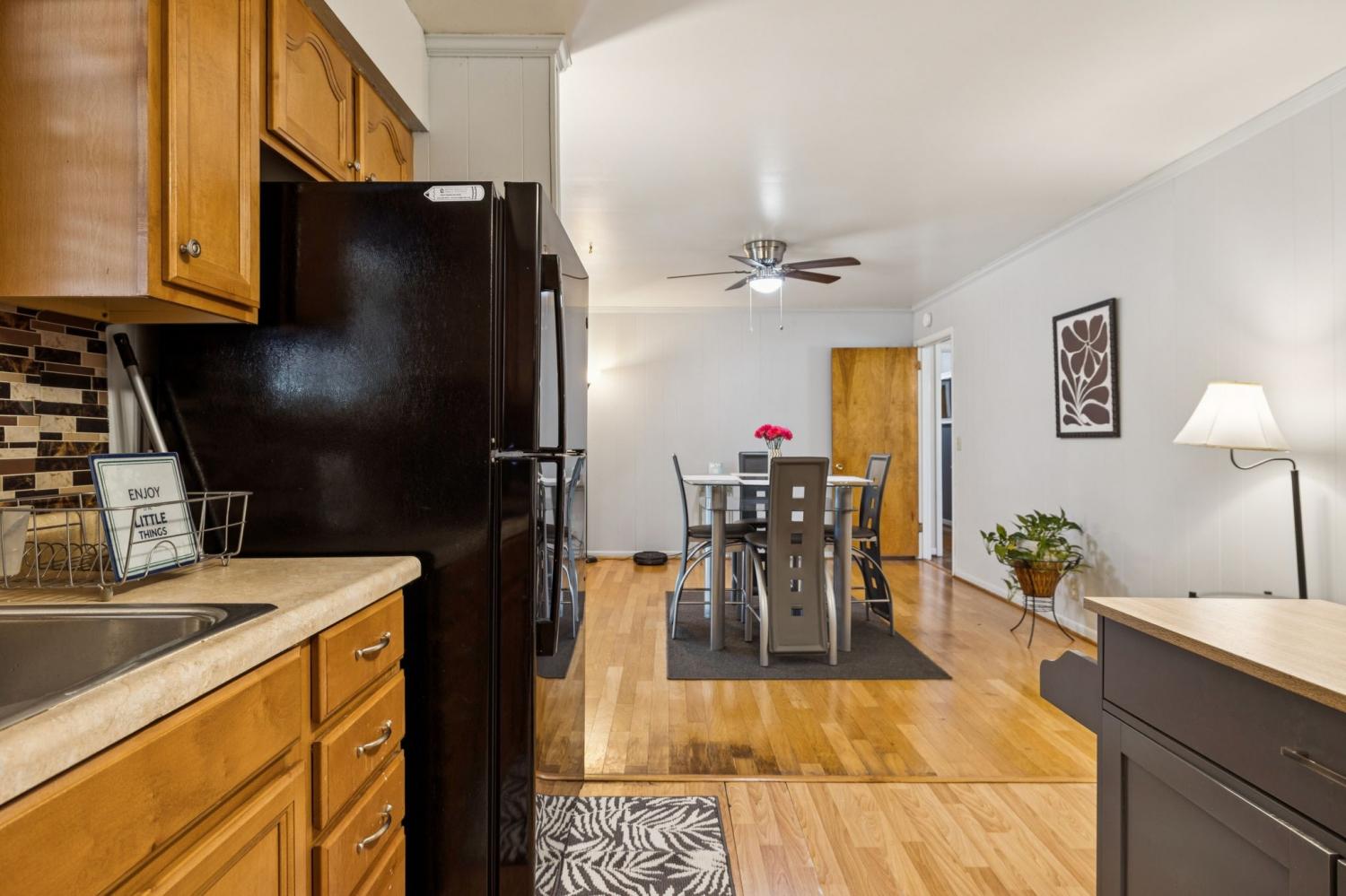 Fantastic layout on this classic ranch with ample space for entertaining inside and outside! This home has multiple living areas, a spacious kitchen with updated cabinets, built in cook top, wall oven and eat-in dining area with full glass doors leading to the sunroom. Garage was converted to den in 2020 with modern flooring, large closet and french doors leading outside. The hall bathroom has vintage charm while a double vanity with granite top, large mirror and linen closet make it practical. Primary bedroom has half bath, original hardwood flooring and double closets. Plenty of windows throughout providing good natural light. Step out into the back yard to find a massive 3 car carport big enough for outdoor living and parking overlooking a huge, level back yard!