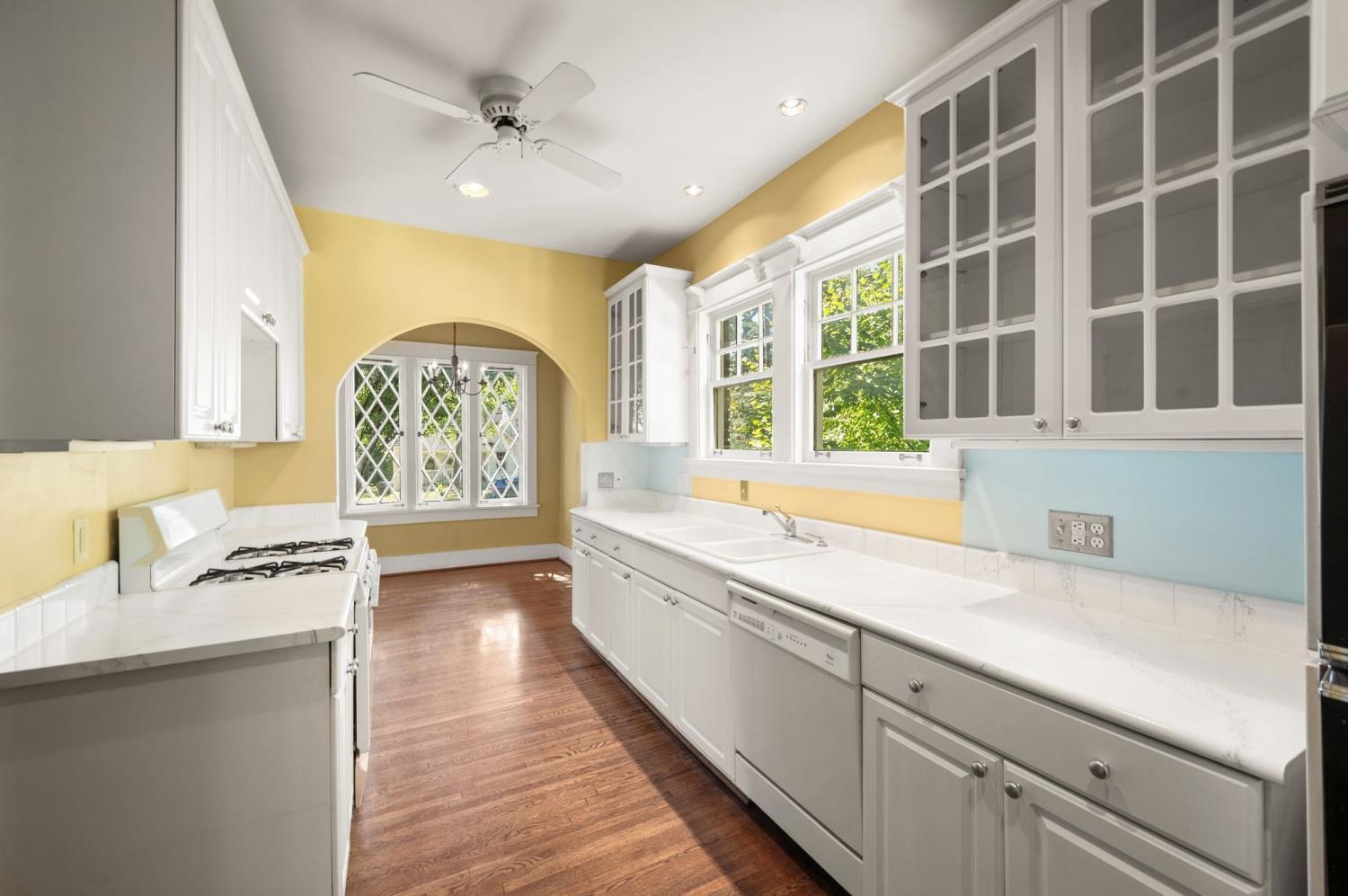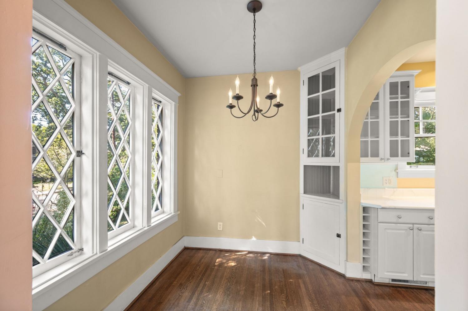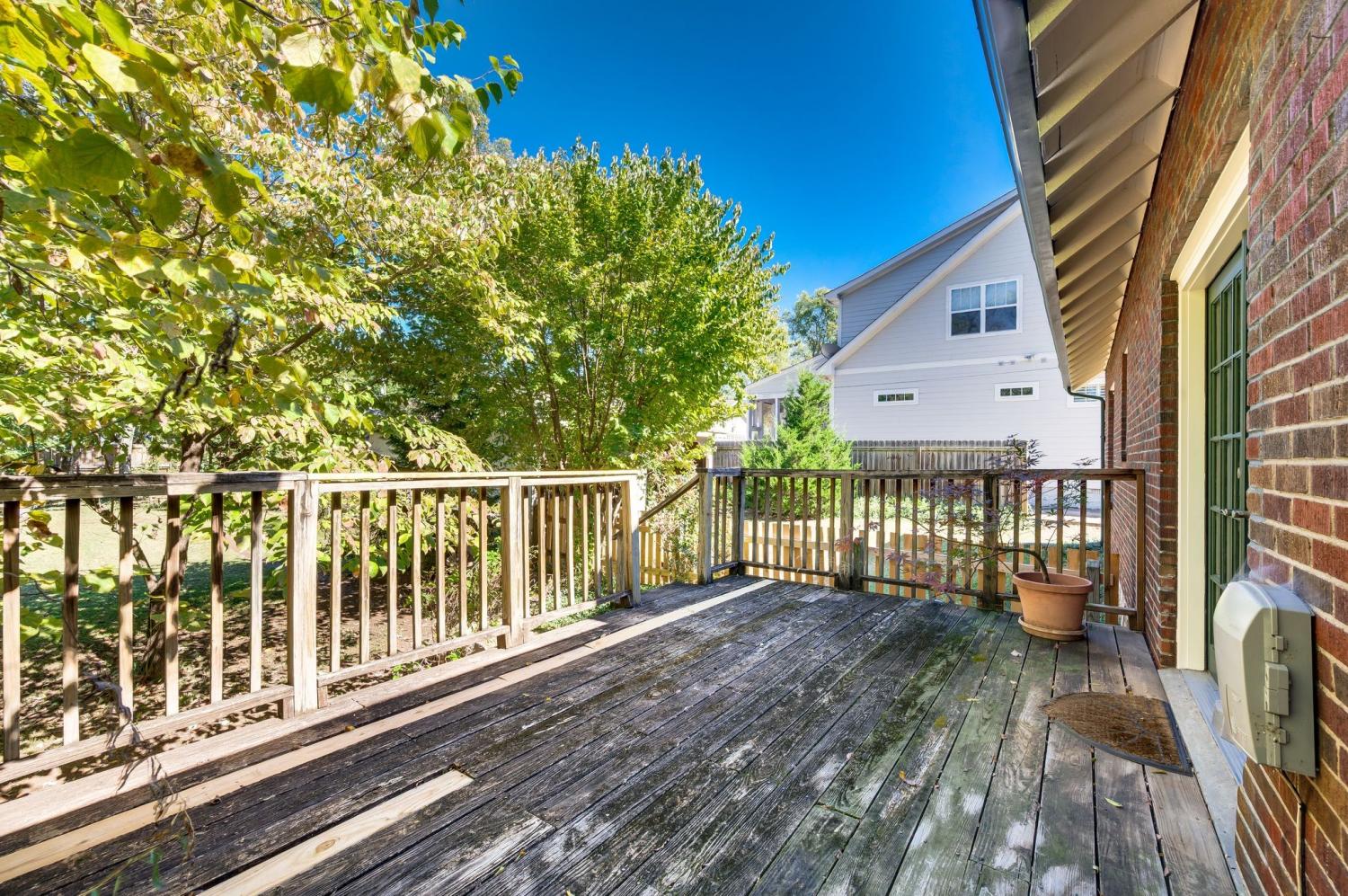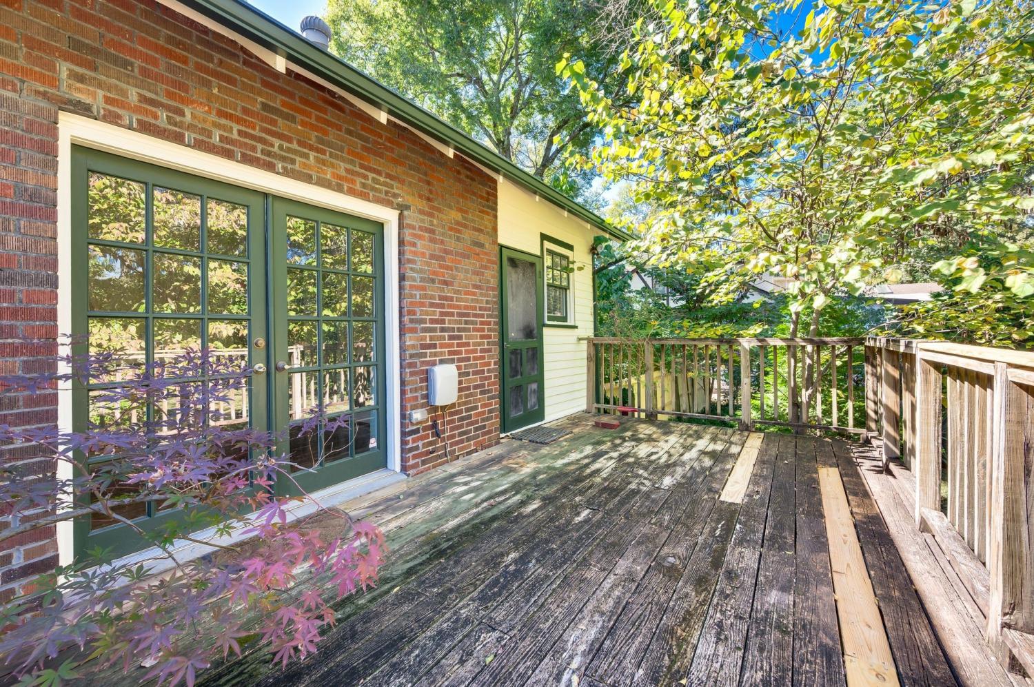 Classic brick Tudor cottage in Hillsboro Village. This home retains it's storybook charm...a blue, arched front door, oak hardwood floors, original wood doors, doorknobs and windows. The dreamy breakfast room has operational leaded glass casement windows and two built-in corner cabinets. The second floor features a flex room, perfect for a sitting room, office or nursery, a primary bedroom and a full bath. There is a side porch, tranquil deck, fully fenced back yard and a two-car detached garage. The gorgeous landscaping and outdoor gardens have been lovingly maintained and are marked with informational signs. The house is situated on a larger than average city lot that abuts the "secret sidewalk" (shhh!).