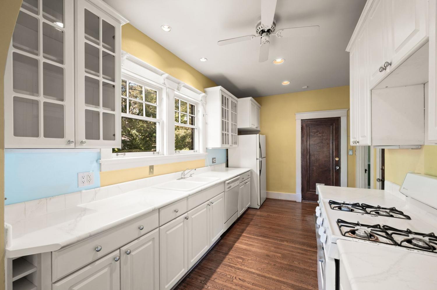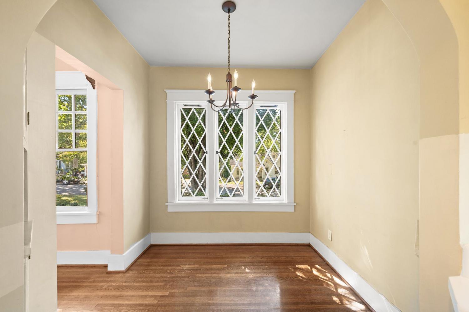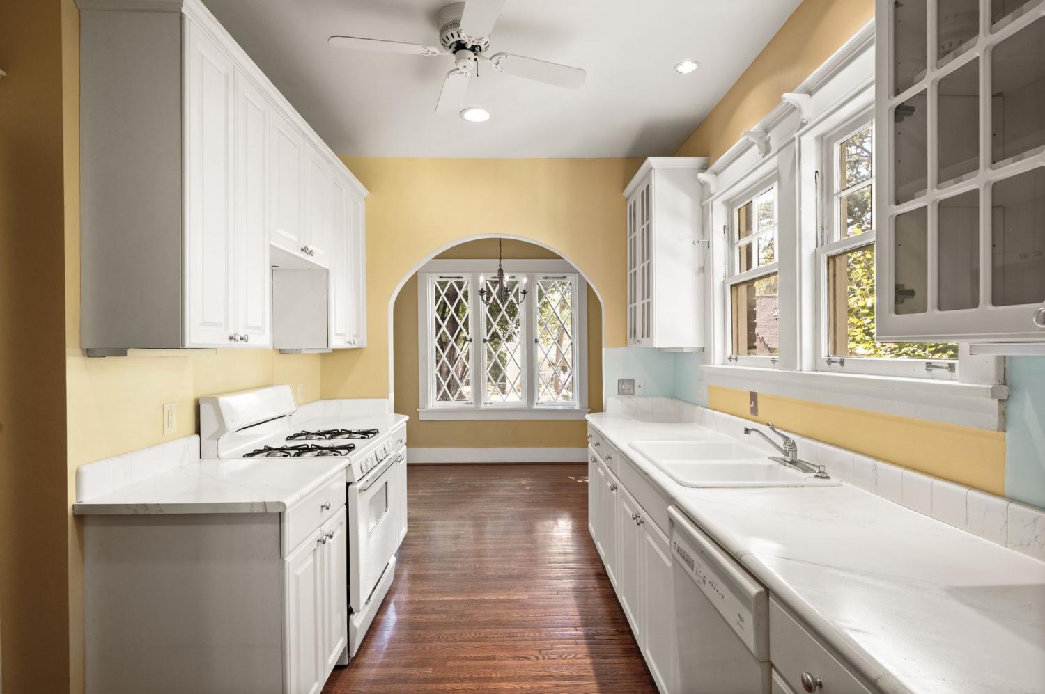 Classic brick Tudor cottage in Hillsboro Village. This home retains it's storybook charm...a blue, arched front door, oak hardwood floors, original wood doors, doorknobs and windows. The dreamy breakfast room has operational leaded glass casement windows and two built-in corner cabinets. The second floor features a flex room, perfect for a sitting room, office or nursery, a primary bedroom and a full bath. There is a side porch, tranquil deck, fully fenced back yard and a two-car detached garage. The gorgeous landscaping and outdoor gardens have been lovingly maintained and are marked with informational signs. The house is situated on a larger than average city lot that abuts the "secret sidewalk" (shhh!).