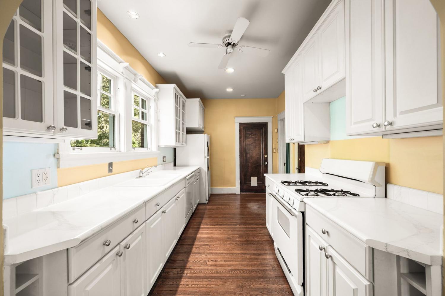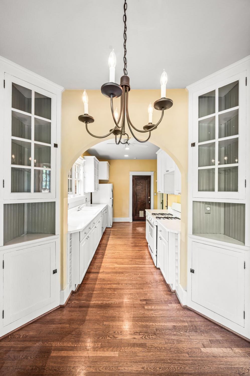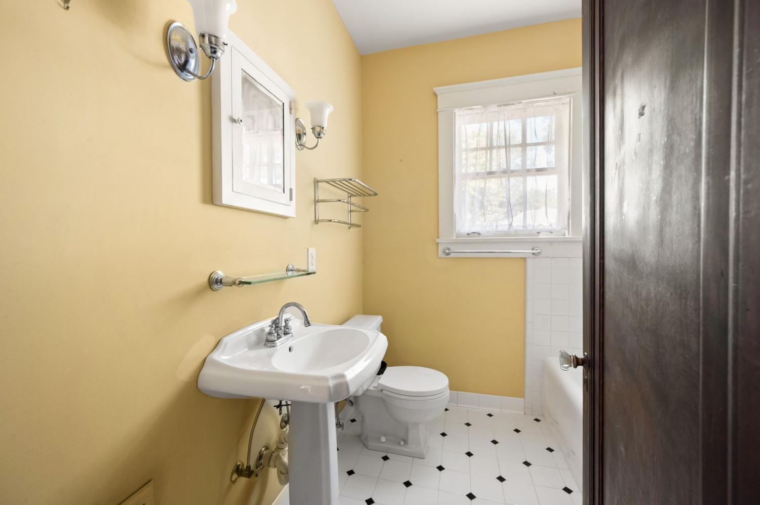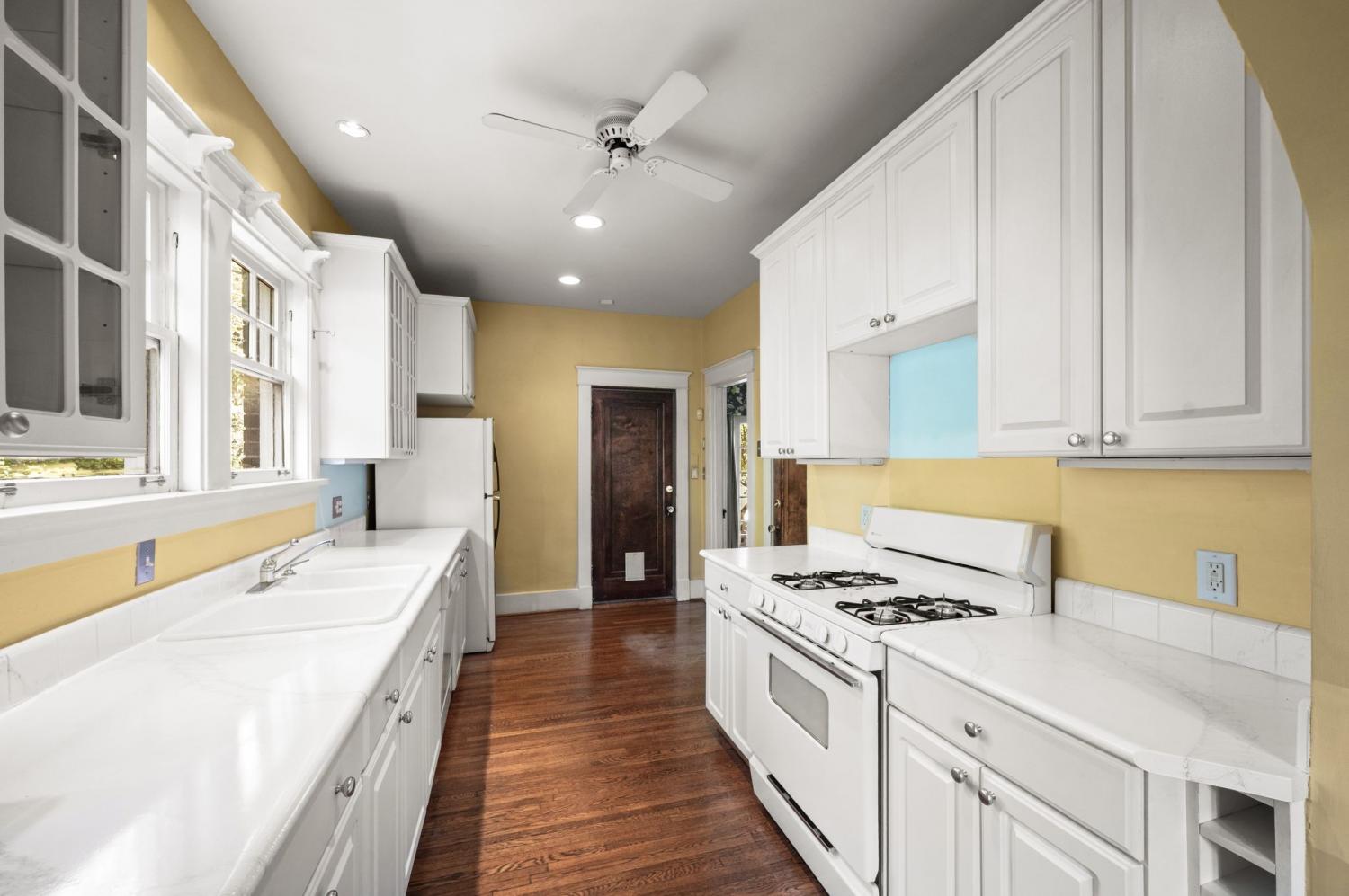 Classic brick Tudor cottage in Hillsboro Village. This home retains it's storybook charm...a blue, arched front door, oak hardwood floors, original wood doors, doorknobs and windows. The dreamy breakfast room has operational leaded glass casement windows and two built-in corner cabinets. The second floor features a flex room, perfect for a sitting room, office or nursery, a primary bedroom and a full bath. There is a side porch, tranquil deck, fully fenced back yard and a two-car detached garage. The gorgeous landscaping and outdoor gardens have been lovingly maintained and are marked with informational signs. The house is situated on a larger than average city lot that abuts the "secret sidewalk" (shhh!).