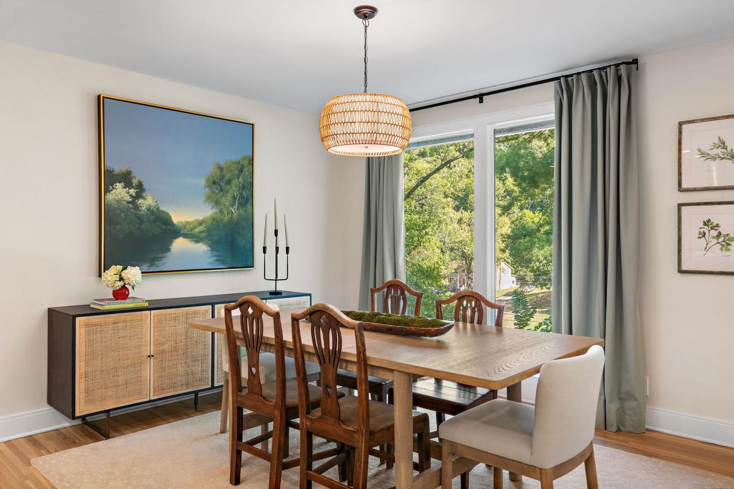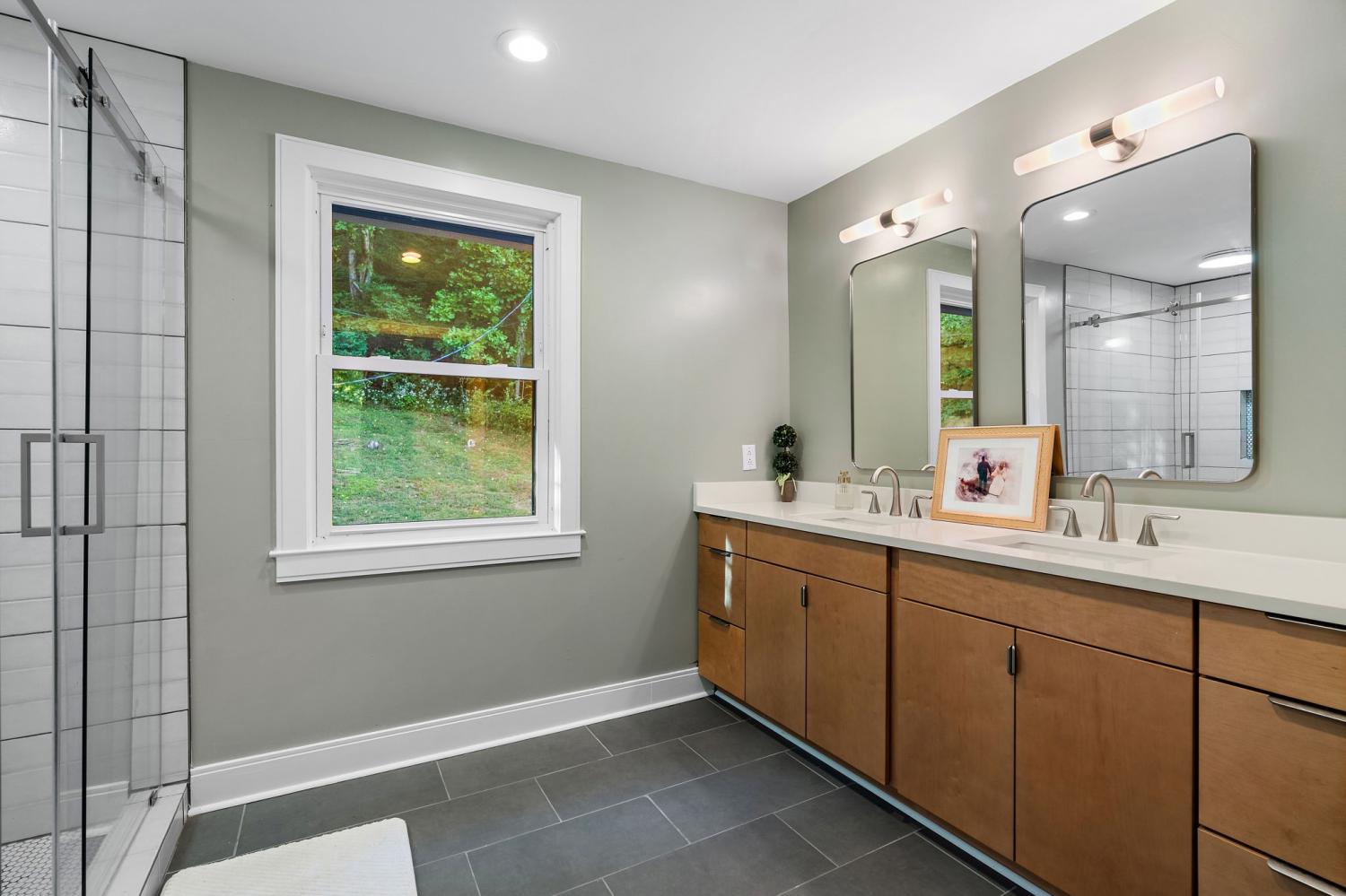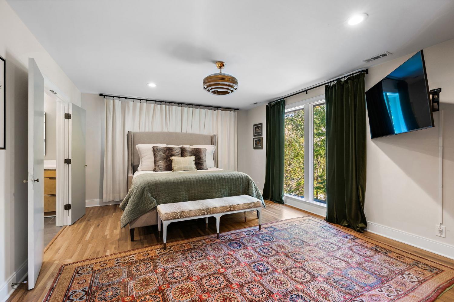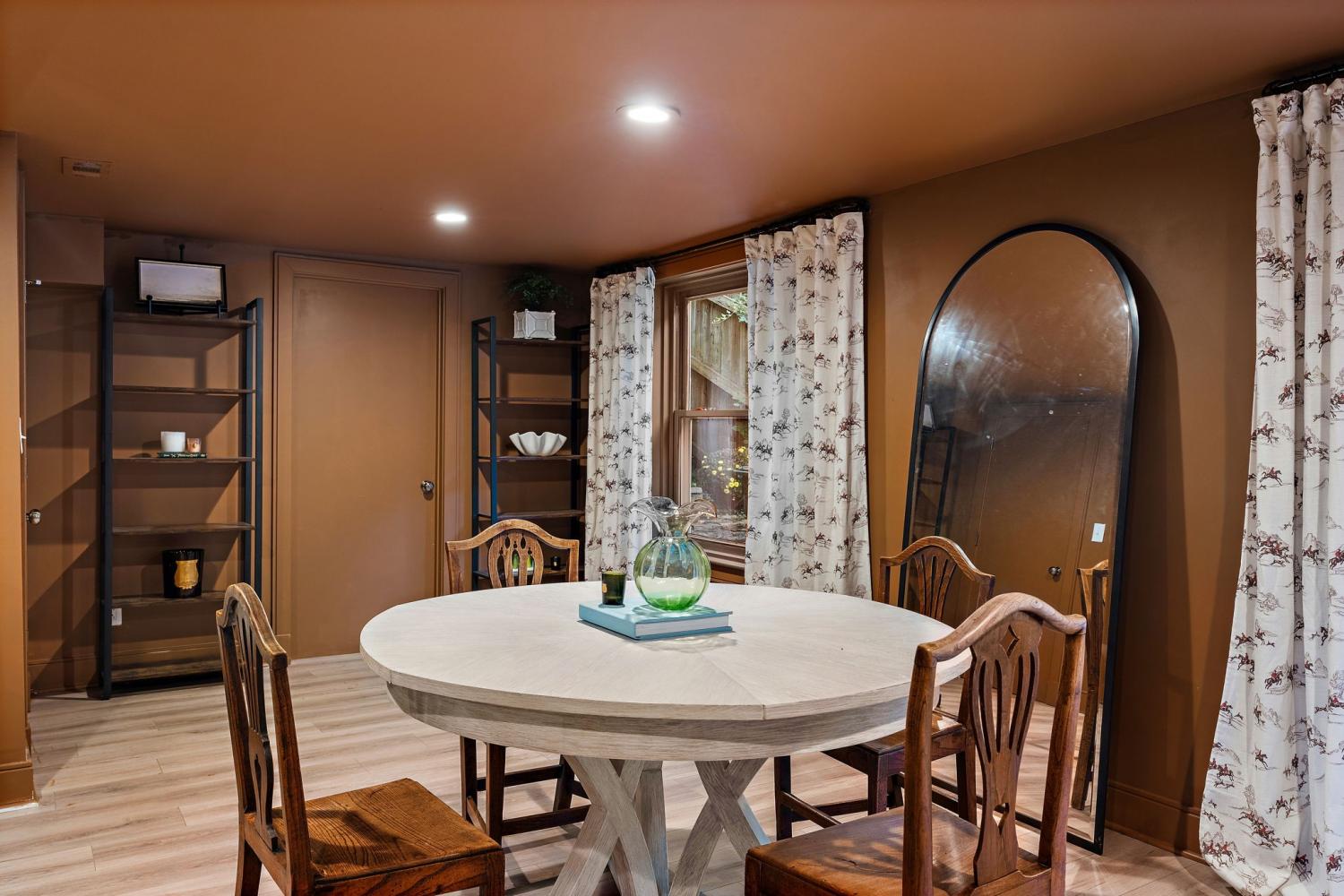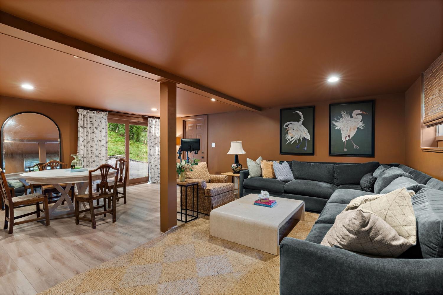 Mid-century exterior meets traditional modern living in this beautifully updated West Meade residence. Set on a large, private wooded lot near the heart of Nashville, this home offers rare privacy with convenient access to nearby shops, dining, and major thoroughfares. Designed for comfortable one-level living, the main floor features vaulted ceilings, expansive windows, and an open layout filled with natural light. Recent updates include refreshed paint, updated lighting, new curtain hardware, a newer roof, and a tankless water heater. The private primary suite occupies one wing, while three bedrooms and two full baths sit on the other. The finished walkout lower level provides flexible space for recreation, media, or an office with direct outdoor access. The spacious backyard offers areas for outdoor activities and gatherings, complemented by both front and rear parking that accommodates guests with ease. A large back patio with pergola seamlessly extends the living area for indoor-outdoor entertaining.