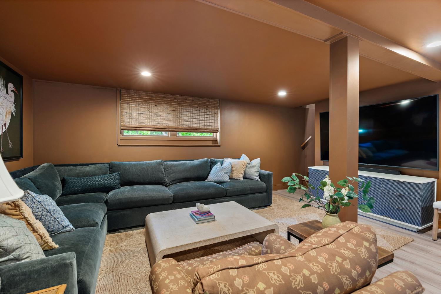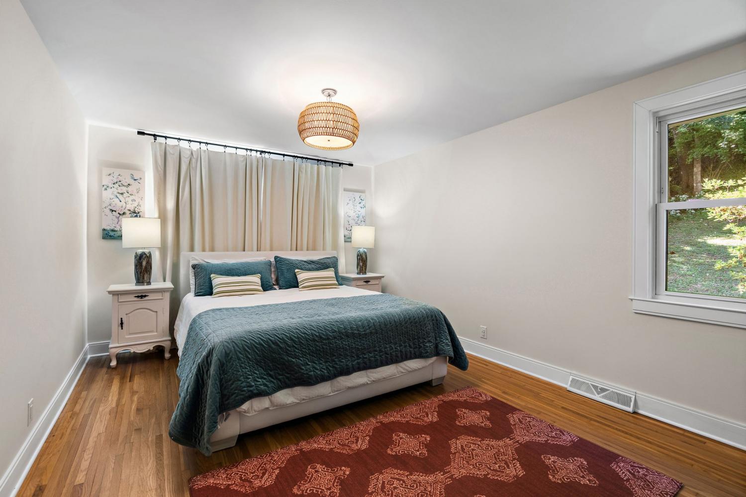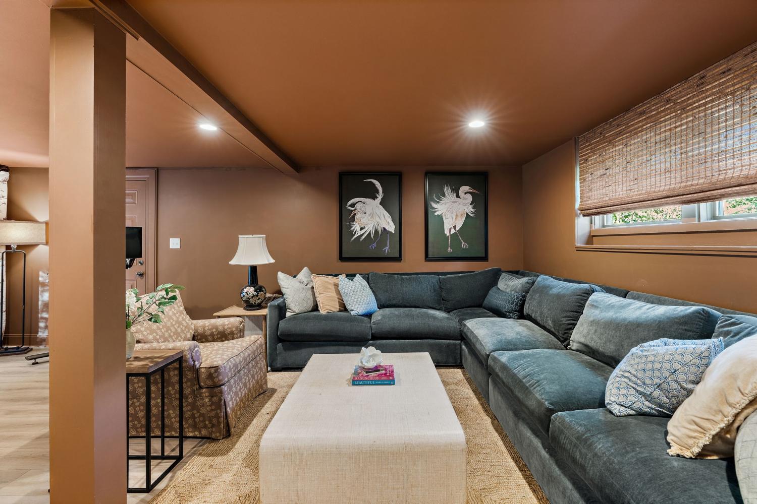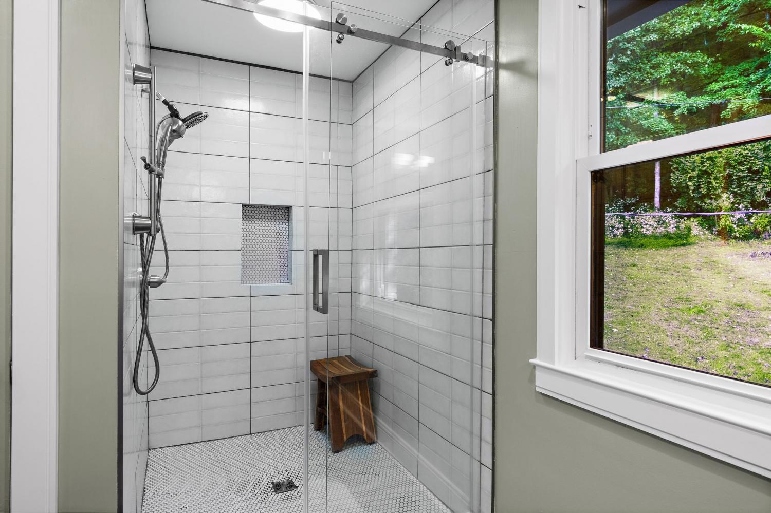 Mid-century exterior meets traditional modern living in this beautifully updated West Meade residence. Set on a large, private wooded lot near the heart of Nashville, this home offers rare privacy with convenient access to nearby shops, dining, and major thoroughfares. Designed for comfortable one-level living, the main floor features vaulted ceilings, expansive windows, and an open layout filled with natural light. Recent updates include refreshed paint, updated lighting, new curtain hardware, a newer roof, and a tankless water heater. The private primary suite occupies one wing, while three bedrooms and two full baths sit on the other. The finished walkout lower level provides flexible space for recreation, media, or an office with direct outdoor access. The spacious backyard offers areas for outdoor activities and gatherings, complemented by both front and rear parking that accommodates guests with ease. A large back patio with pergola seamlessly extends the living area for indoor-outdoor entertaining.