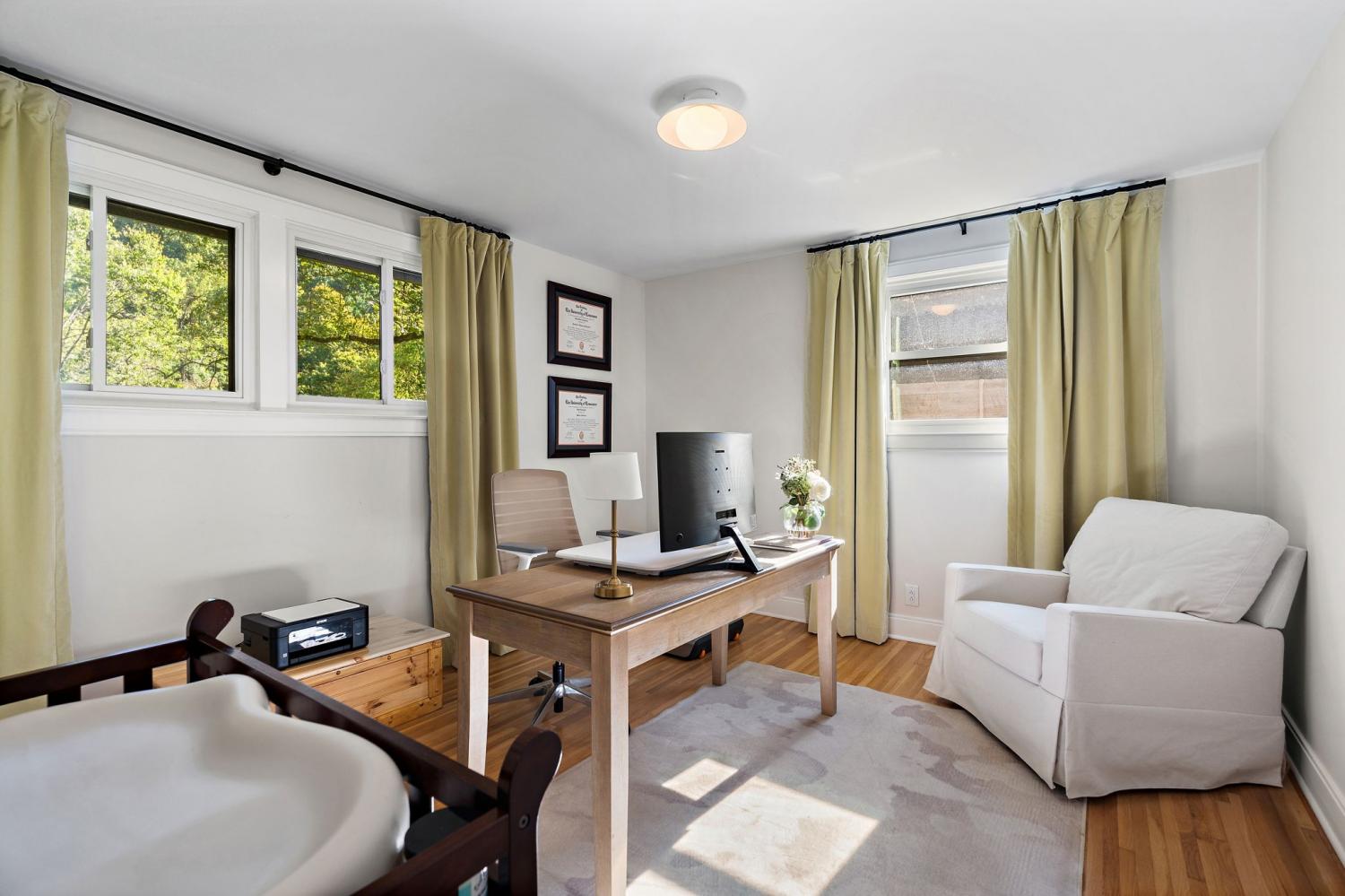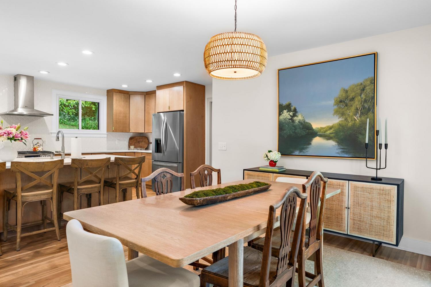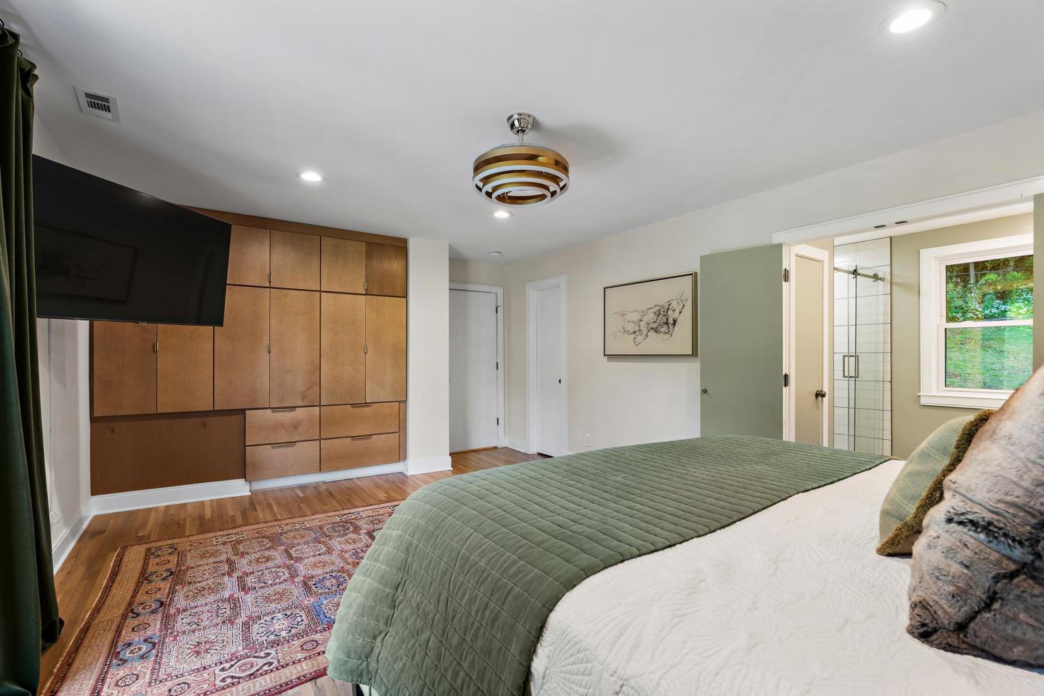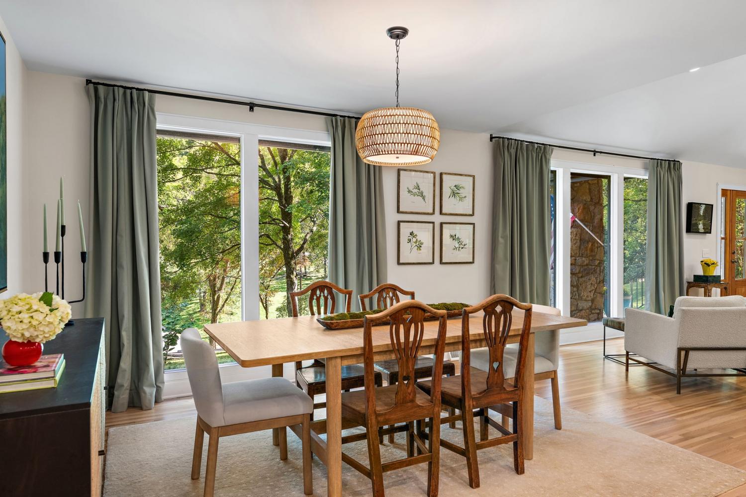 Mid-century exterior meets traditional modern living in this beautifully updated West Meade residence. Set on a large, private wooded lot near the heart of Nashville, this home offers rare privacy with convenient access to nearby shops, dining, and major thoroughfares. Designed for comfortable one-level living, the main floor features vaulted ceilings, expansive windows, and an open layout filled with natural light. Recent updates include refreshed paint, updated lighting, new curtain hardware, a newer roof, and a tankless water heater. The private primary suite occupies one wing, while three bedrooms and two full baths sit on the other. The finished walkout lower level provides flexible space for recreation, media, or an office with direct outdoor access. The spacious backyard offers areas for outdoor activities and gatherings, complemented by both front and rear parking that accommodates guests with ease. A large back patio with pergola seamlessly extends the living area for indoor-outdoor entertaining.