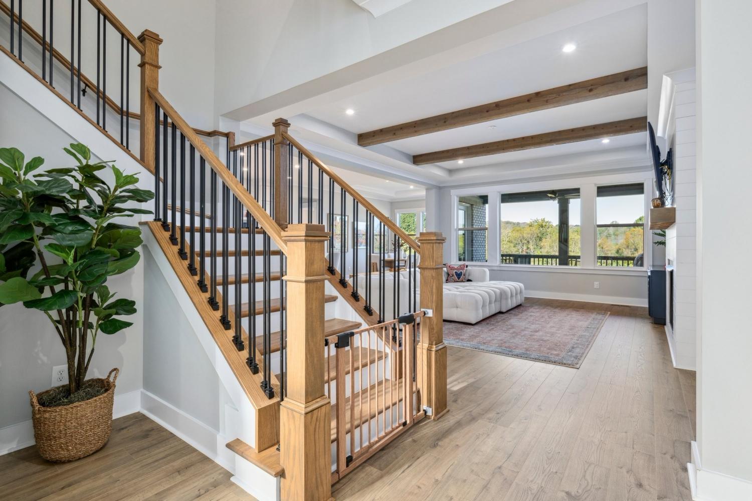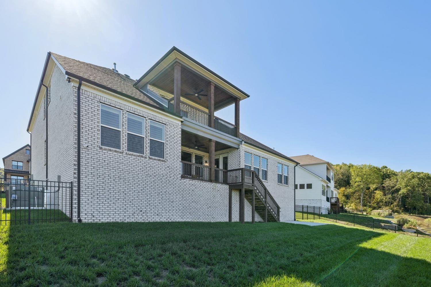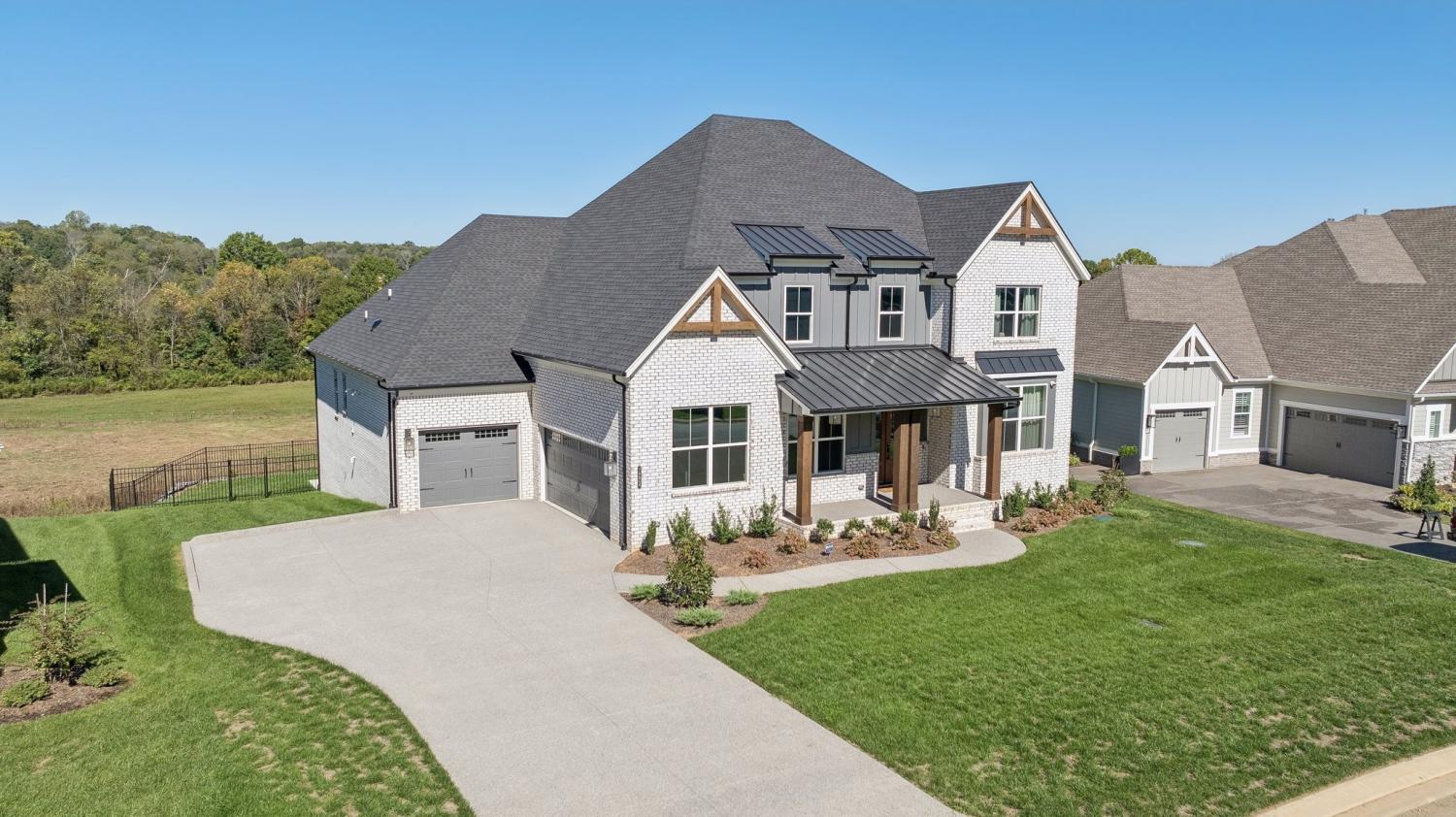Welcome to this like-new, beautifully crafted Drees home, offering 4 bedrooms and 4.5 bathrooms, with an additional dedicated office. Upon entry, you're greeted by a grand foyer leading to a spacious family room with a cozy fireplace, ideal for gathering. The open-concept layout flows into the expansive kitchen with a large pantry, perfect for everyday living and entertaining. Enjoy serene outdoor living on the main-level patio or relax on the second-story porch with breathtaking views. This property offers a peaceful backdrop of farmland and trees, creating an idyllic setting for enjoying nature. The main-floor owner's suite features a resort-like bath, and the private office provides a quiet workspace. Additionally, there is a main floor guest bedroom with full bath. Upstairs, the game room and media room offer space to entertain. With loads of upgrades, this home is conveniently located near top-rated schools, I-65, shopping, and restaurants. This Williamson County gem is a must see.