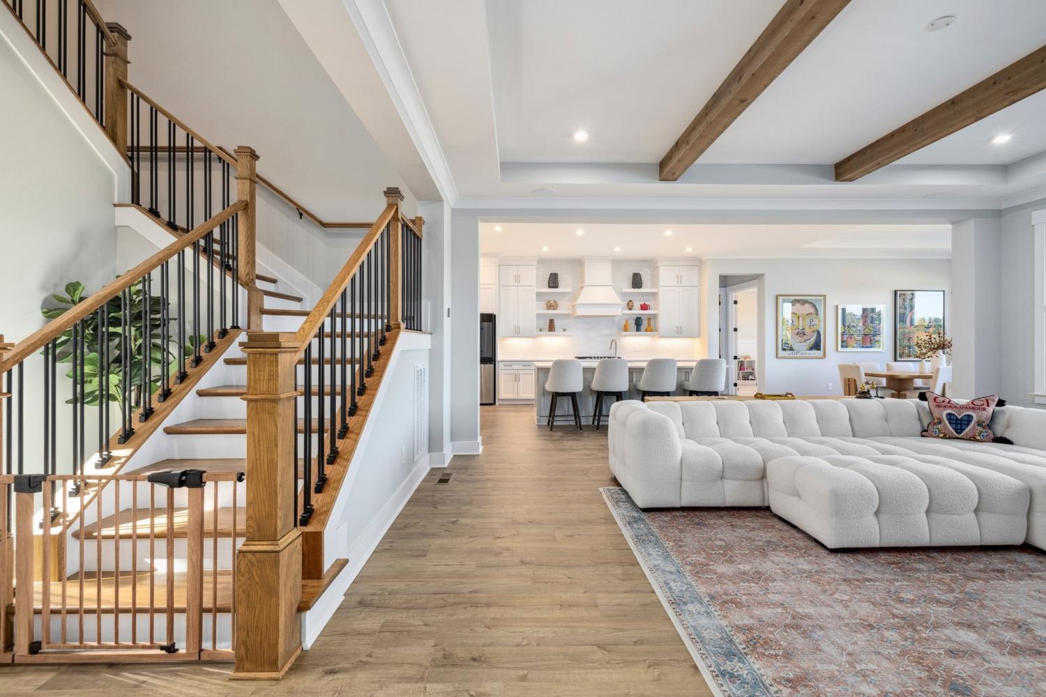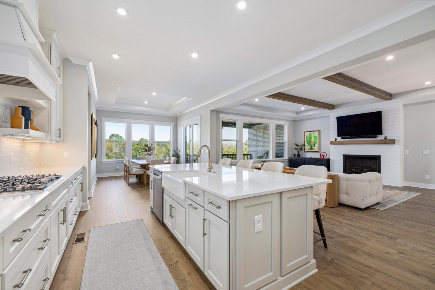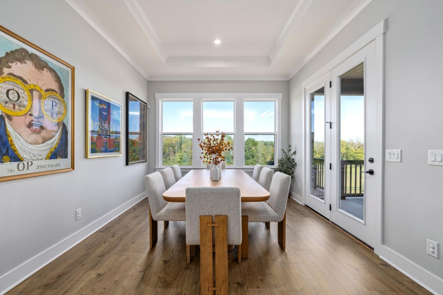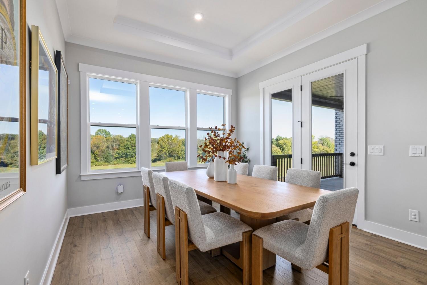 Welcome to this like-new, beautifully crafted Drees home, offering 4 bedrooms and 4.5 bathrooms, with an additional dedicated office. Upon entry, you're greeted by a grand foyer leading to a spacious family room with a cozy fireplace, ideal for gathering. The open-concept layout flows into the expansive kitchen with a large pantry, perfect for everyday living and entertaining. Enjoy serene outdoor living on the main-level patio or relax on the second-story porch with breathtaking views. This property offers a peaceful backdrop of farmland and trees, creating an idyllic setting for enjoying nature. The main-floor owner's suite features a resort-like bath, and the private office provides a quiet workspace. Additionally, there is a main floor guest bedroom with full bath. Upstairs, the game room and media room offer space to entertain. With loads of upgrades, this home is conveniently located near top-rated schools, I-65, shopping, and restaurants. This Williamson County gem is a must see.