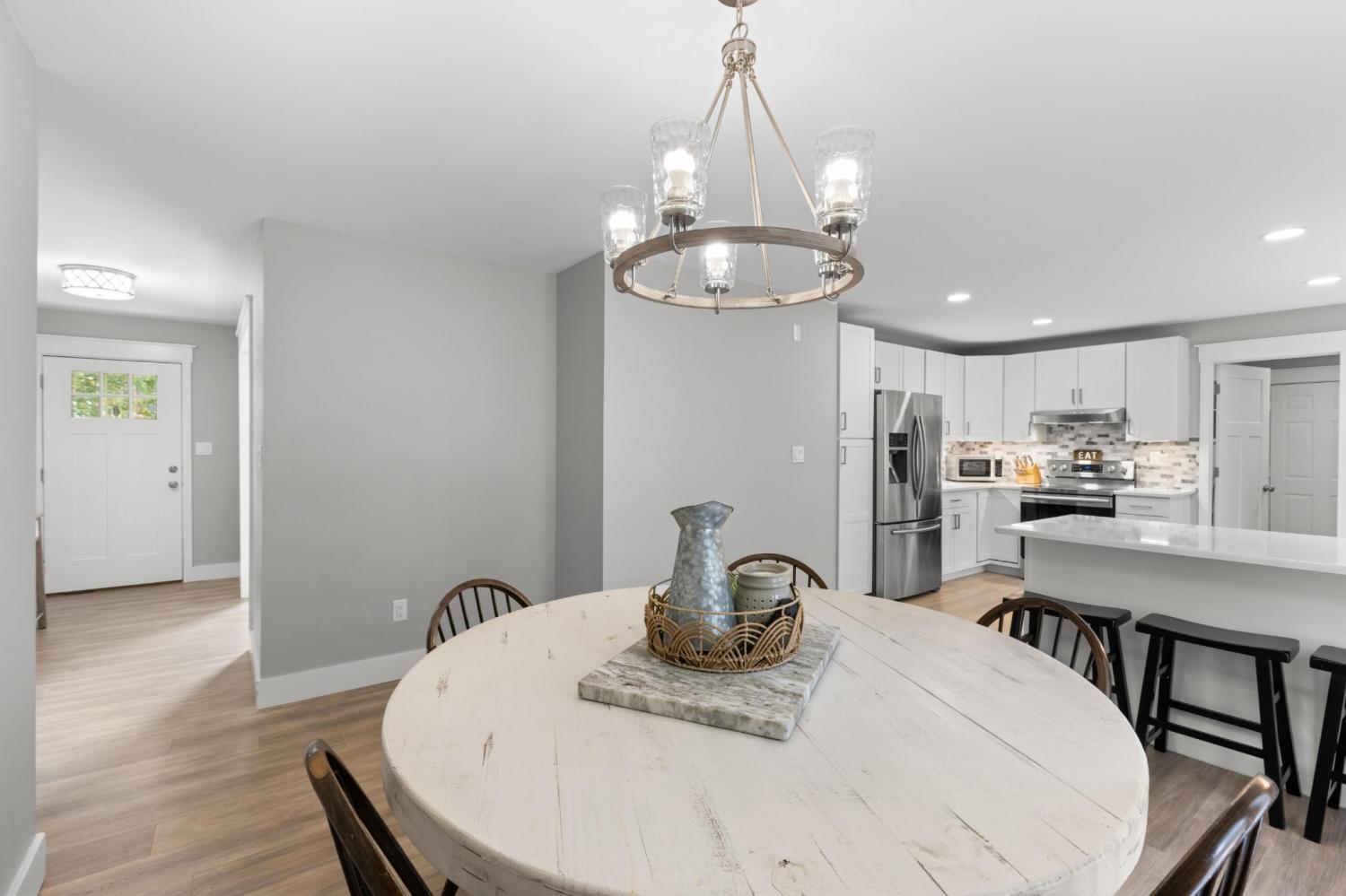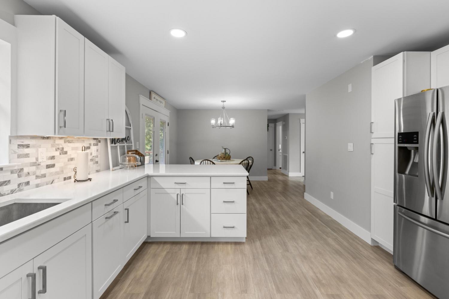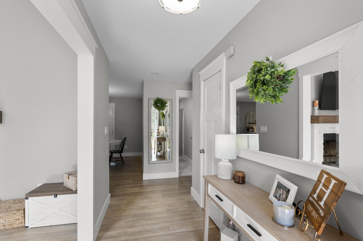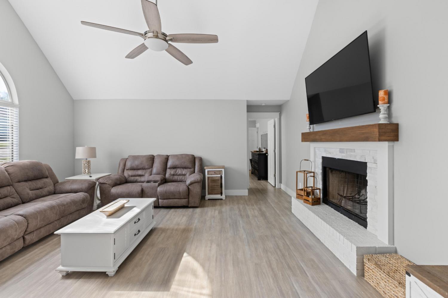 Completely Renovated One-Level Home on a Quiet Cul-de-Sac in River Cove! Welcome to 8631 Autumn Oak Lane — a beautifully updated 3-bedroom, 2-bath home offering modern comfort and style in a peaceful Harrison neighborhood. Set on a quiet cul-de-sac, this single-level home features a smart layout with fresh upgrades throughout. Step inside to discover an open living area with vaulted ceilings and a cozy fireplace, creating an inviting space for relaxing or entertaining. The newly remodeled kitchen showcases sleek quartz countertops, new cabinetry, and modern lighting — complemented by a dedicated dining area ideal for family meals or gatherings. The primary suite is privately situated on one side of the home and features a spacious layout with an updated bathroom. Two additional bedrooms and a second full bath provide plenty of space for family or guests. Enjoy the convenience of a large laundry/utility room and a two-car garage Outside, a back deck and patio overlook a gently sloped yard, perfect for outdoor living or pets (complete with an electric fence system). Additional highlights include: All new flooring and fresh paint throughout Quartz countertops and upgraded vanities Modern light fixtures and ceiling fans Brick accents and low-maintenance exterior Central electric HVAC Located in the River Cove subdivision, this home combines a quiet, rural feel with convenient access to Highway 58, Harrison Bay, and area schools. Move-in ready and like new — come see this gem before it's gone!