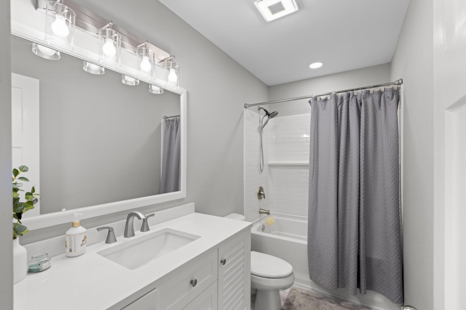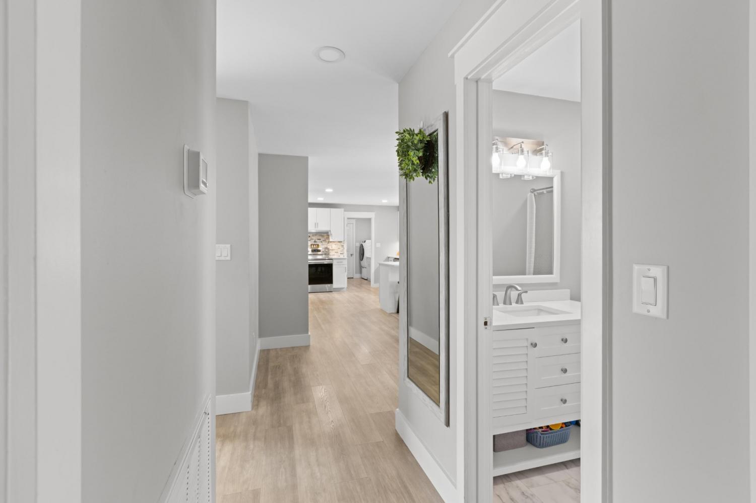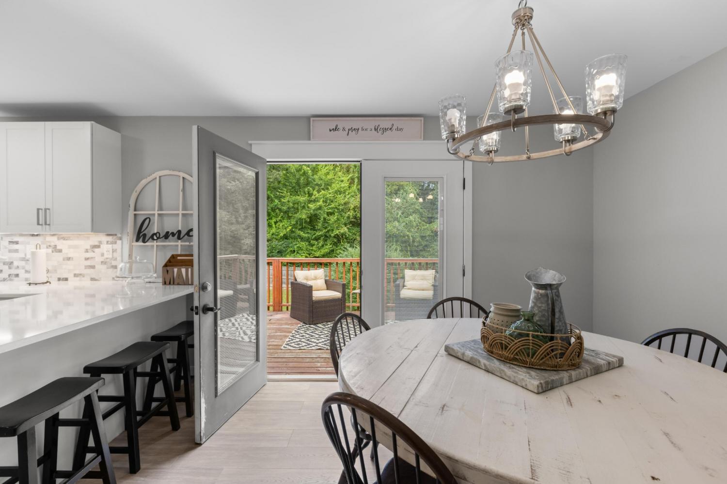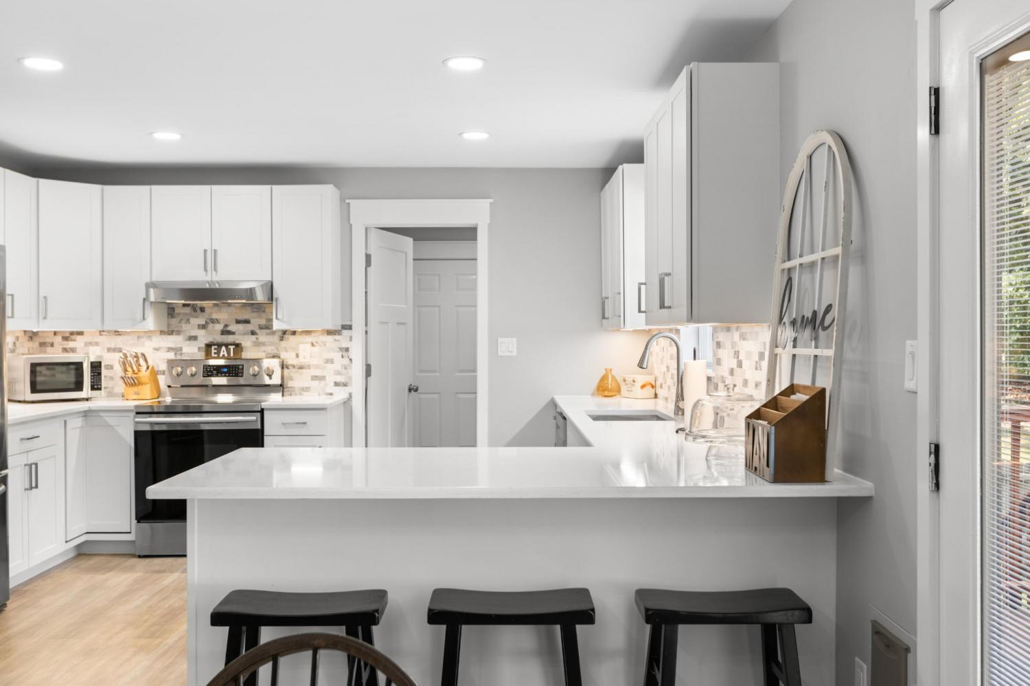 Completely Renovated One-Level Home on a Quiet Cul-de-Sac in River Cove! Welcome to 8631 Autumn Oak Lane — a beautifully updated 3-bedroom, 2-bath home offering modern comfort and style in a peaceful Harrison neighborhood. Set on a quiet cul-de-sac, this single-level home features a smart layout with fresh upgrades throughout. Step inside to discover an open living area with vaulted ceilings and a cozy fireplace, creating an inviting space for relaxing or entertaining. The newly remodeled kitchen showcases sleek quartz countertops, new cabinetry, and modern lighting — complemented by a dedicated dining area ideal for family meals or gatherings. The primary suite is privately situated on one side of the home and features a spacious layout with an updated bathroom. Two additional bedrooms and a second full bath provide plenty of space for family or guests. Enjoy the convenience of a large laundry/utility room and a two-car garage Outside, a back deck and patio overlook a gently sloped yard, perfect for outdoor living or pets (complete with an electric fence system). Additional highlights include: All new flooring and fresh paint throughout Quartz countertops and upgraded vanities Modern light fixtures and ceiling fans Brick accents and low-maintenance exterior Central electric HVAC Located in the River Cove subdivision, this home combines a quiet, rural feel with convenient access to Highway 58, Harrison Bay, and area schools. Move-in ready and like new — come see this gem before it's gone!