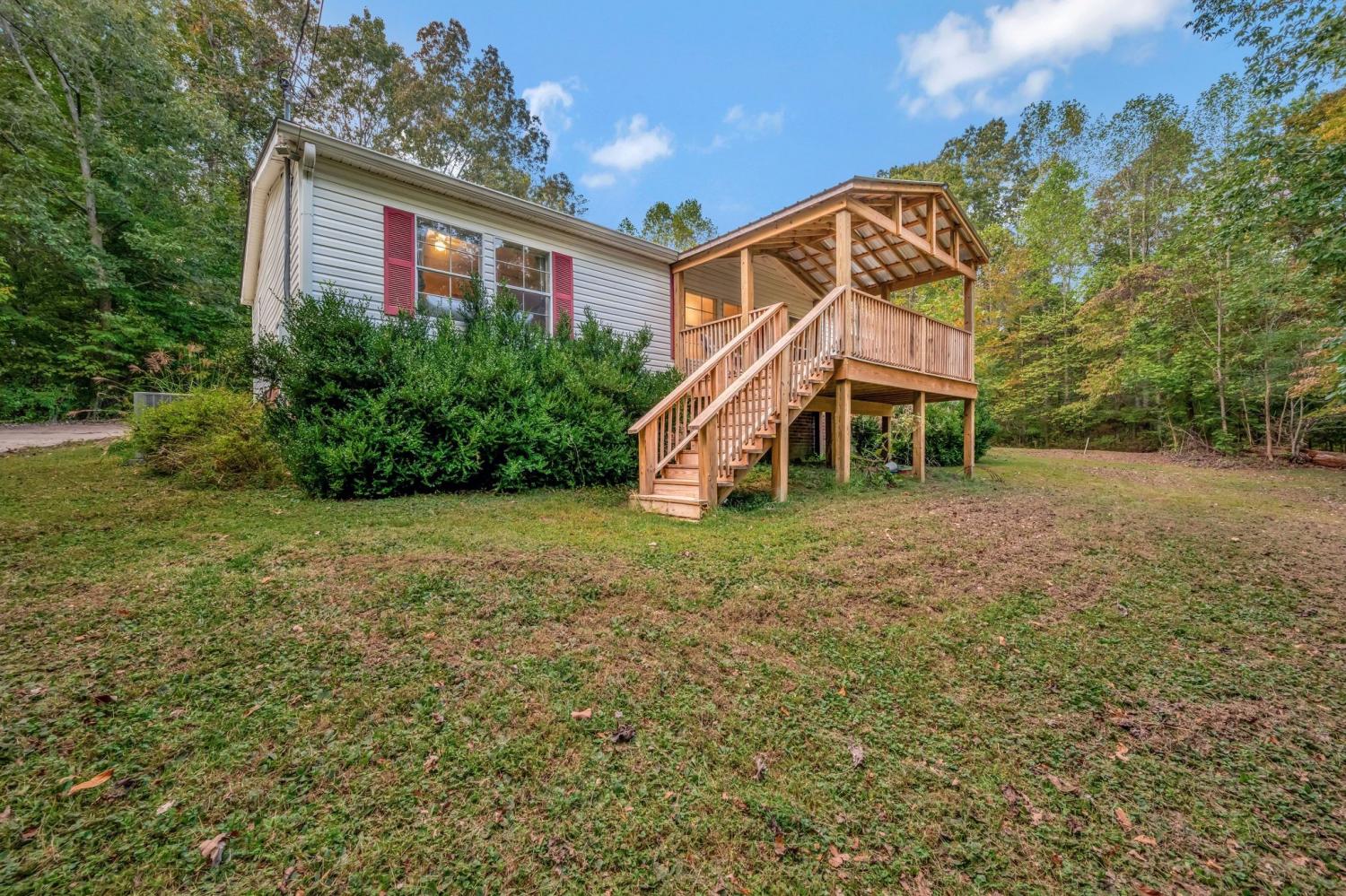 If you are looking for privacy...this is it!! tax records has 2 acres but it is actually 5.01 acres All new vinyl siding, large covered deck on front and large porch on back**HVAC 2018**new hot water heater, new stove, dishwasher approx. 2 years **hardwoods on back of property, Roof & gutters 2020, small storage building ---650 gallon water storage tank--whole home water filtration system (2 years old) concrete driveway & parking area @ top (less than 3 years old**3 concrete parking spaces @ the top of driveway***about 3 acres in back of property is wooded---the septic is for a 3 bedroom home, there is a 4th bedroom that can be used as a bedroom or office.