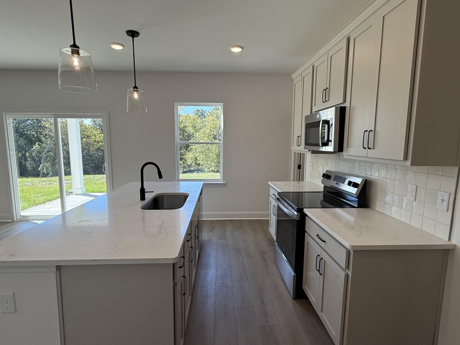 Lot 152. This Westmore floorplan by Ashton Woods has plenty of storage space for everyone. This open-concept features the dining area adjacent to the kitchen which includes a large walk-in pantry. The designer-curated finishes from the Minimalist Collection showcase modern pendant lights, white tile backsplash, white quartz counters, dark gray cabinets with black hardware, and a single-bowl stainless sink. Enjoy outdoor living with a beautiful wooded view from the covered back porch. The flex room off the foyer is suitable for a home office, formal dining or sitting room. Upstairs you'll find an oversized primary suite with large walk-in closet as well as three secondary bedrooms, each with tons of closet space! The secondary full bath also features quartz counters with dual vanity. See sales agent for incentives.