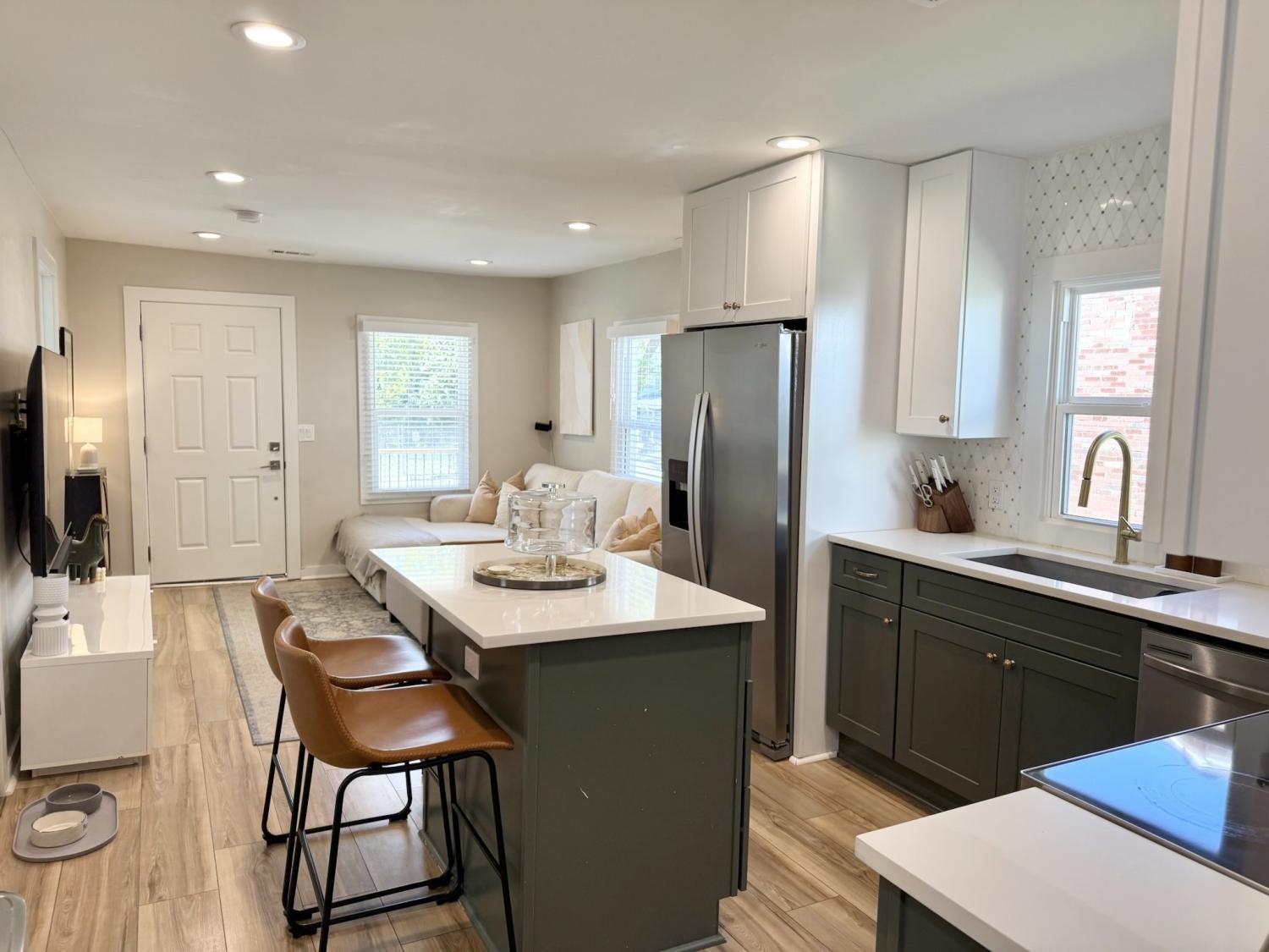 Recently updated 2-bedroom, 1-bathroom home located near Germantown, The Nations, and Downtown Nashville. This property offers a quiet neighborhood setting with quick access to restaurants, coffee shops, and major commuting routes. Features include an updated kitchen with stainless steel appliances and a dishwasher, a modern bathroom with a walk-in shower, and central air and heat throughout. A washer and dryer are included, along with a deck, back patio, fenced yard, and storage shed. Lawn care and pest control are included in rent.