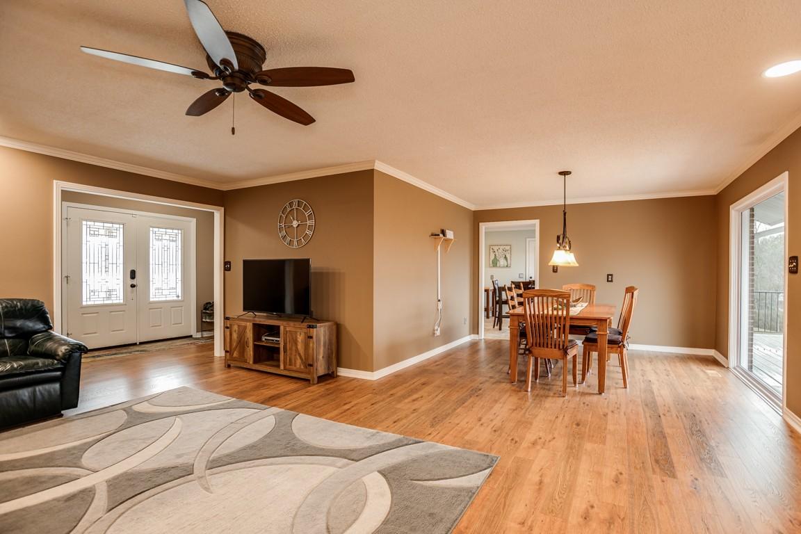 Experience the best of Tennessee country living on this expanded 37+ acre estate, complete with a stocked pond (with aeration system), miles of trails, an in-ground pool, a brand-new workshop, and a beautifully maintained 4,000 sq ft home. Gently sloping land leads to a wide clearing where the home sits, opening into a lush, private valley bordered by mature trees. Inside, the main level offers 3 bedrooms and 2 baths, a large chef’s kitchen with a breakfast nook and an oversized pantry designed to store all your canning supplies and appliances. The living room features a cozy fireplace, while a massive picture window in the dining area frames views of the pool and rolling acreage. The walk-out basement level includes an oversized bedroom, full bath, laundry room with chute, and a bonus room—perfect for guests, extended family, or multi-generational living. Crown moulding adds an elegant touch throughout the home. Summer entertaining is a breeze with your sparkling gunite in-ground pool (newer liner) and convenient cabana bath. Relax on the spacious wrap-around deck overlooking the stocked catfish pond and serene valley leading into your trail system. A koi pond near the pool adds even more tranquility. Property highlights include: • Brand-new 50x30 workshop with half bath and electric • Central vac system • 2-car garage • New 12x28 storage shed • Generac whole-house backup generator (3 years old) • 1 mile of ATV trails • Roof approx. 10 years old • Hot water heater (1 year old) • HVAC (2 years old) • Mostly new windows • Fresh exterior paint • Recently rehabbed chimney • Home sells mostly furnished • Natural gas + city water • Two septic tanks (one pumped in late 2023, one brand new) • Starlink internet Whether you envision a family compound, weekend retreat, working ranch, or your forever dream home, this property is designed to exceed expectations. Private, peaceful, and extremely well maintained—yet conveniently close to town, only 1 mile to the Tennessee River b