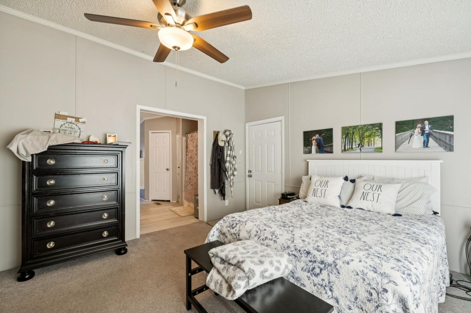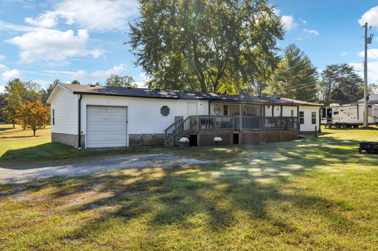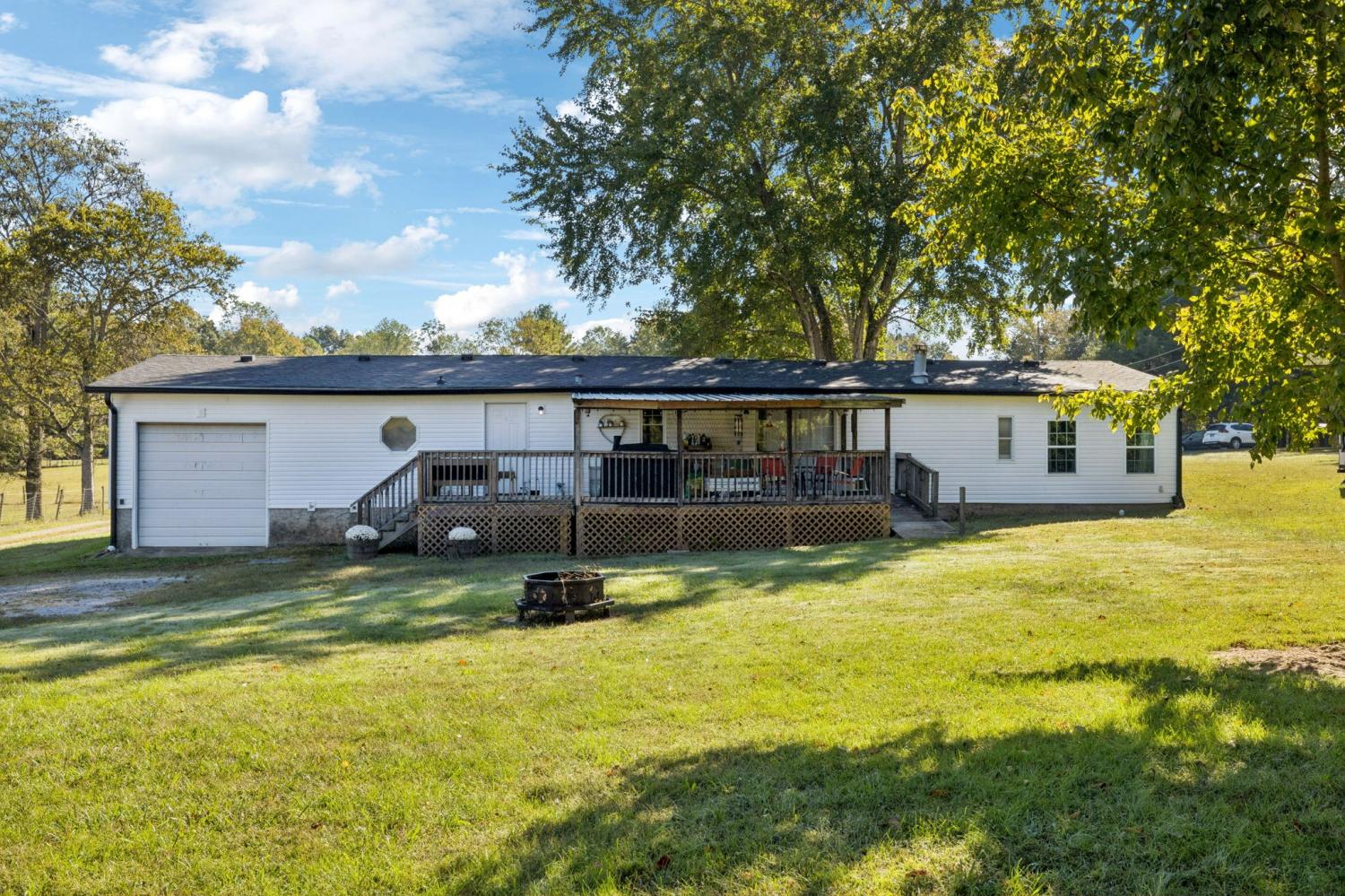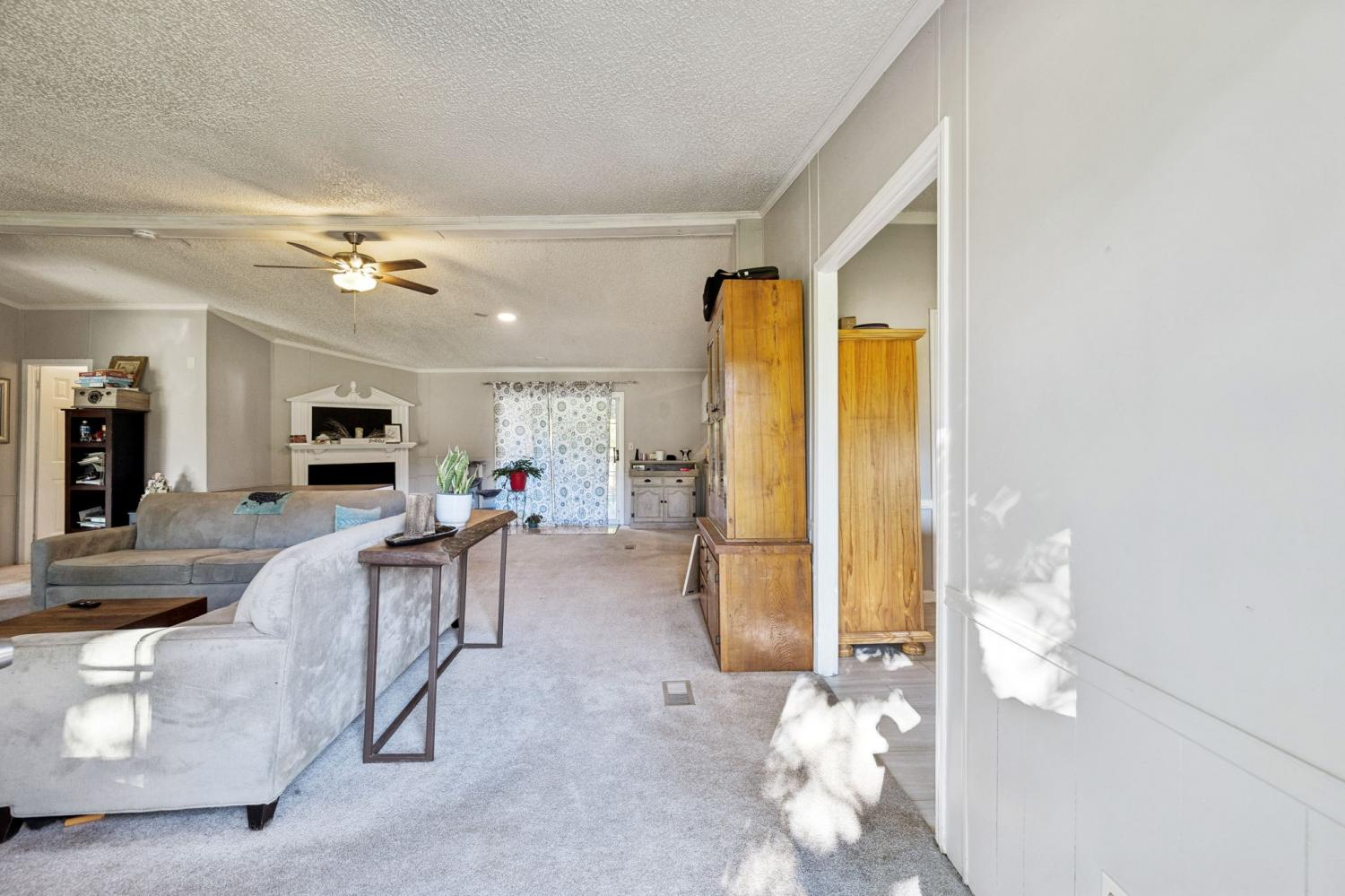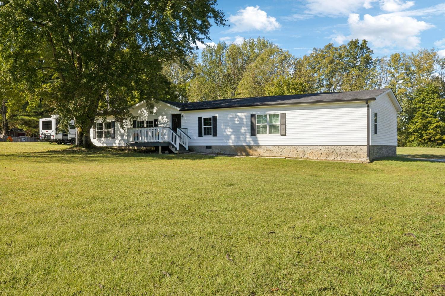 Manufactured home on a permanent foundation~POTENTIAL 3 Bedrooms~Level lot with a huge open front yard with a perfect number of shade trees~open floorplan~split bedroom design~formal dining room~large living room with gas fireplace~kitchen with plenty of counter space~newer carpets~walk-in closets including 2 in the master suite~all kitchen appliances remain~HVAC 2021~Covered back deck perfect for the morning coffee or afternoon tea~detached workshop~conveniently located with a straight drive to Clarksville or Nashville~ 50 amp service for RV on site