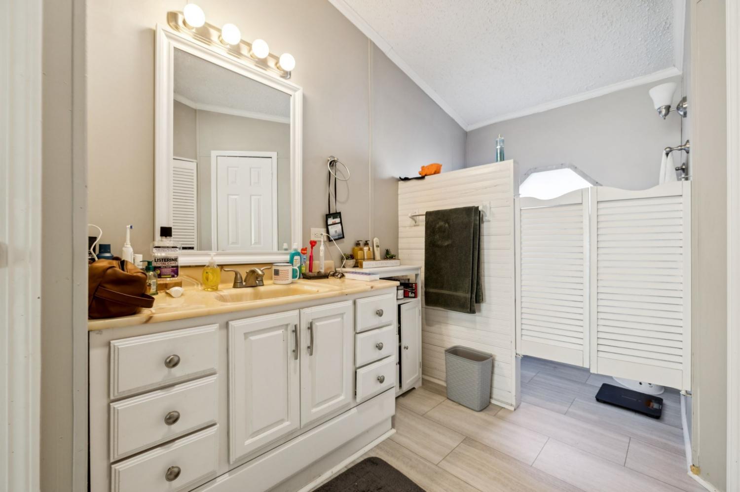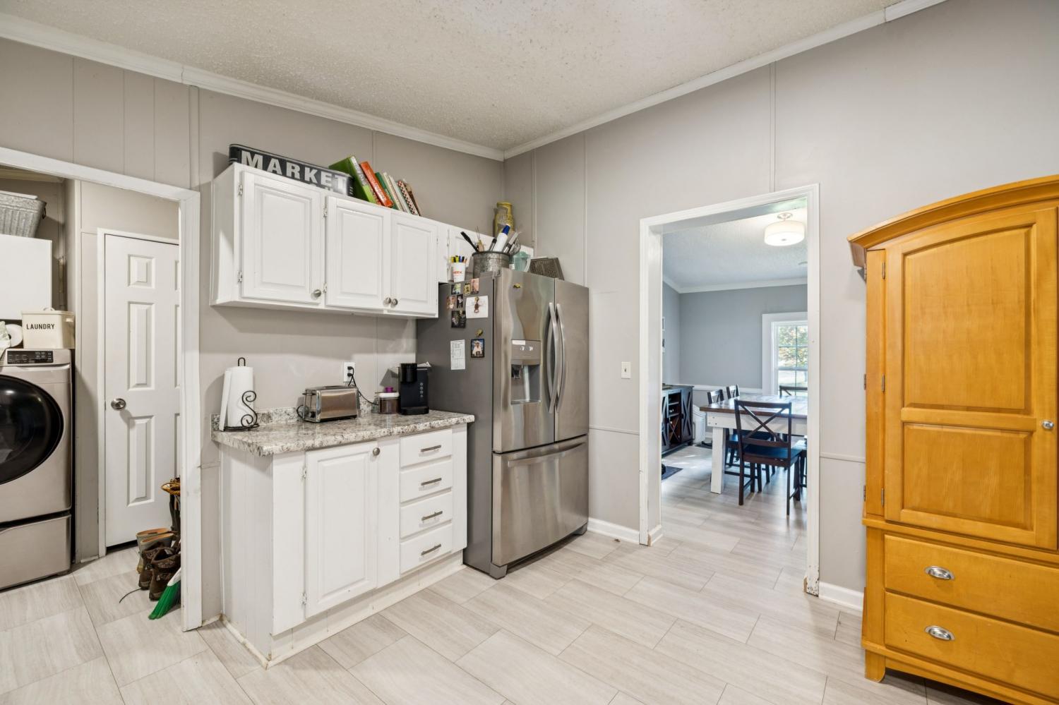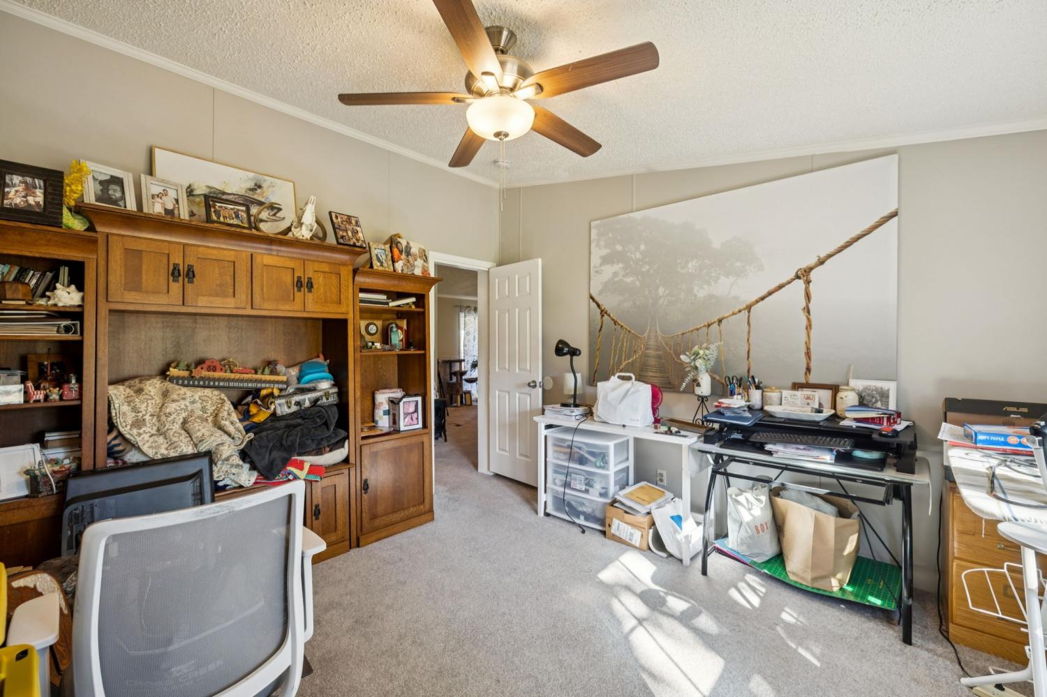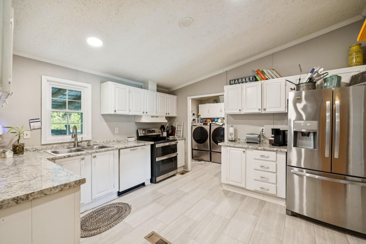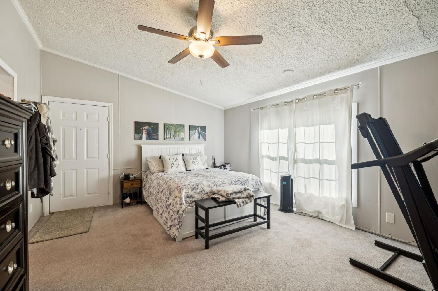 Manufactured home on a permanent foundation~POTENTIAL 3 Bedrooms~Level lot with a huge open front yard with a perfect number of shade trees~open floorplan~split bedroom design~formal dining room~large living room with gas fireplace~kitchen with plenty of counter space~newer carpets~walk-in closets including 2 in the master suite~all kitchen appliances remain~HVAC 2021~Covered back deck perfect for the morning coffee or afternoon tea~detached workshop~conveniently located with a straight drive to Clarksville or Nashville~ 50 amp service for RV on site