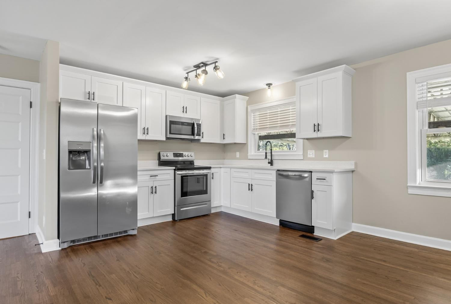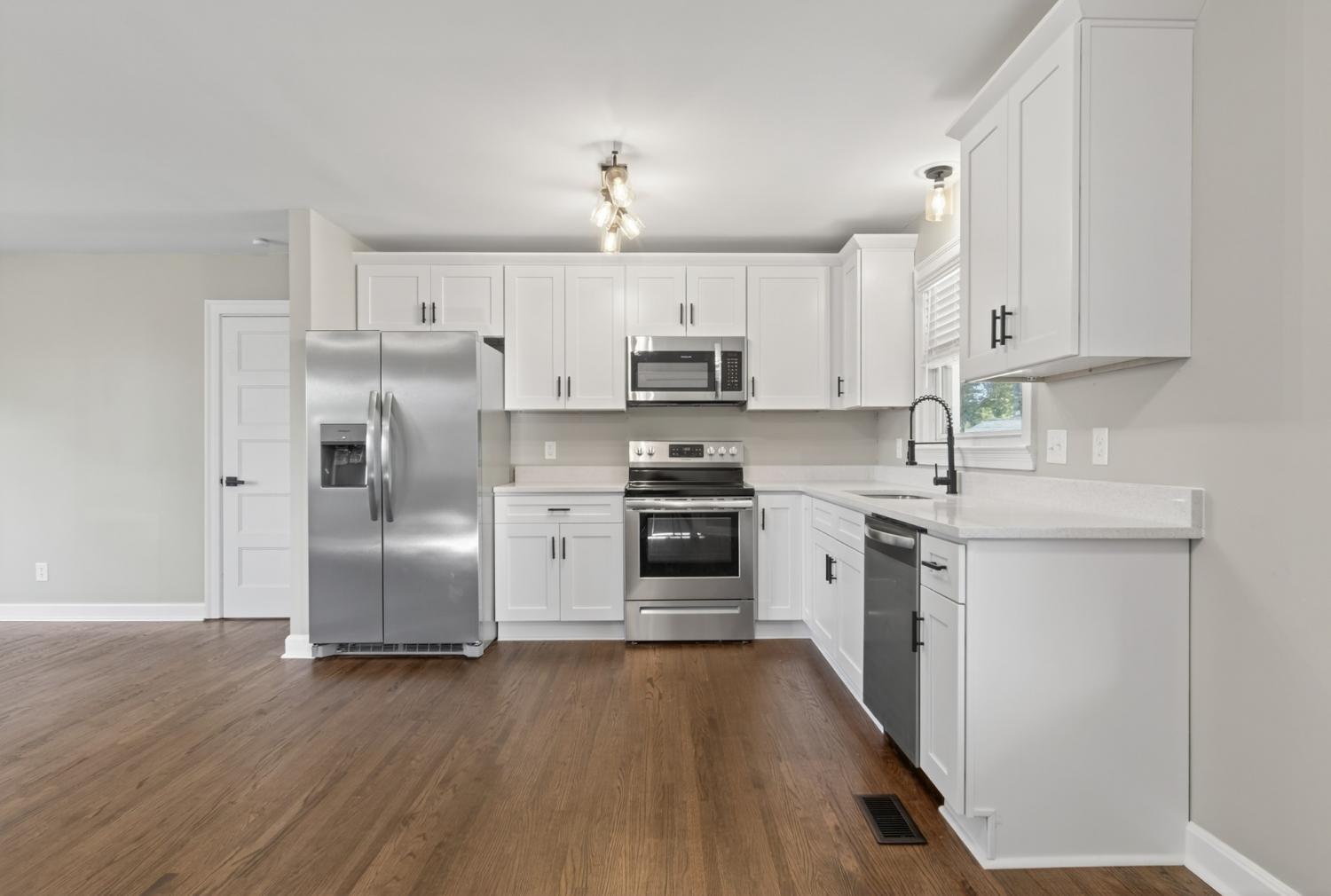 Welcome to Gallatin! This all brick renovated home is move-in ready with 4 bedrooms and 1 bath. The home features an open floorplan living room/kitchen, newly finished hardwood floors throughout the home (one room with carpet), new paint inside and out, quartz countertops and white cabinets, stainless steel appliance package, new lighting and ceiling fans throughout, upgraded doors and hardware, covered parking pad, storage shed, large level backyard with beautiful mature trees, updated landscaping, and a large mudroom/laundry room. Conveniently located with access to the thriving downtown Gallatin square, HWY 109, and the new Publix shopping center (restaurants and shopping). Set your appointment now to see this home!