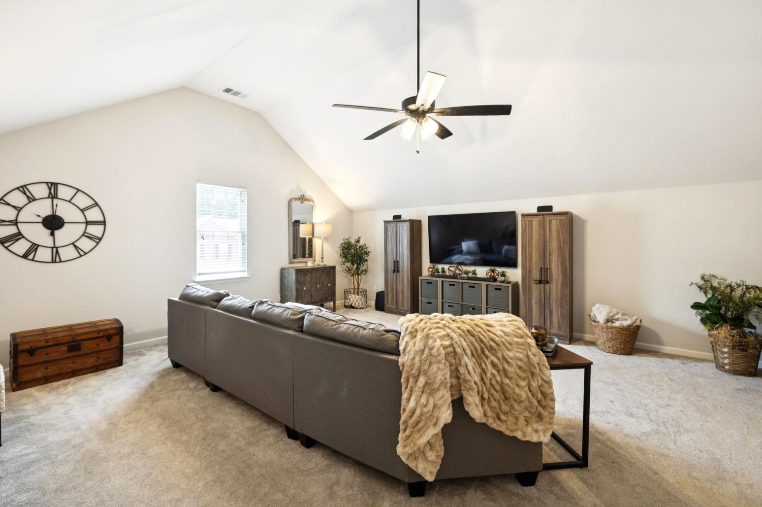 Rare One-Level Living at its finest! Charming All-Brick home boasting an impressive open floorplan also offers an equally fabulous homesite, suited for all families! Offering almost 2,000 SF and loaded with desirable features from the moment you arrive, this 3BR/2BA beauty begins with a spacious Side-Entry Garage providing extra garage storage & guest parking. The handsome brick retaining wall highlights the fresh landscaping creating polished curb appeal, while a quaint arched entry warmly welcomes your guests inside. Beautiful Sand-and-Finish Hardwoods contrast perfectly with the light, neutral palette while the open layout connects the Family Room, Kitchen & Dining area, highlighted by soaring 12ft Vaulted Ceiling, a cozy Gas Fireplace & new ceiling fan! The Spacious Kitchen features ample storage within the classic white cabinets & corner Lazy-Susan, while the new black hardware, new light fixtures & like-new stainless appliances provide the finishing touch! The Island is great for daily meal prep or holiday hosting as your guests will gravitate there for refills. The spacious Primary Suite boasts an elegant Trey Ceiling & Walk-in Closet, while the Primary Bath offers an extra-deep Soaking Tub, Separate Shower & striking Double Bowl Vanity. Upstairs, a massive 23' x 20' vaulted bonus room provides endless possibilities for game day, movie nights & home office niche while everyone will find themselves drawn to the over-sized Grilling Patio & spacious backyard... no matter what the season! With the full Privacy Fence & no neighbors behind, the serene setting is the perfect place to enjoy solitude & morning coffee or host a fall bon-fire with the gang! Conveniently located just minutes from I-24, I-65, Concord or Old Hickory Blvd, you will find quick access to Downtown Nashville, BNA Airport or Cool Springs for incredible shopping & delicious eats. Be sure to check out the video tour and community details in the links