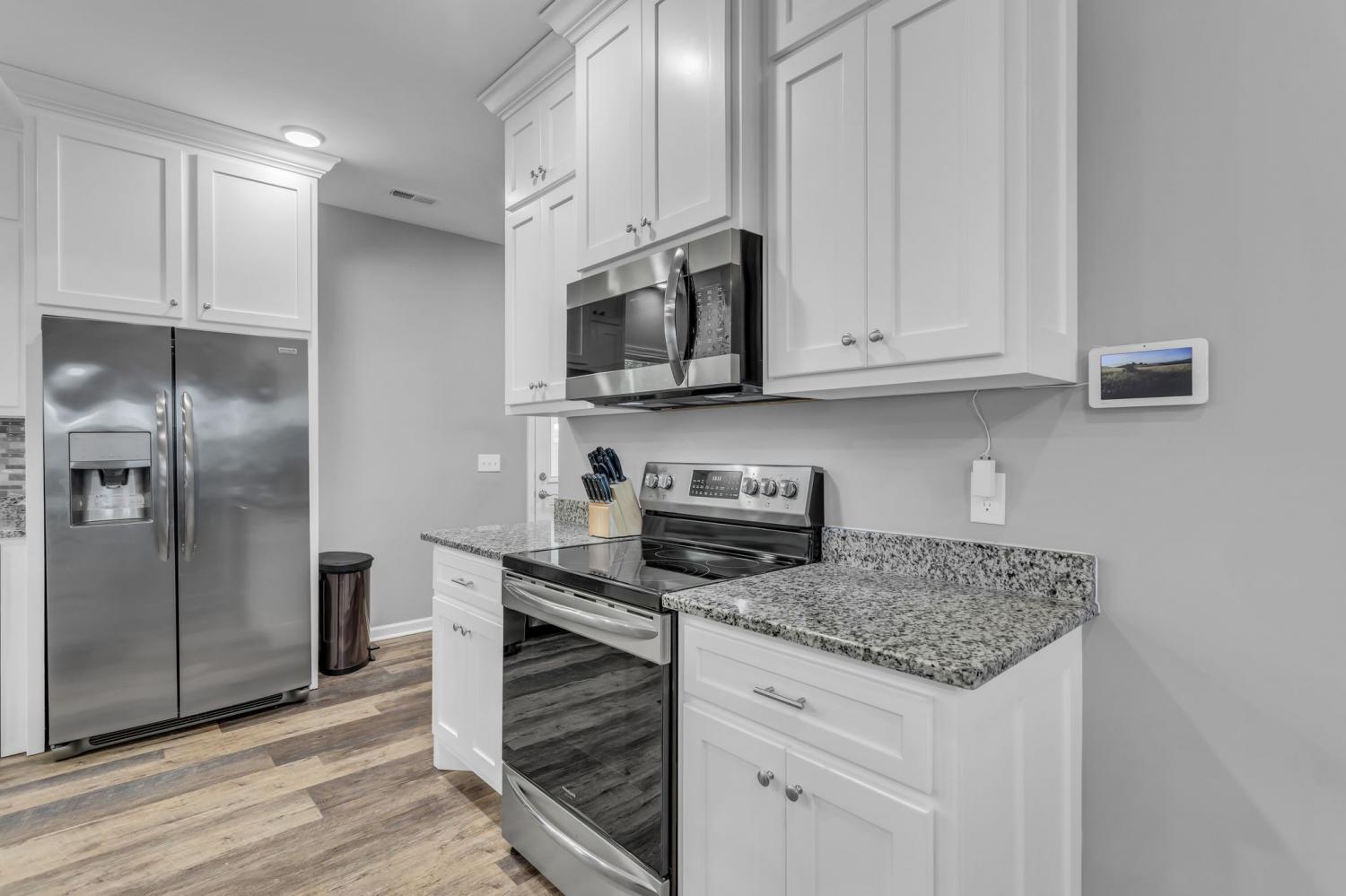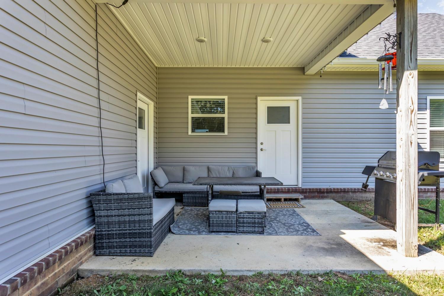 This is a must-see home on a beautiful level lot at 116 Kasen Lane. Home is located in Ethridge Tn and zoned for Summertown Schools. The kitchen and living room's open layout is perfect for daily living and entertaining. The well-appointed kitchen includes granite countertops, a center island, and stainless steel appliances. A large utility room is conveniently located off the kitchen. The primary bathroom features a double vanity and plenty of storage space with both a walk-in and linen closet. Enjoy grilling and relaxing on the back covered porch. This home has a concrete driveway and sidewalk. The 2 car attached garage is on the side of the home, with two other doors to access the garage, one from the back porch and from the driveway. Light gray paint throughout the home, the seller has never put a nail in the interior walls. Easy to show, schedule your appointment today.