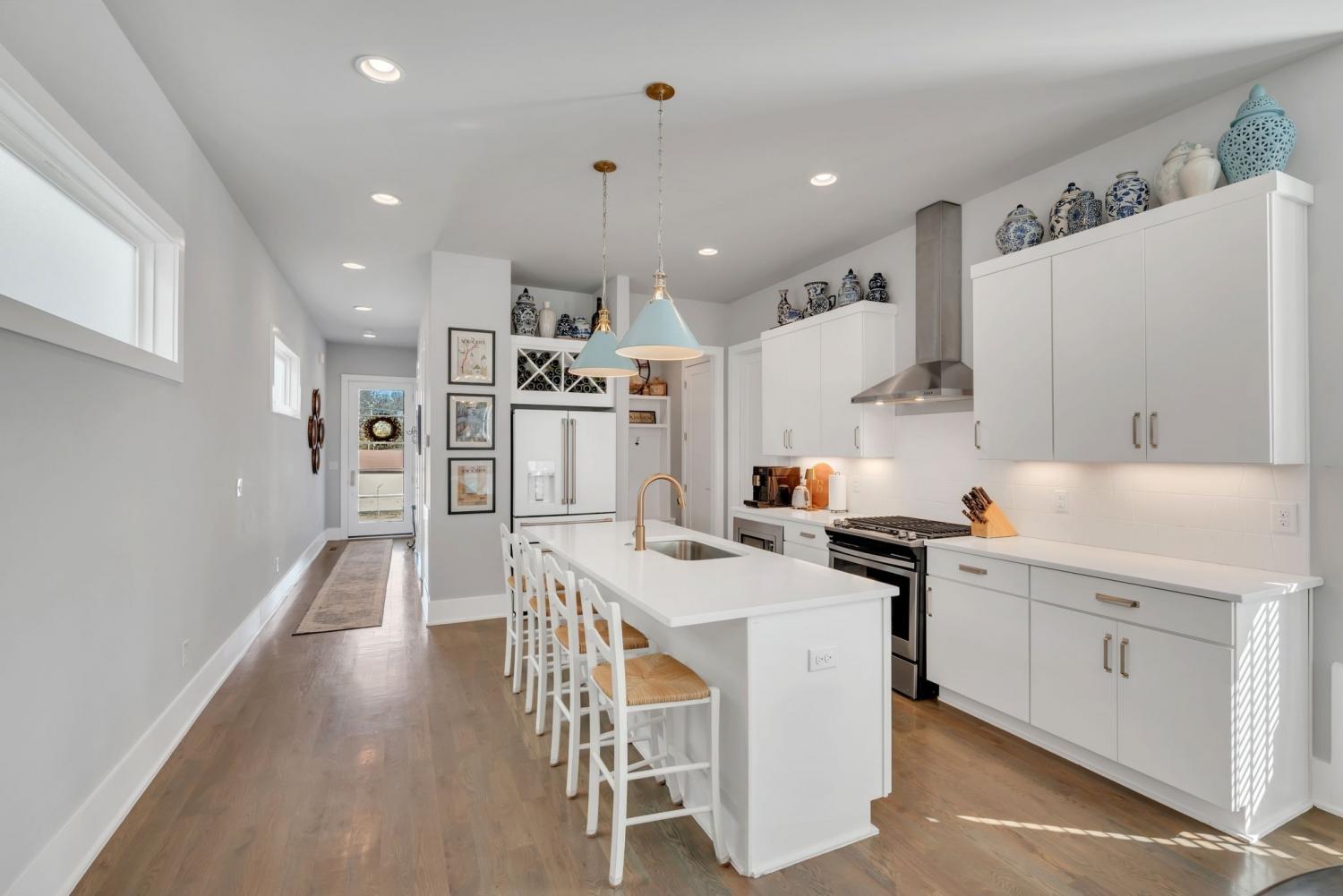 Exciting opportunity to live in the River District! Exquisite home with designer features and upgrades not often found at this price. Be prepared to entertain this fall outdoors on your private “game day” porch, patio and professional putting green! ($55k upgrade). Professionally landscaped with outdoor lighting, TV and Solostove firepit. Back inside you will enjoy a spacious kitchen & living room with tons of natural light. Gas stove, GE Cafe french door refrigerator, Miele dishwasher, quartz counters, walk-in pantry, mudroom and gas fireplace. Spacious primary bedroom with private screened balcony, vaulted ceiling, trimmed headboard wall, huge shower and walk-in closets, built-in shelving and luxury finishes. Bonus room creates a great secondary space to hangout with nearby guest bedrooms, large laundry and additional front balcony. Solid oak hardwood floors throughout and upgraded tile in baths. Navien tankless water heater, Atlas Filtri whole house water filtration system, natural gas line for outdoor grill and large outdoor storage closet. No HOA fees! You won't want to miss this one!