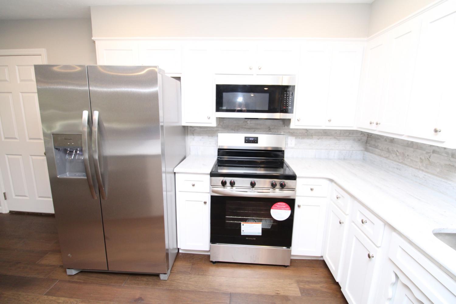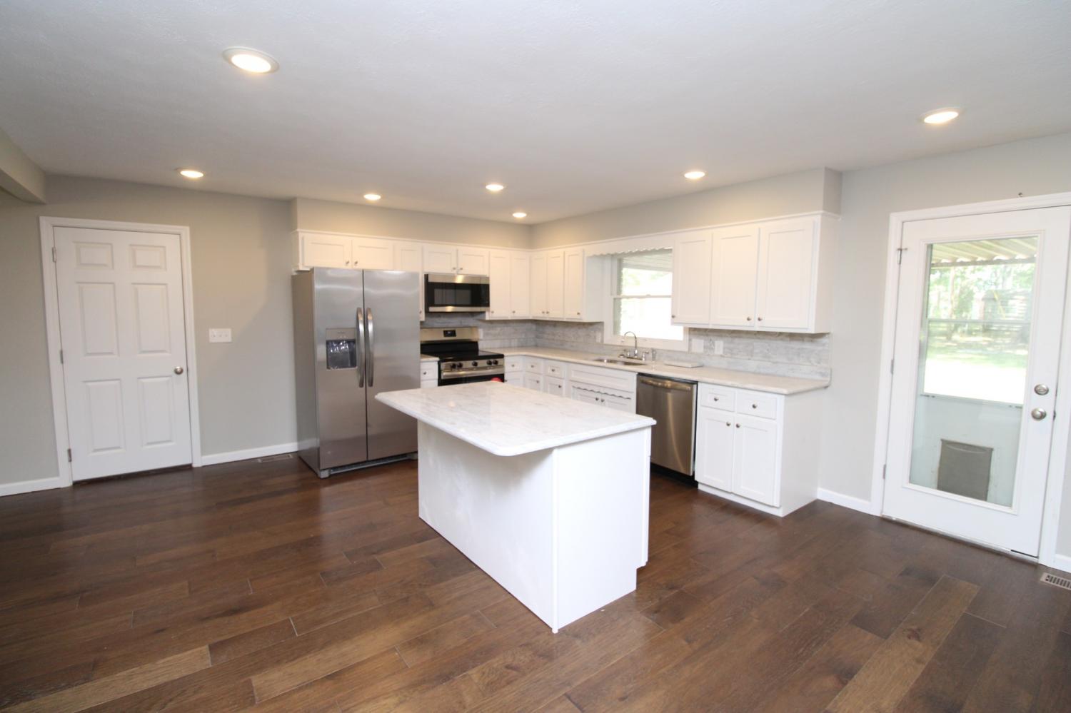 Welcome to 1414 Hillwood Circle— a thoughtfully designed home blending comfort, convenience, and timeless charm in the center of Lafayette. Inside this newly renovated 1729sqft brick home, you will find 3 bedrooms and 3 bathrooms, along with open and airy living spaces filled with natural light and a relaxing fireplace. You are welcome at the front door with a large porch area and antique French doors. The kitchen features brand new Frigidaire appliances, ample cabinetry, grantite countertops and a large kitchen island, making it ideal for both daily living and entertaining with a separate dining area. The primary suite includes a bathroom, his and her closets and access through French doors to the 16x28 outdoor covered patio. While 2 additional bedrooms offer flexibility for family, guests, playroom, exercise room, or a home office. Brand new hardwood flooring throughout with new carpet covering all bedrooms. The exterior is just as inviting, with a fenced in, private backyard retreat perfect for gatherings, gardening, or unwinding after a long day. Mature landscaping enhances the peaceful setting, creating a true sense of home. This home features a 20x25 attached one car garage with an attached 9x6 full bathroom and utility hookups. In the rear of the home, you will find a 24x30 detached garage. Located in a desirable neighborhood, this property offers easy access to schools, shopping, dining, and major roadways, all while maintaining the quiet charm of Hillwood Circle.