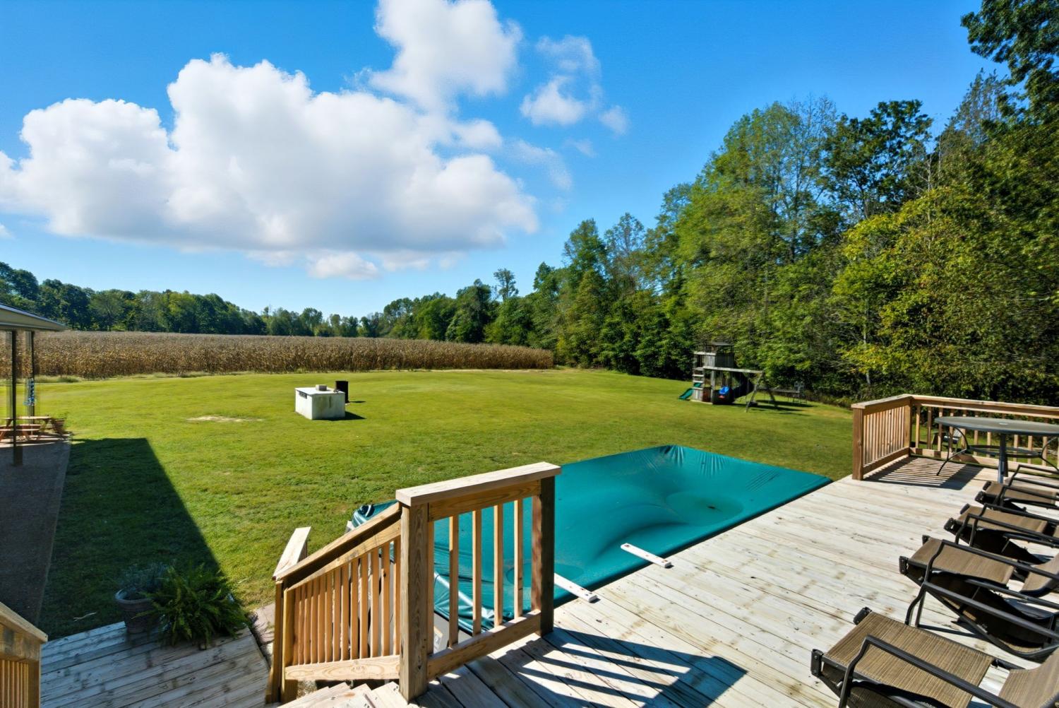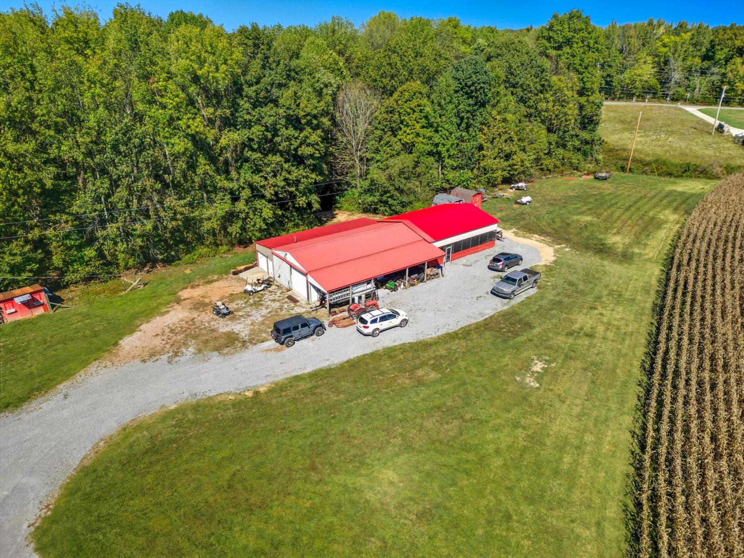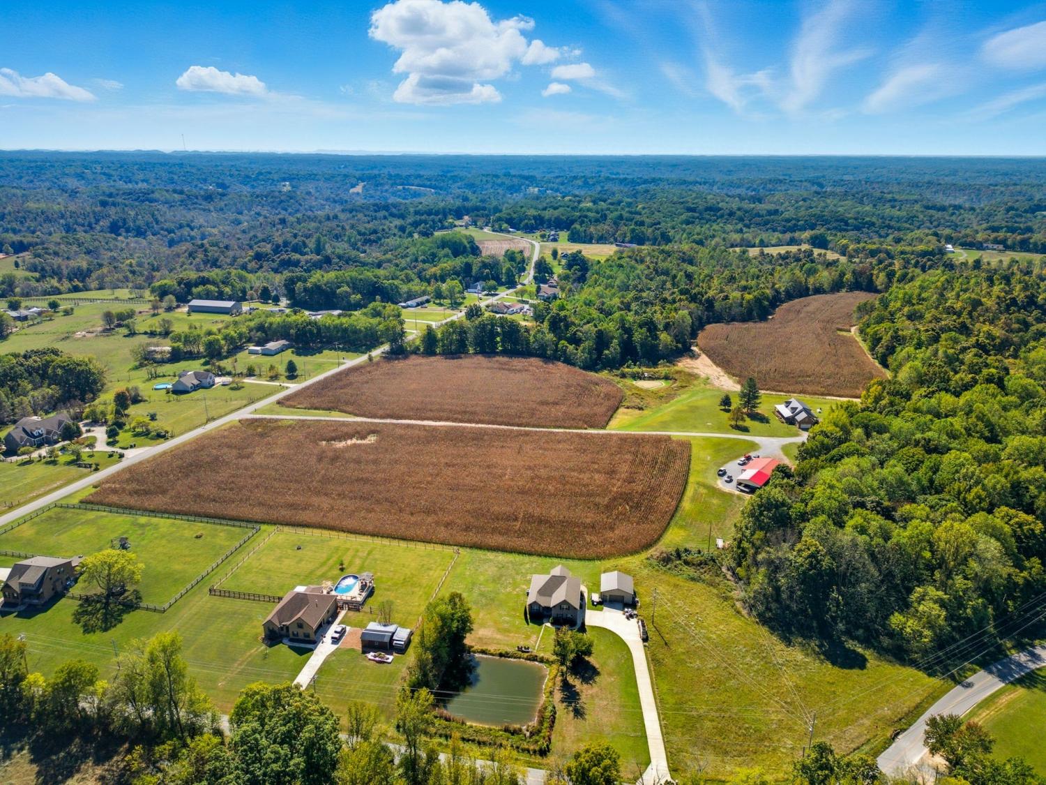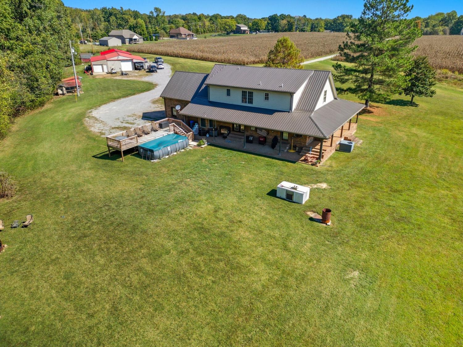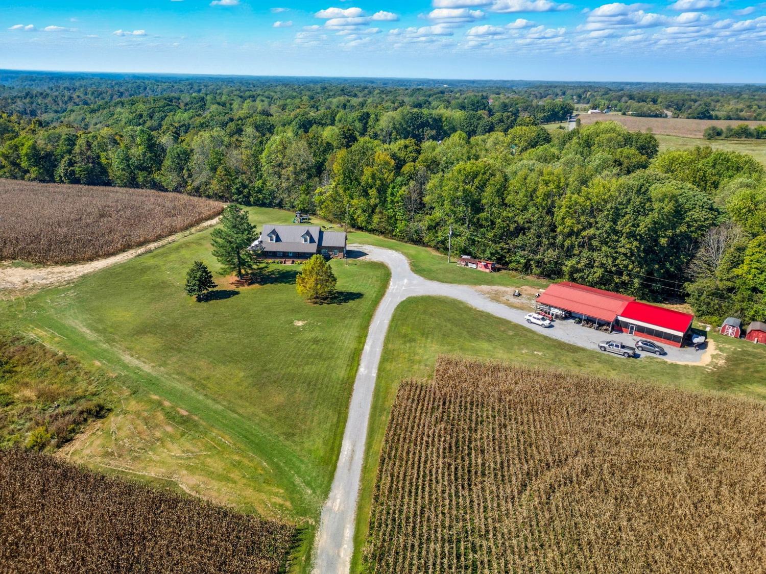 Country Estate with Custom-built 3BR/3.5BA home on 54.5 acres in Greenbrier, TN. This 2,530 sq ft home features a main-level primary suite with French doors opening to a covered 3/4 wraparound porch—ideal for enjoying the peaceful country views. The kitchen offers abundant cabinetry, a breakfast nook, and opens to spacious living areas with hardwood floors on the main level and a gas fireplace. Upstairs includes two ensuite bedrooms, each with walk-in closets and full bathrooms. A large loft/den area separates the two. An additional 22x15 bonus room is above the attached 2-car garage. Recent updates include a metal roof (6 yrs) and Split Unit HVAC (5 yrs) Enjoy outdoor living with a covered back patio, deck, and above-ground pool. A 24x50 insulated detached shop includes 3 overhead doors and an attached studio apartment, with a bathroom and laundry area. There is a separate septic system for the shop and studio apartment. The land offers rolling pastures, woods, a retention pond, and two creeks. Just 25 minutes to Nashville or Clarksville. A rare blend of privacy, space, and modern comfort—perfect for those seeking a country lifestyle.
