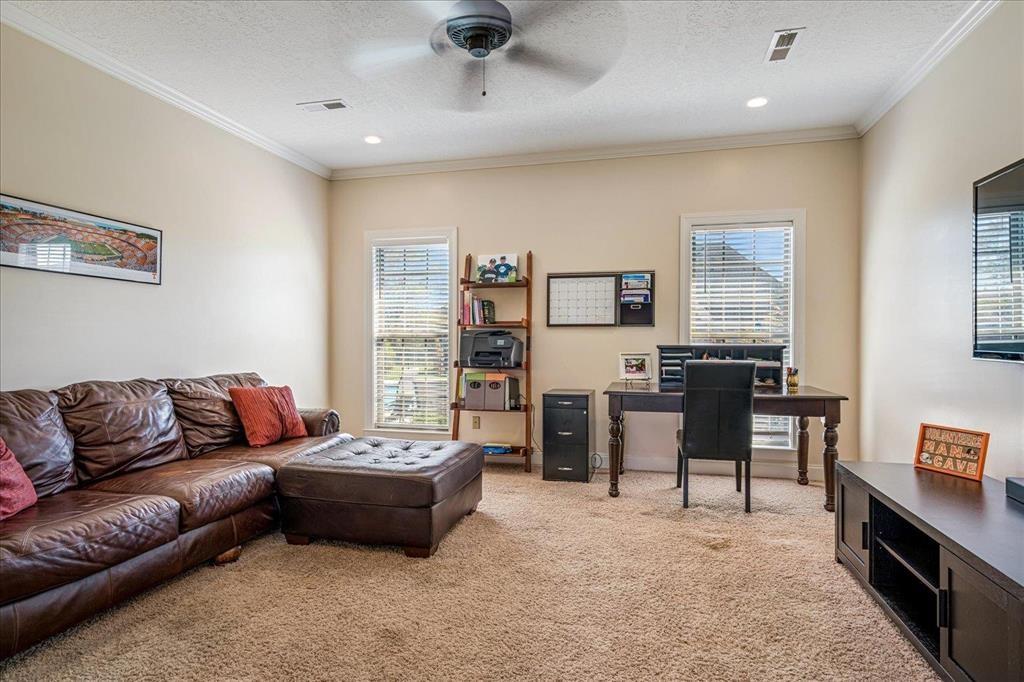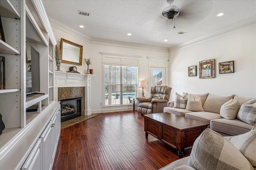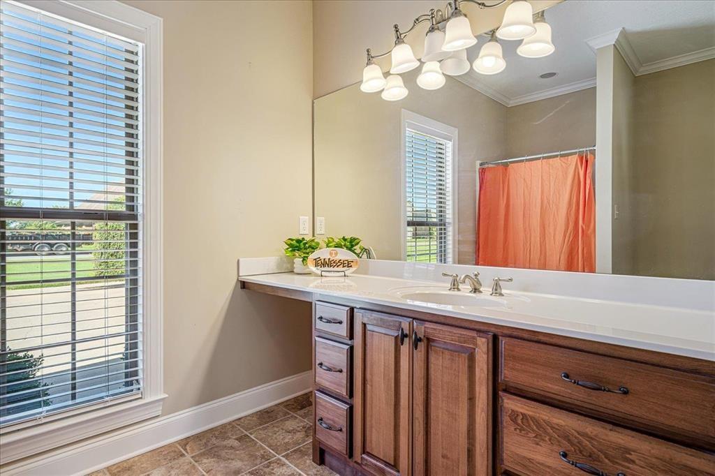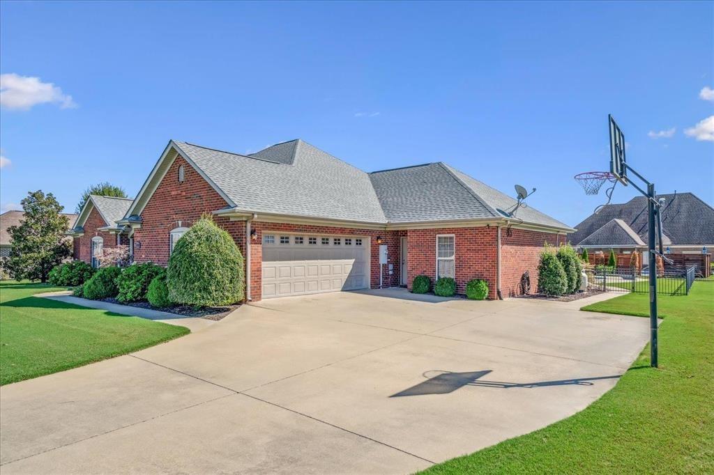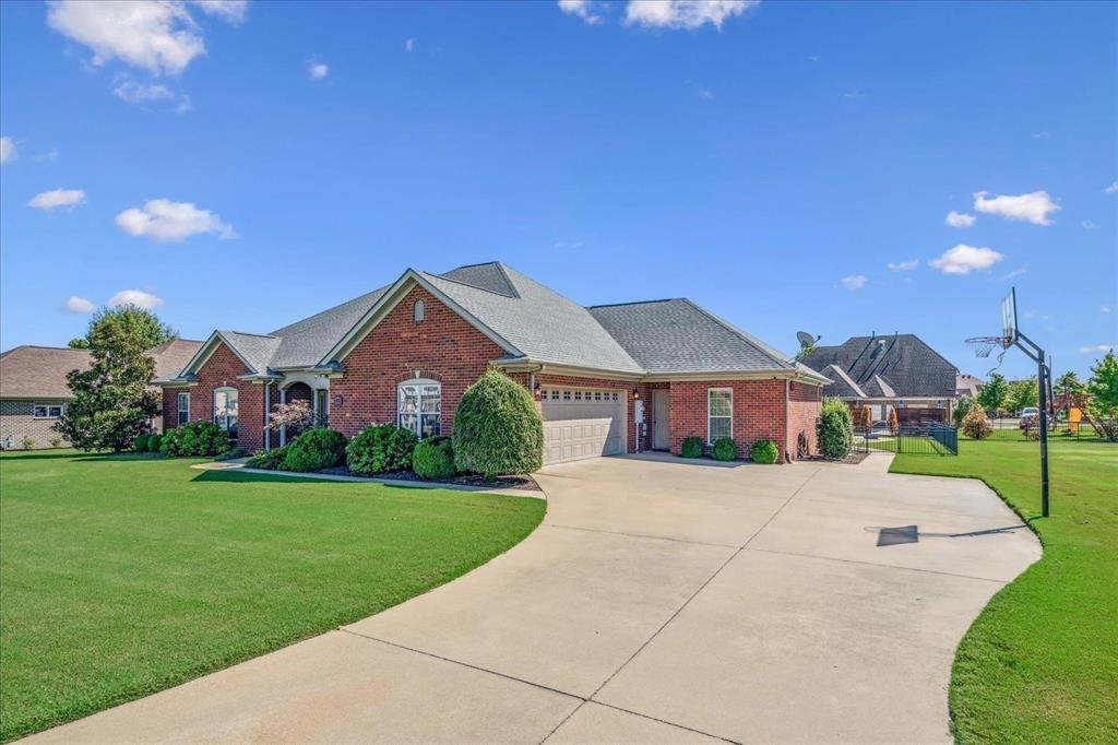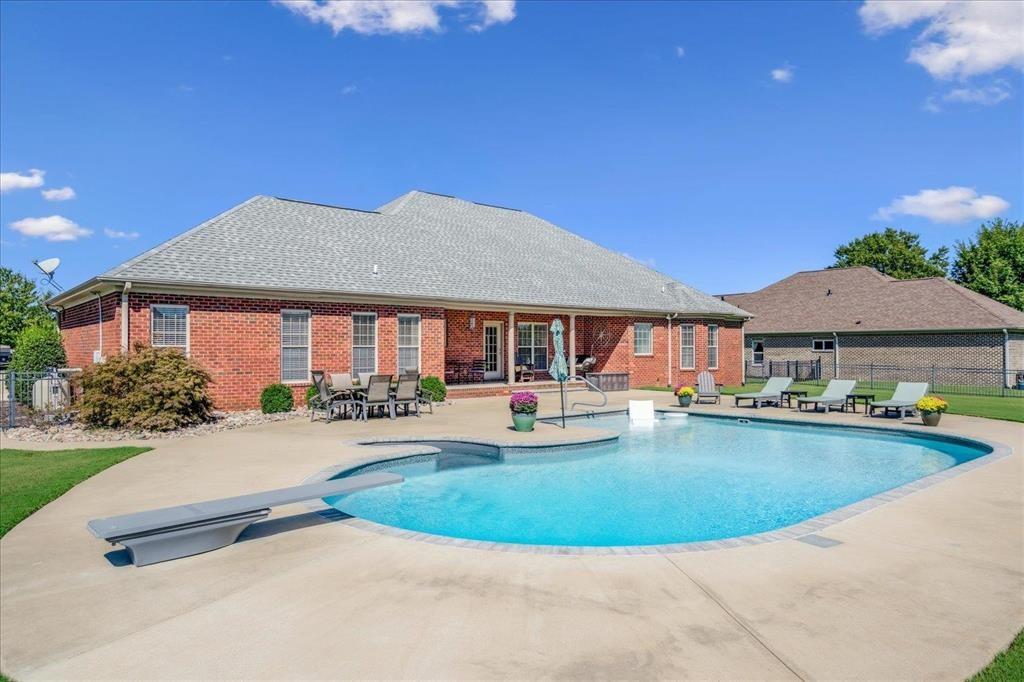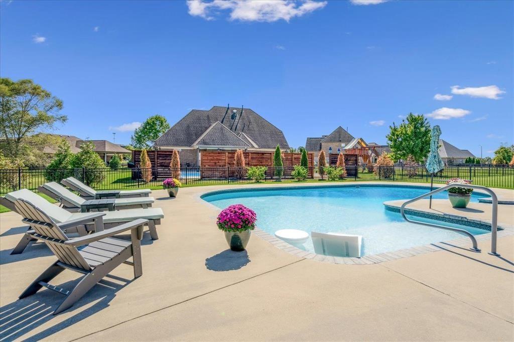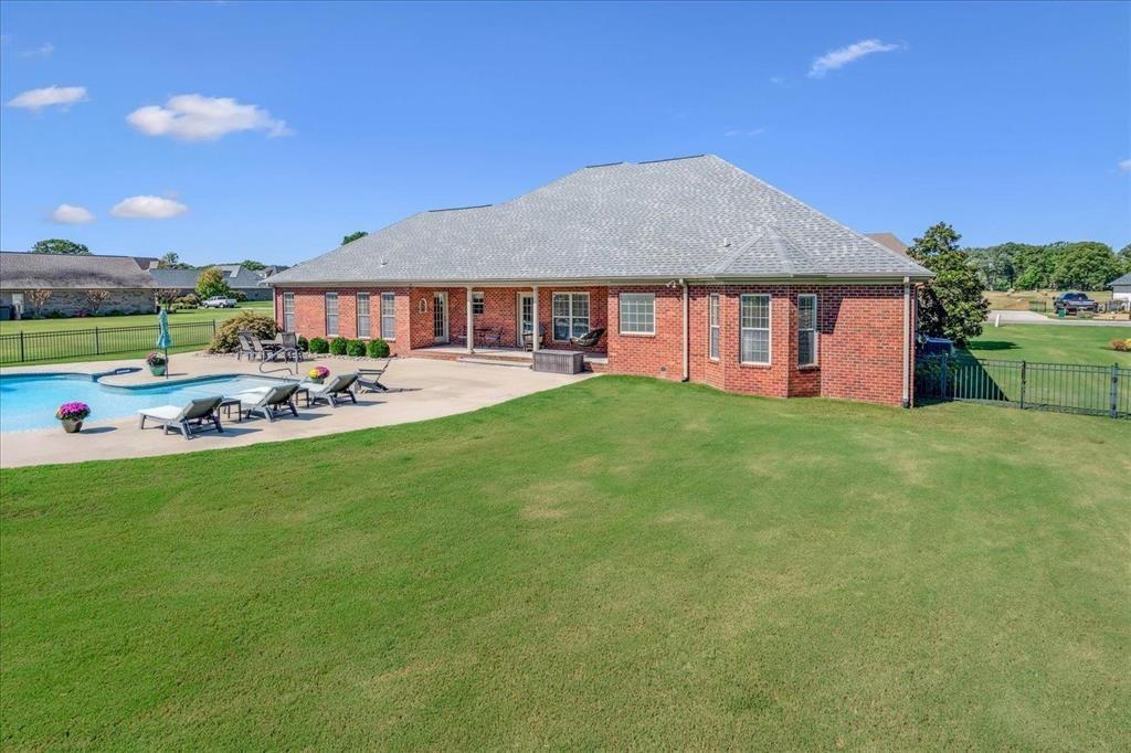 Exquisite Brick Home in Prestigious "The Farms" Subdivision This stunning 4-bedroom, 3.5-bath brick beauty, offering over 3,000 sq. ft of refined living space in one of the area's most sought-after neighborhoods .Perfectly designed for comfort, entertaining, and everyday luxury, this home boasts two spacious primary suites, each with its own ensuite bath featuring double vanities, separate showers, and relaxing jetted tubs — ideal for multigenerational living or hosting guests in style. Step into a world of elegance with a formal entryway, crown molding throughout, and gorgeous hardwood flooring that flows seamlessly through the formal dining & great room which hosts fireplace/gas logs. The Gourmet kitchen is a dream complete with granite countertops, island, breakfast bar, pantry, and a cozy hearth room just off the sunlit breakfast area. Private backyard oasis featuring a custom saltwater in-ground pool, covered porch.Perfect balance of luxury & practicality.