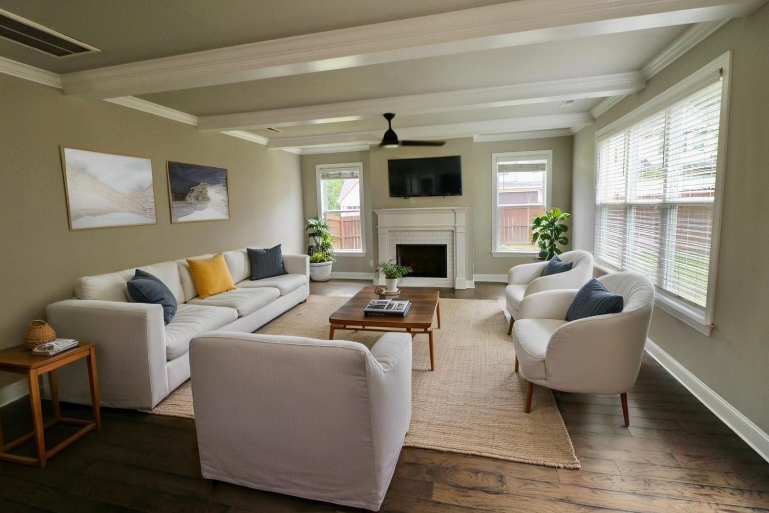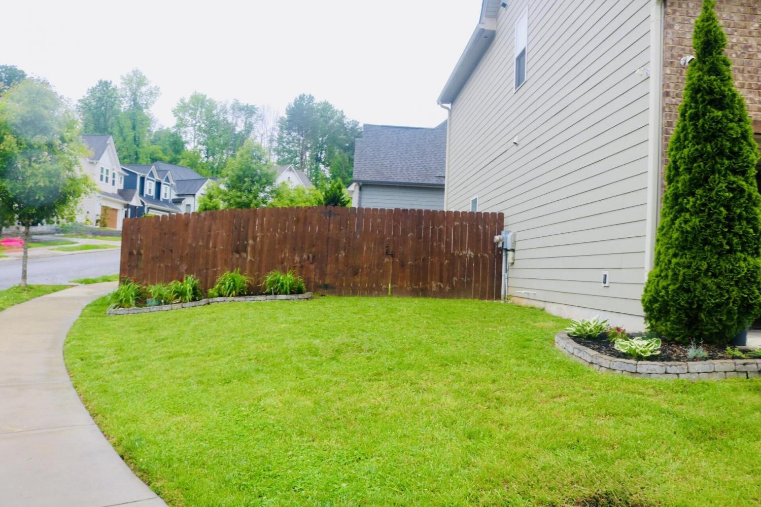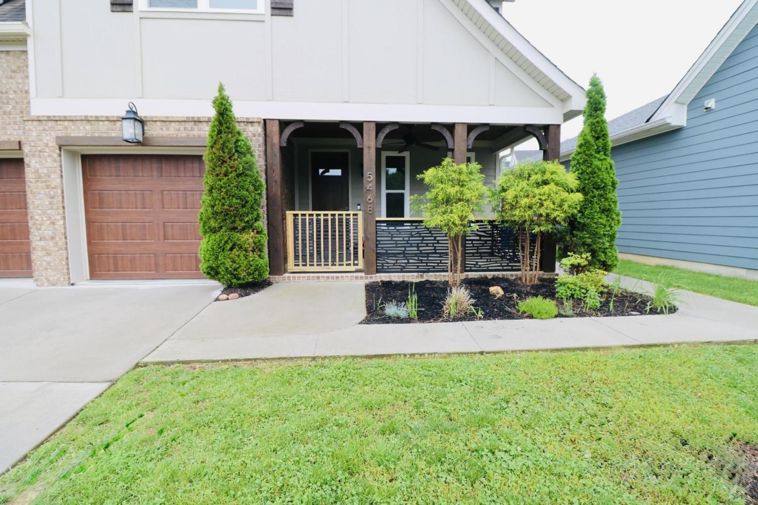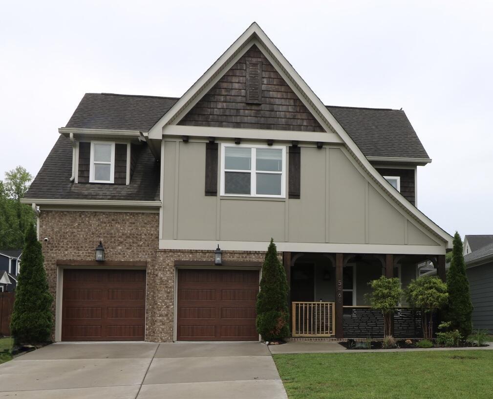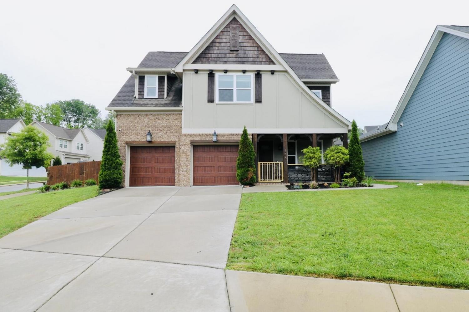 Reduced Price. Striking Corner-Lot Home with. Exceptional Curb Appeal. Welcome to this stunning home that immediately captivates with its impressive curb appeal—featuring a charming mix of brick, siding, cedar shingles, elegant wood columns, lush landscaping, and a privacy fence, all situated on a coveted corner lot. The inviting front porch oasis with custom gate & railings is the perfect place to begin or end your day, setting the tone for the thoughtfully designed interior that awaits. Step inside to an open and light-filled main level where warmth and craftsmanship meet. Highlights include detailed crown molding, custom built-in shelving in the dining area, eye-catching beams in the living room, and unique trim work throughout, including in the stylish powder room. The bright, white kitchen features a counter-to-ceiling subway tile backsplash, classic cabinetry, and contrasting rich hardwood floors that flow seamlessly through the main level. A beautiful fireplace serves as a cozy focal point, and the open layout provides easy access to the lush, private backyard—ideal for relaxing or entertaining. Practicality meets design in the spacious mudroom, located off the two-car garage, complete with built-in storage, a convenient bench, and durable tile flooring. Upstairs, discover a second sanctuary—featuring the serene primary suite, three additional bedrooms, a large guest bathroom, and a laundry area. The primary suite offers an airy, light-filled retreat with a bonus sitting nook, perfect for an office or reading spaceThe luxurious en-suite bathroom showcases dual vanities flanking a statement standalone tub, a large walk-in tiled shower with bench and niches, a frameless glass enclosure, and a private water closet. With space, comfort, and refined style, this home is ideal for families, professionals, or anyone seeking a well-appointed retreat Average commutes:< 3 minutes off Hwy 27. 12 min Coolidge Park, < 10 mins to Hwy 153, < 20 min I-75 & I-24