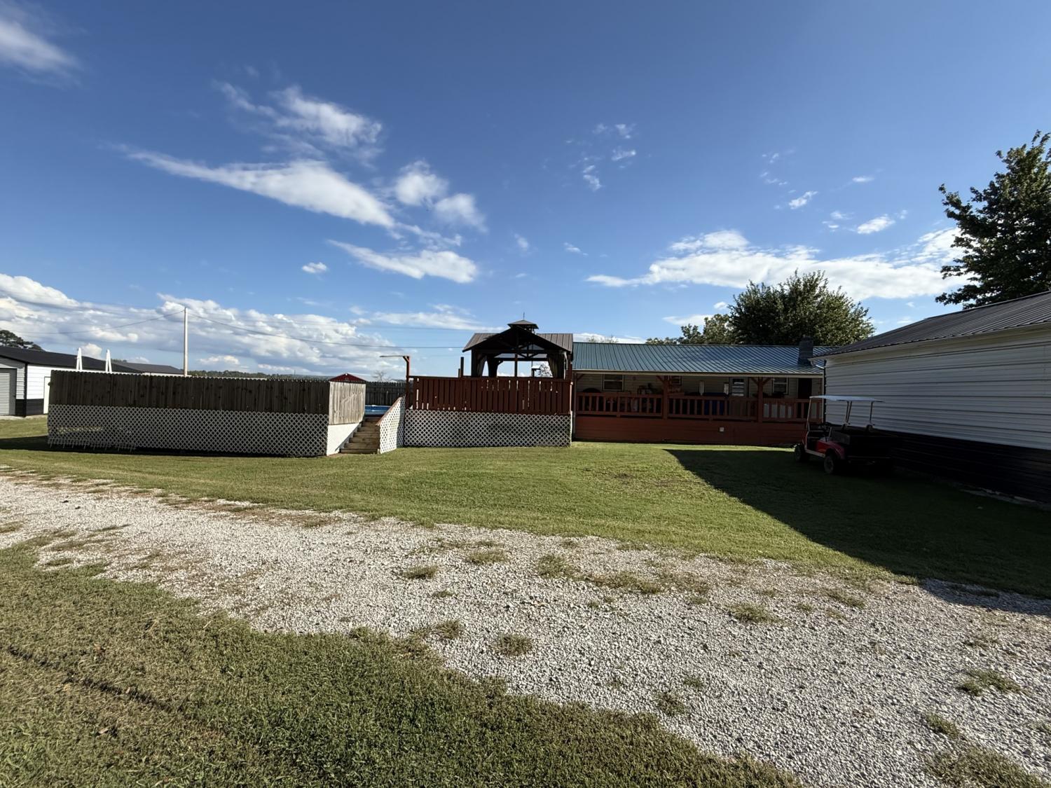 Dreaming of getting away to a Country Lifestyle? On 1.4 +/- of an acre corner lot surrounded by trees and farms... this 2 BDR, 2 Bath house features a large Den with side entry, Living Room/Dining Area with propane rock Fireplace. Huge Den could be used as a 3rd BDR, if needed. If you like the outdoors... there's a large, covered front and back porch, a deck with Privacy Fencing around a 32’ AG Pool with a Gazebo, a detached 2 car garage with a huge storage room, a detached 1 car garage is great for a workshop, and a Huge 24 x 50 Drive-thru SHOP with 4 Bay doors for easy storage of trailers, boats, etc. with Tims Ford Dam just minutes down the road. The backyard offers privacy. Large utility room. Selling AS IS with right to inspect.
