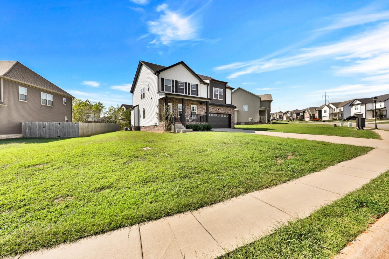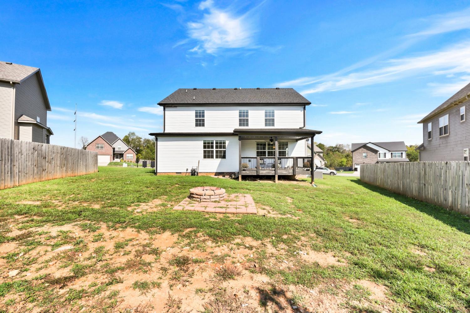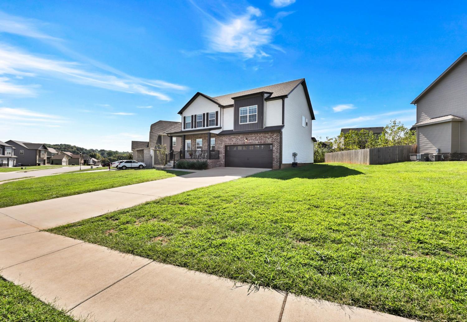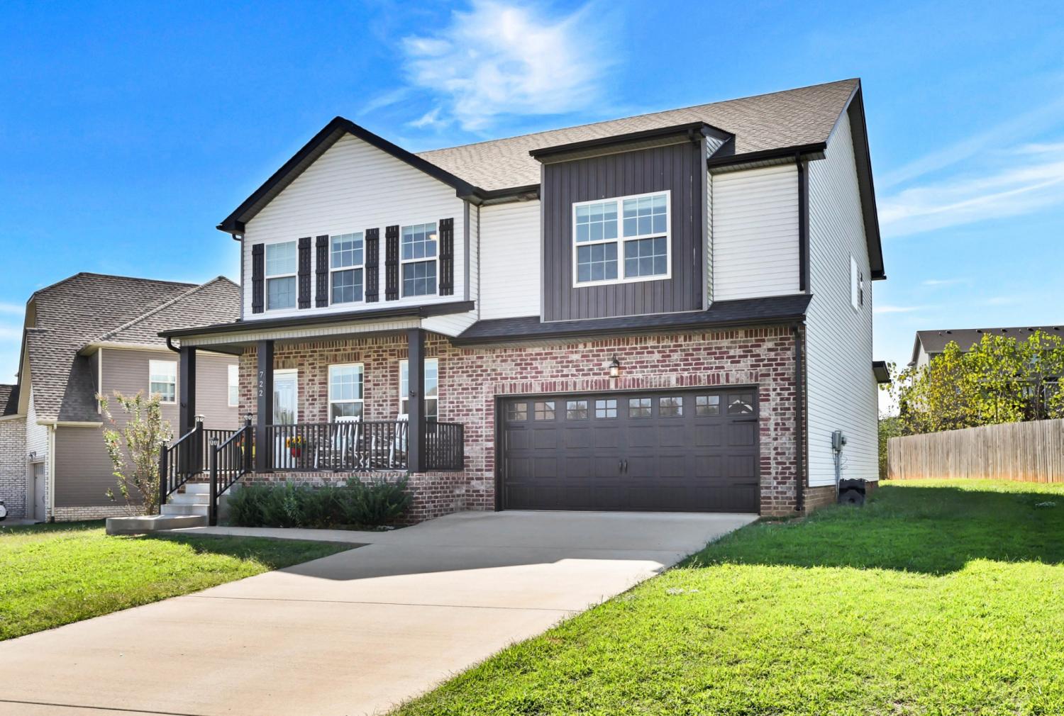 No HOA! Beautiful and well-maintained home built in 2021! White cabinets, granite countertops, and SS appliances in the kitchen with walk-in pantry. Electric fireplace in living room for those chilly evenings. Modern accent wall in the dining room. The primary suite features double tray ceilings, separate tub and shower, double vanities, and 2 separate walk in closets. Laundry room is conveniently located upstairs along with the bedrooms - Washer and Dryer convey!!. 2 car garage with SS refrigerator that remains. Enjoy your mornings/evenings rocking on the covered front porch or the covered back deck. Interior of home has recently received fresh coat of paint, professional house cleaning and carpet cleaning.