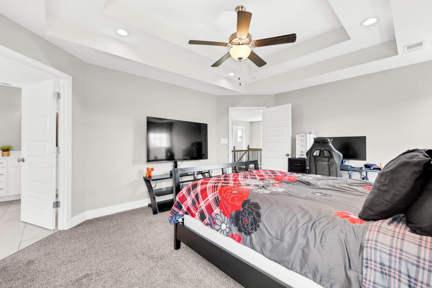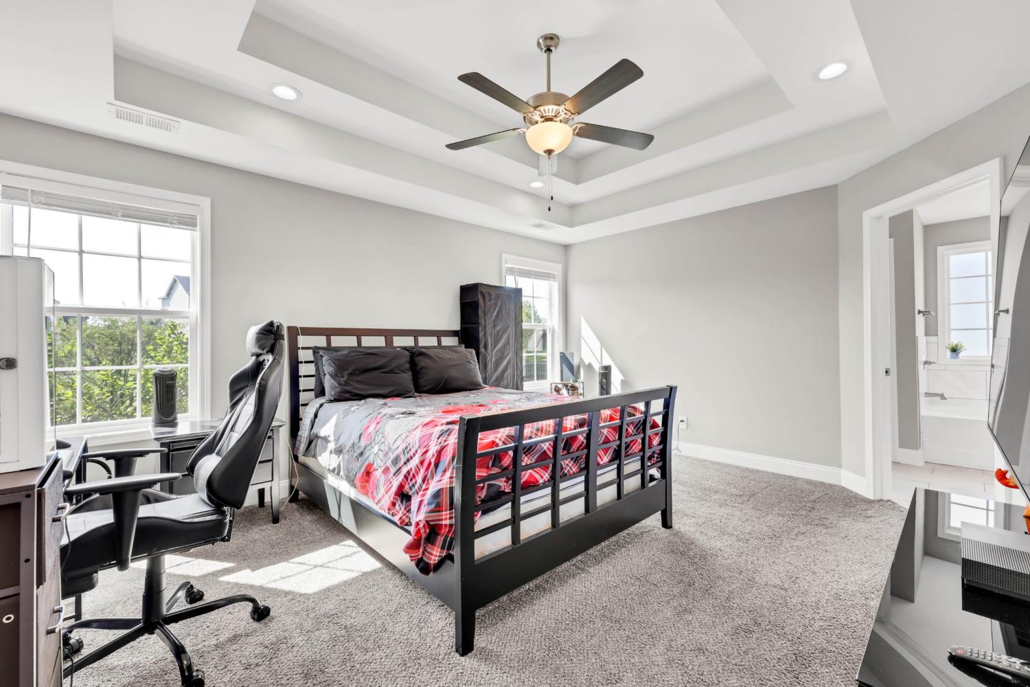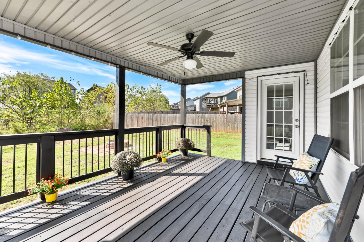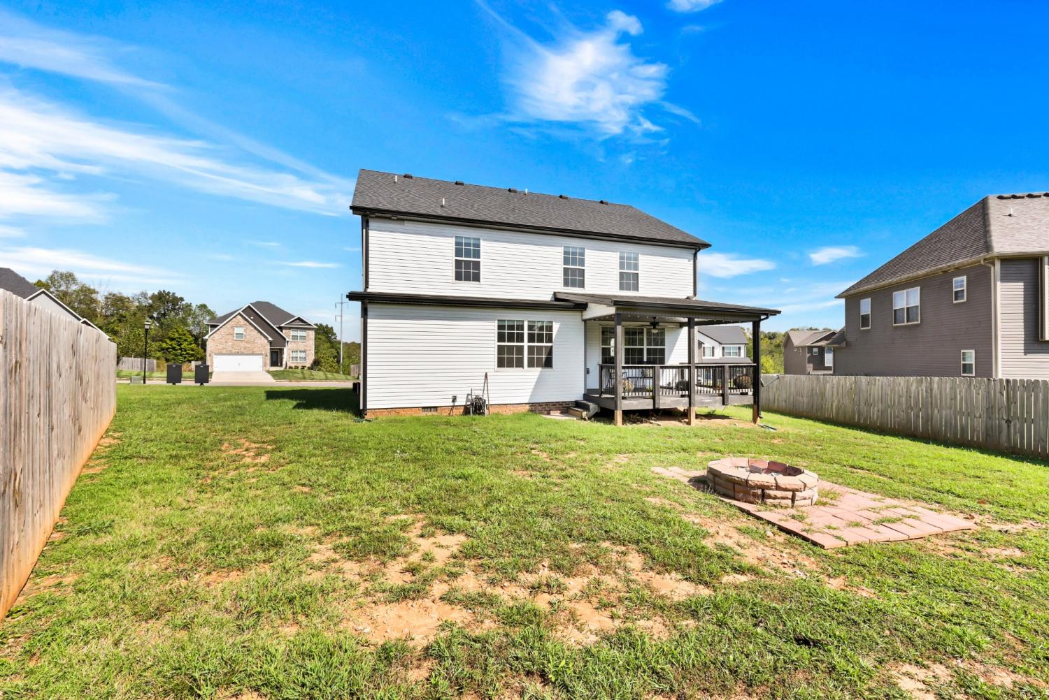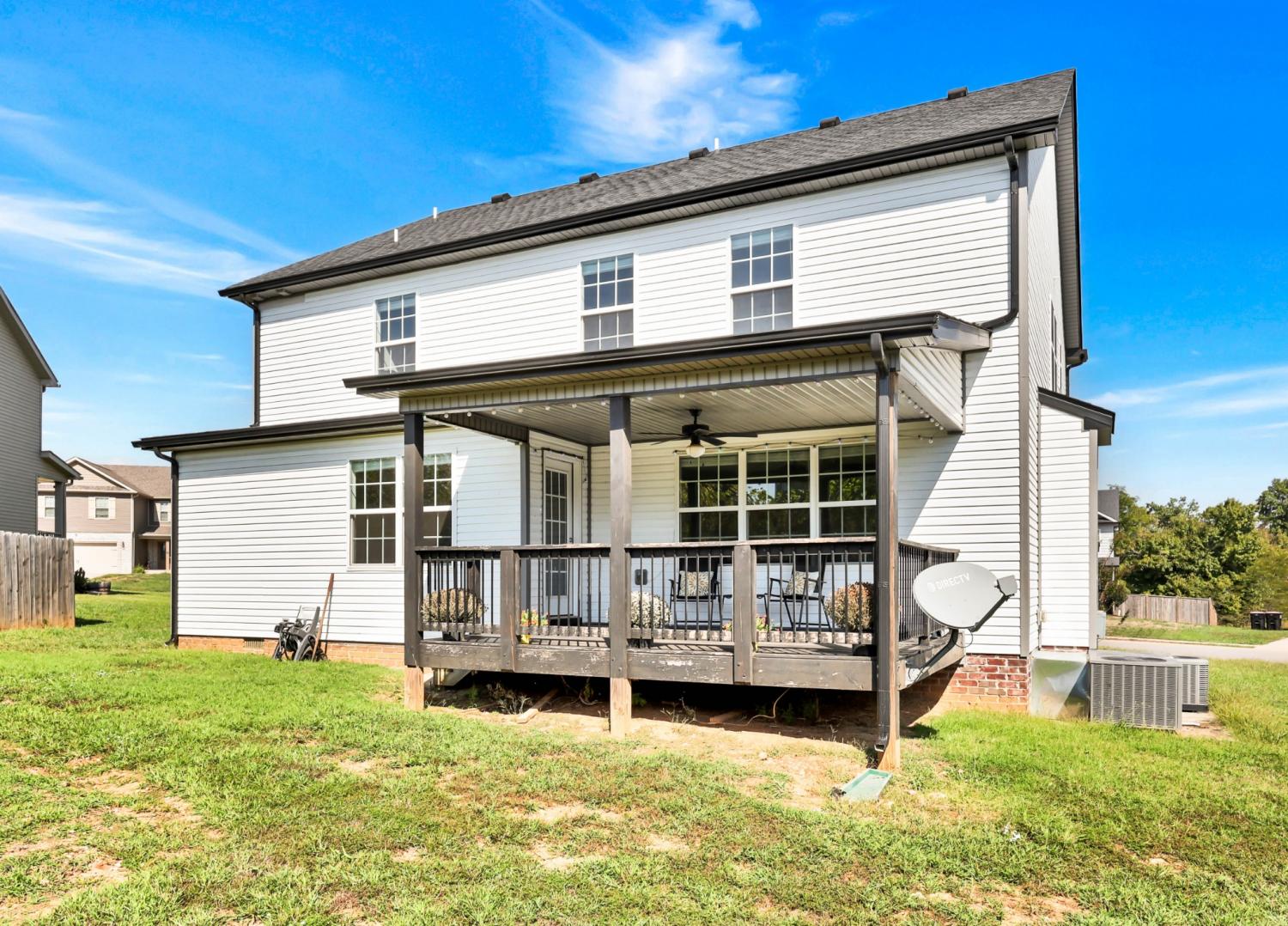 No HOA! Beautiful and well-maintained home built in 2021! White cabinets, granite countertops, and SS appliances in the kitchen with walk-in pantry. Electric fireplace in living room for those chilly evenings. Modern accent wall in the dining room. The primary suite features double tray ceilings, separate tub and shower, double vanities, and 2 separate walk in closets. Laundry room is conveniently located upstairs along with the bedrooms - Washer and Dryer convey!!. 2 car garage with SS refrigerator that remains. Enjoy your mornings/evenings rocking on the covered front porch or the covered back deck. Interior of home has recently received fresh coat of paint, professional house cleaning and carpet cleaning.