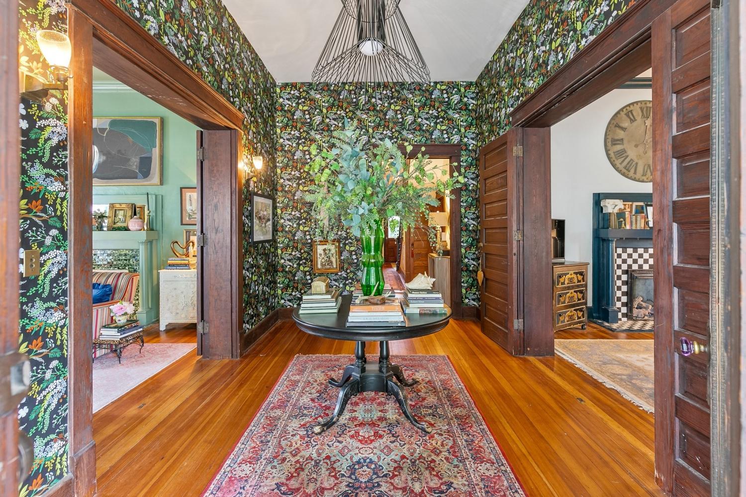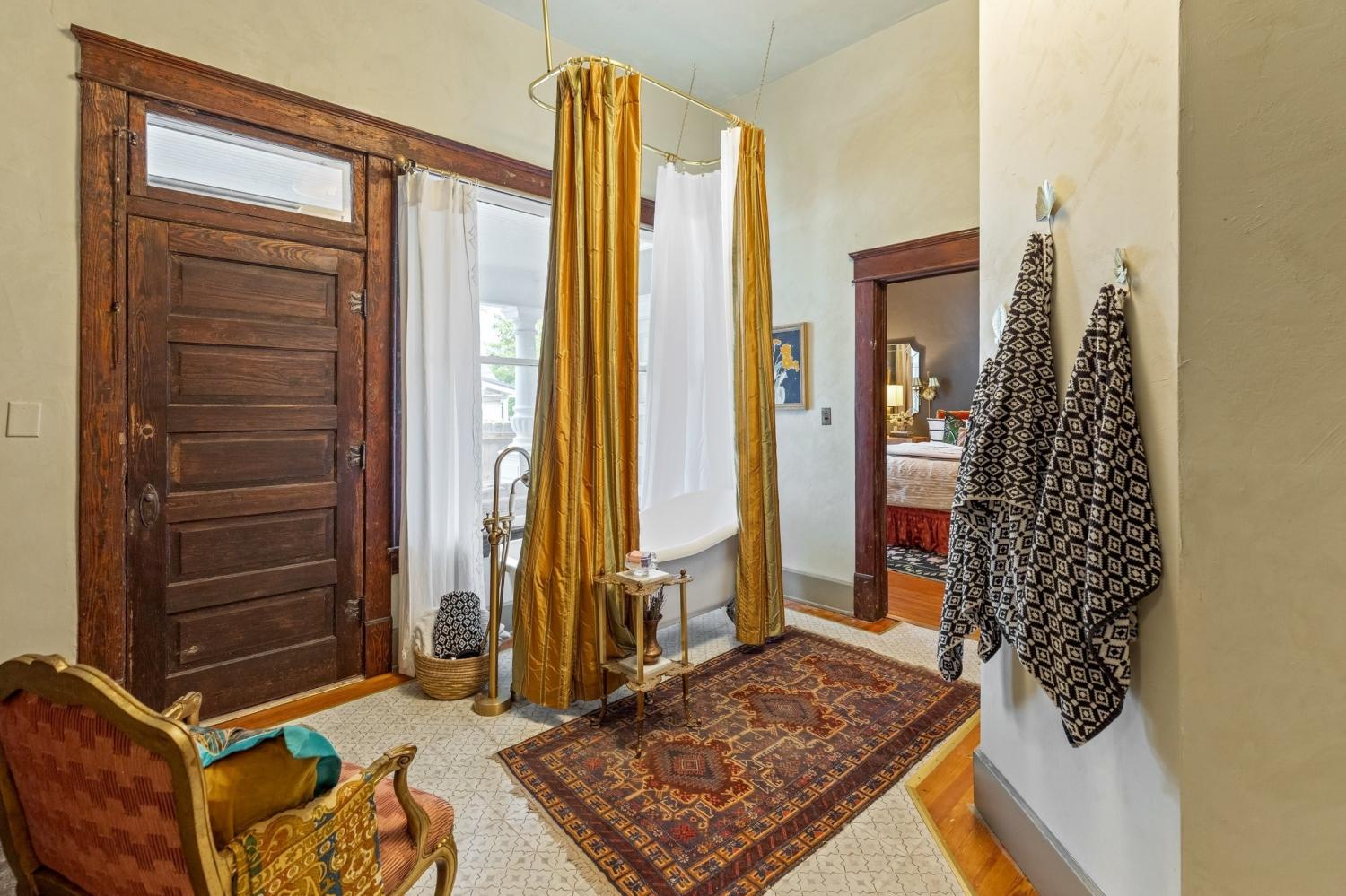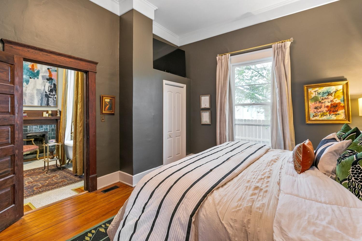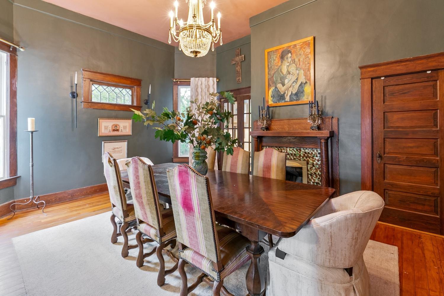 Stunning renovated Victorian home in the Arts District! Step inside to a beautifully designed home. It's been thoughtfully designed keeping its original character and charm with 12’ tall ceilings and original 8’ tall oak doors with original refinished hardwood floors with a modern flare. Primary bedroom features a new full bathroom with double vanities. Powder bathroom has been added for convenience. Sit outside on the amazing deep covered front porch, side covered porch off the primary bathroom, or on the new deck overlooking the backyard. Enjoy the fully fenced, shaded backyard. Great location and walkable to the Historic Square! Property is zoned CD4 General Urban Character District allowing for commercial or residential use. Must apply for change of use if commercial as it it currently used as residential.