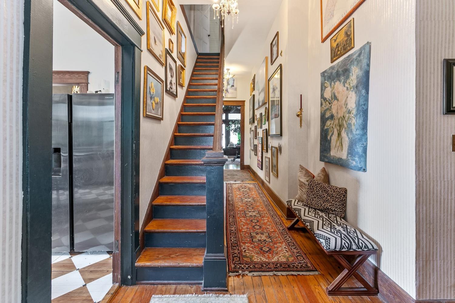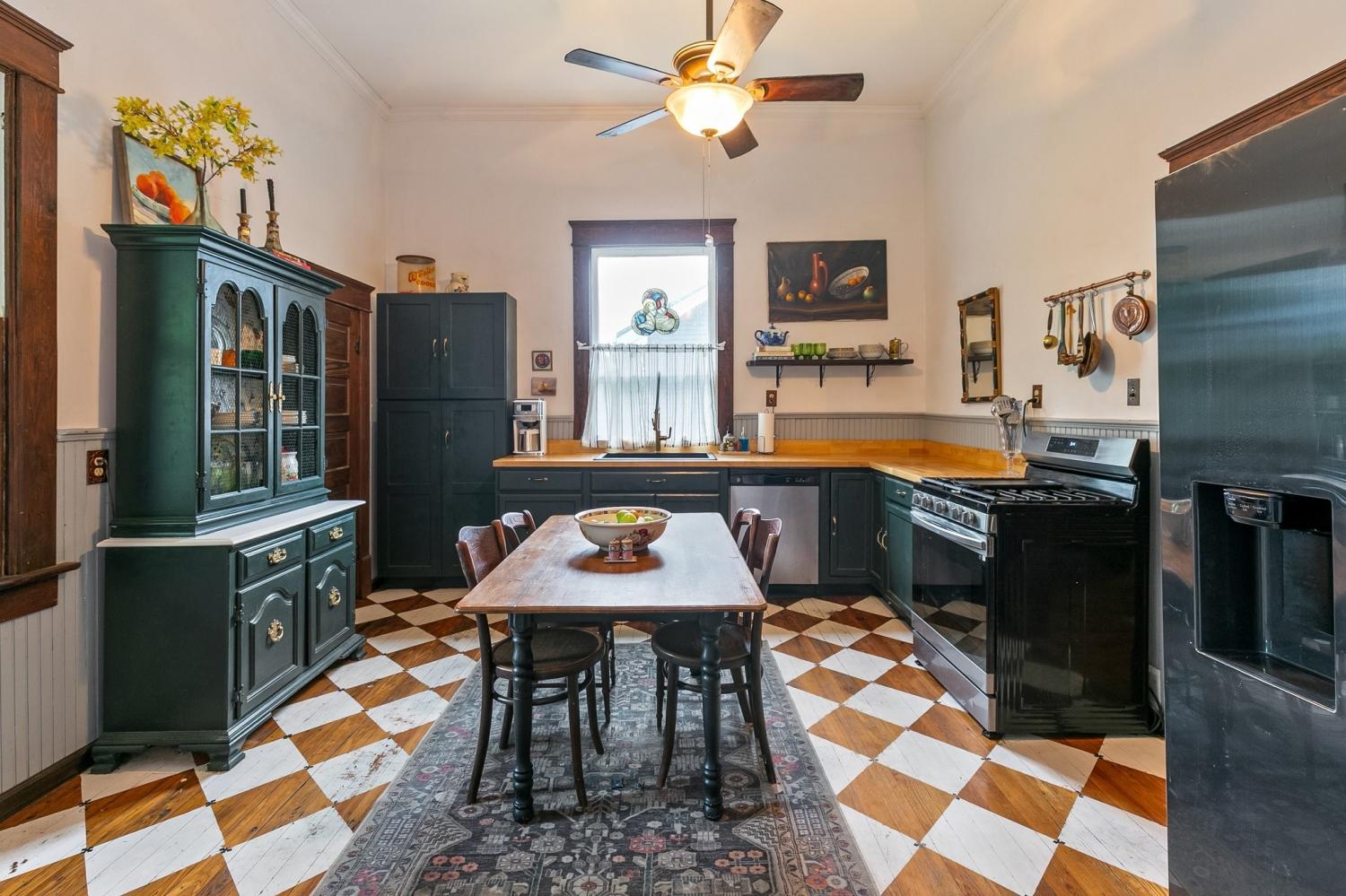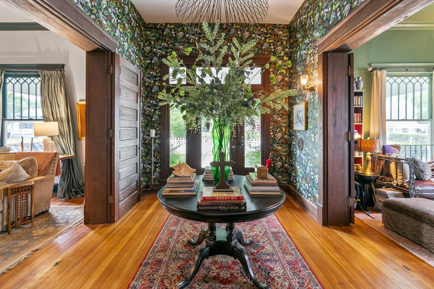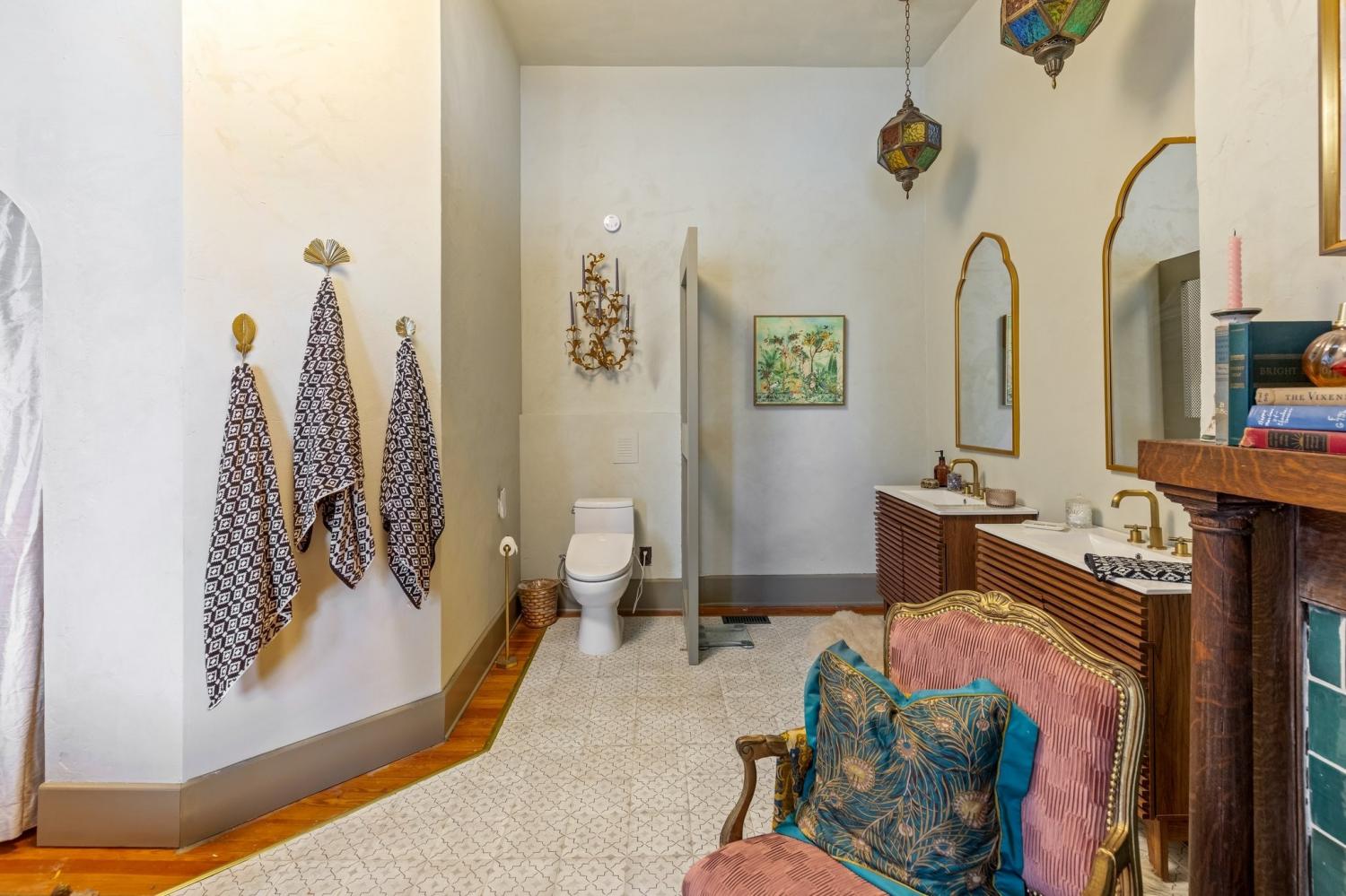Stunning renovated Victorian home in the Arts District! Step inside to a beautifully designed home. It's been thoughtfully designed keeping its original character and charm with 12’ tall ceilings and original 8’ tall oak doors with original refinished hardwood floors with a modern flare. Primary bedroom features a new full bathroom with double vanities. Powder bathroom has been added for convenience. Sit outside on the amazing deep covered front porch, side covered porch off the primary bathroom, or on the new deck overlooking the backyard. Enjoy the fully fenced, shaded backyard. Great location and walkable to the Historic Square! Property is zoned CD4 General Urban Character District allowing for commercial or residential use. Must apply for change of use if commercial as it it currently used as residential.