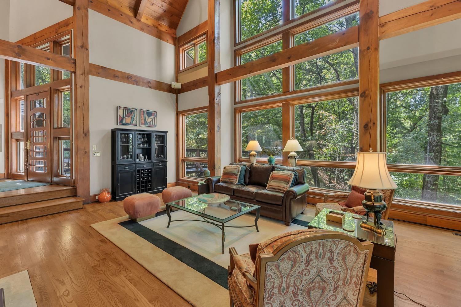 A striking blend of chalet warmth and Frank Lloyd Wright–inspired design, this home combines dramatic lines, abundant windows, and a seamless connection to its natural surroundings. Sitting on 11 wooded acres in a gated section at the back of Wildwood Subdivision, it features expansive windows, warm wood finishes & open living spaces. In the heart of Brentwood & only a 12-minute drive to Green Hills. Three screened-in porches. Elevator access to all three floors. 3 car garage w/additional workshop. Media room would also make a great recording studio.
