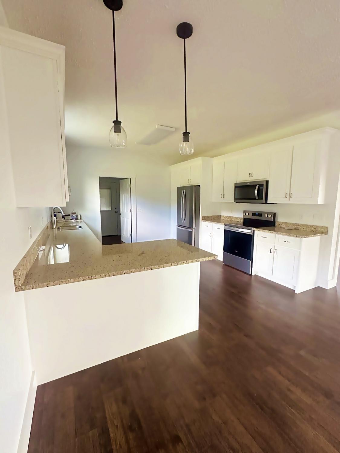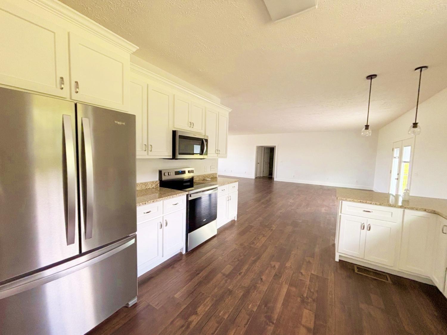NEW CONSRUCTION BRICK HOME perfectly situated on a 1.7 level lot with tons of curb appeal. The home features 3 bedrooms & 2 full baths. Entering through the front door of this open floor plan you will be amazed at the high ceilings & size of the living room/dining room. Hardwood floors are throughout the home except in the bathrooms and laundry area where there is tile. The kitchen has granite countertops with a breakfast bar, lots of cabinetry, counter space and stainless appliances. The split bedroom plan offers a large primary bedroom suite with a walk-in closet and bath boasting a walk-in shower, double vanity and a separate tub/shower unit. The additional two bedrooms are nice sized also and that wing has a conveniently located full bath. The attached double garage is oversized, and the rear composite deck located directly off of the living/dining area offers a fantastic outdoor living space. The large back yard offers privacy and a great place for the kids to play.