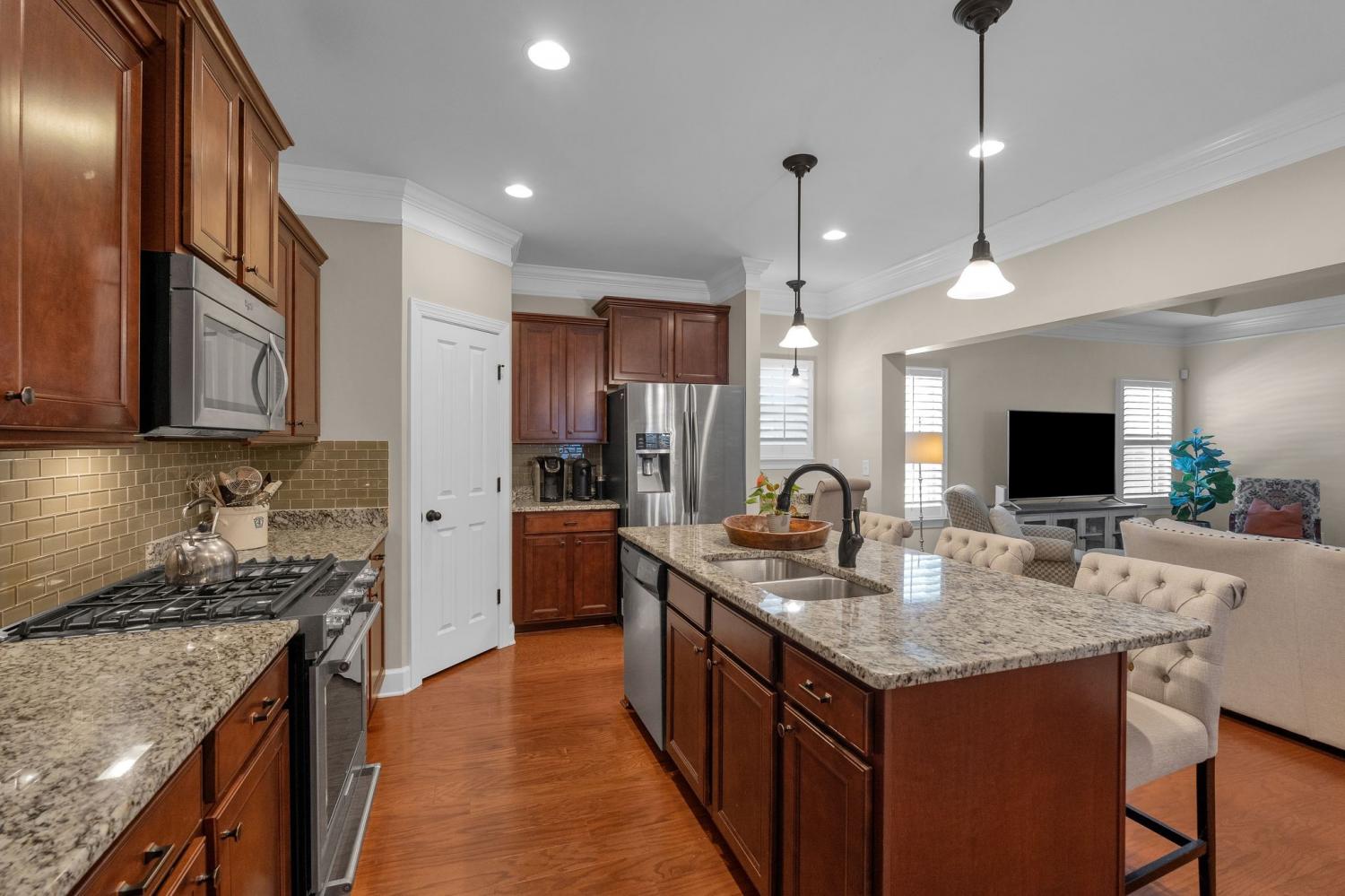 OPEN SUNDAY 2-4PM! Welcome to this beautiful ALL one-level home where comfort meets everyday ease. With 4 bedrooms and 2 baths, this home sits proudly on a large corner lot in Burkitt Place - a community with pools, playground, sidewalks, and walking trails. Step inside the foyer and feel right at home. You'll love the open floor plan. The hardwood floors, trey ceiling and fireplace add warmth and character to the living room, while the gorgeous kitchen steals the show with its spacious granite island and countertops, gas stove, pantry and plenty of room to cook, laugh, and make memories. There is also a formal dining area for your gatherings. The primary suite with private bath offers a peaceful retreat after a long day. There's a laundry room just off the primary, and the additional bedrooms provide comfort and flexibility for whatever you need. Enjoy quiet mornings on the covered front porch, and unwind in the evenings on the back porch, overlooking your fenced yard. A two-car garage offers convenience and storage. There are plantation shutters throughout. HVAC is only 4 years old. And you will be a short drive to I-65, I-24 and all the things... grocery stores, daycares, coffee shops, restaurants, medical facilities, and more. Welcome home!