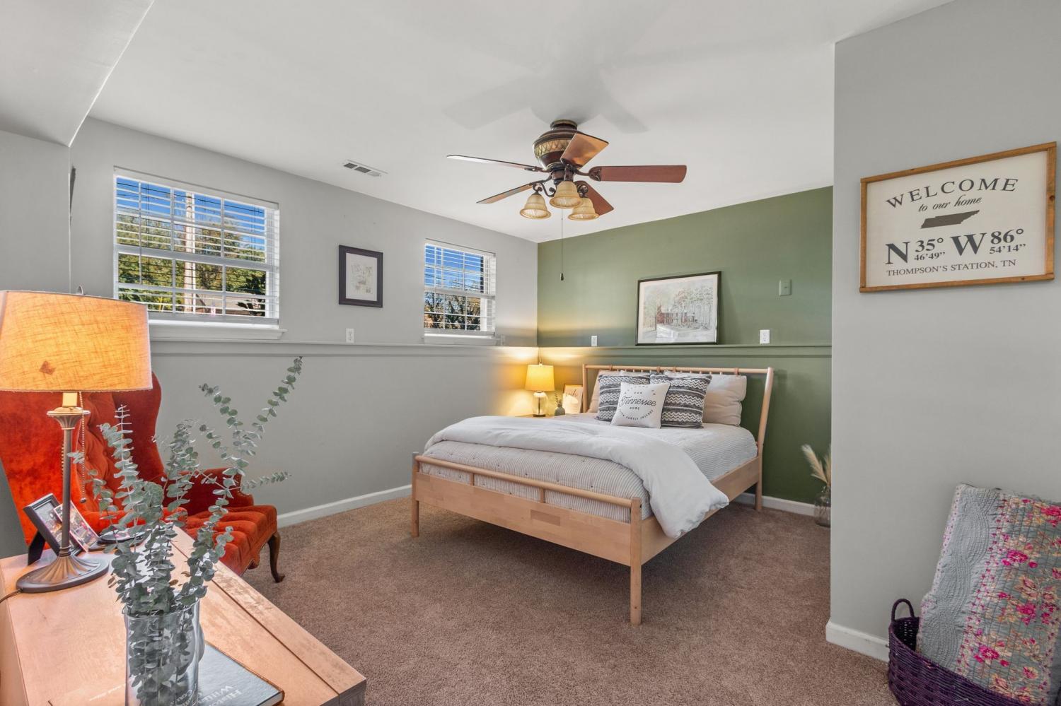 LOCATION, LOCATION, LOCATION!!! Beautifully updated home in Thompsons Station! Conveniently located in the Churchill Farms neighborhood. Open concept upstairs living space and newly renovated kitchen will greet you upon your arrival. The sun filled all seasons room overlooks the spacious fenced in backyard. Additional highlights include HVAC (2023), Front Door (2024), Professional French Drainage System (2025), Refrigerator (2023), Dishwasher (2025), Roof (2021), and newly renovated light fixtures and flooring. Master suite and secondary bedroom and full bath are also on this floor. The downstairs offers another large living space with two additional bedrooms and another full bathroom. Access to garage and backyard as well. The neighborhood pool is just a short stroll away. Professional pictures coming soon.