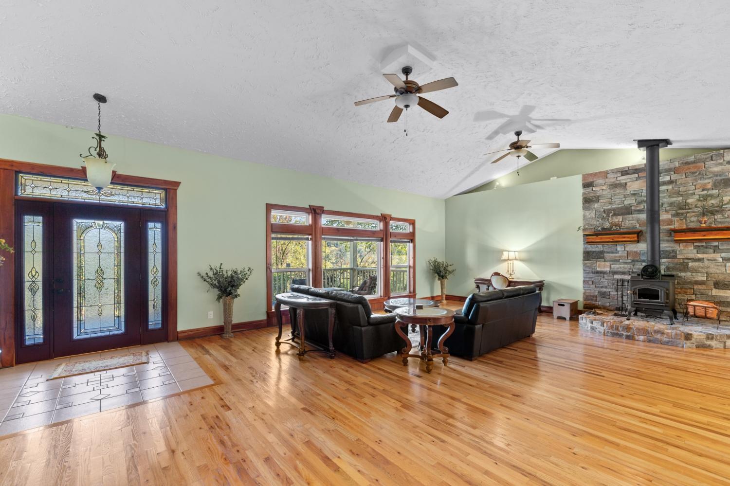 Welcome home to 2214 Happy Hill Road. Amazing 3 bedroom 2 1/2 bath home overlooking beautiful Tennessee hills. Oak flooring, Cherry trim - hand milled, stone fireplace with wood stove, vaulted ceilings, unique tiled area over gas range, tiled counter top in kitchen with extra bar sink and convenient pull-out drawers. Pella windows. Extra large tiled shower in main bath. Designer tiled entrance. Sink in laundry room with cabinets. Covered front porch, 2 car garage with side entry plus 2 car carport. Home framed with 2x6 studs.