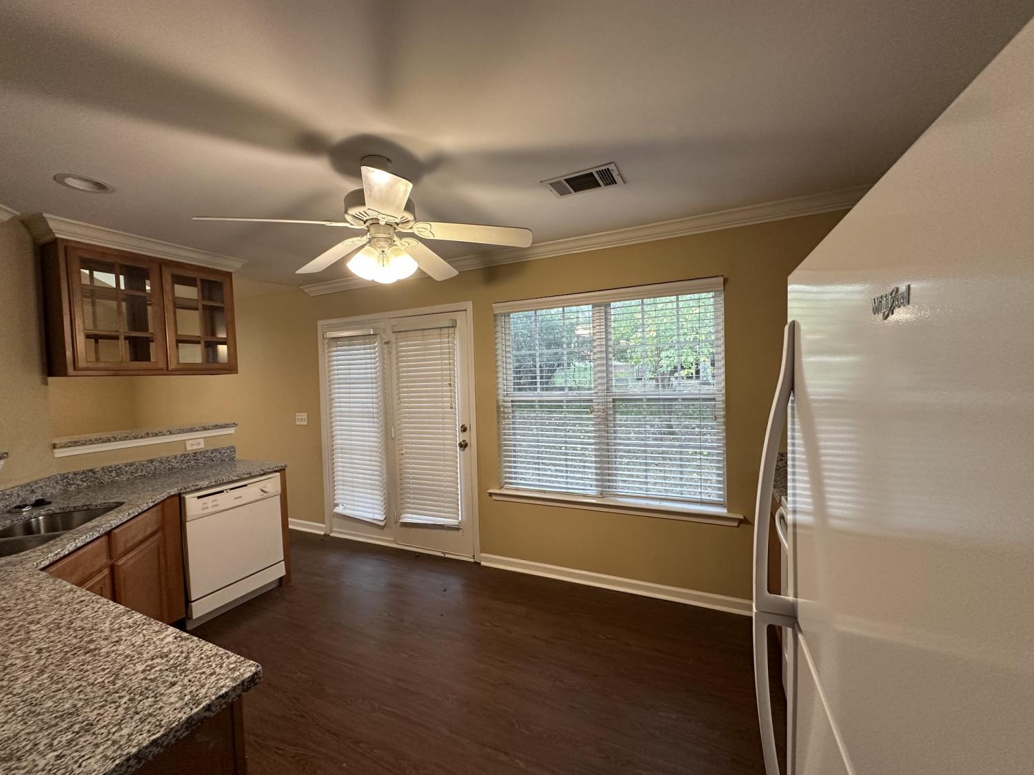 Cozy 3 bedroom, 2 bath one level home located in the heart of Hendersonville. This home offers, granite countertops, all appliances furnished in the kitchen, separate dining area, gas fireplace in the living room, private primary suite with a large walk in closet. Home has vinyl flooring throughout the home. Shaded back yard with patio. One small dog or cat only is permitted with an additional pet deposit. Call for more details.