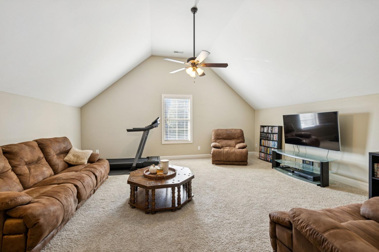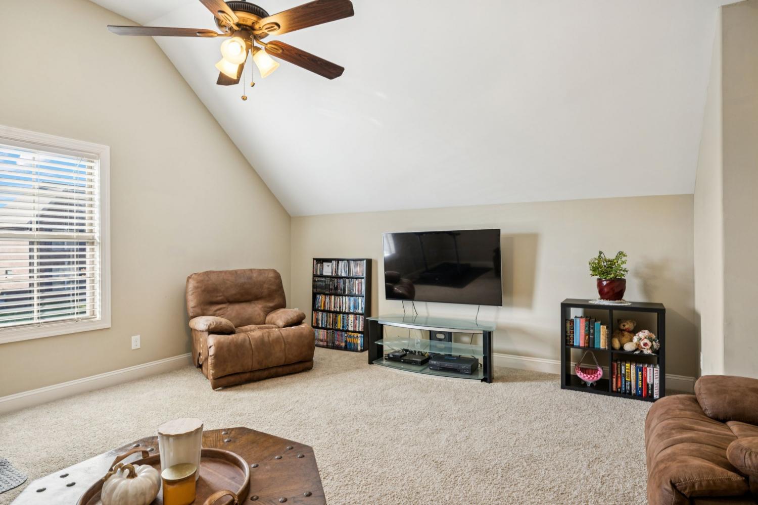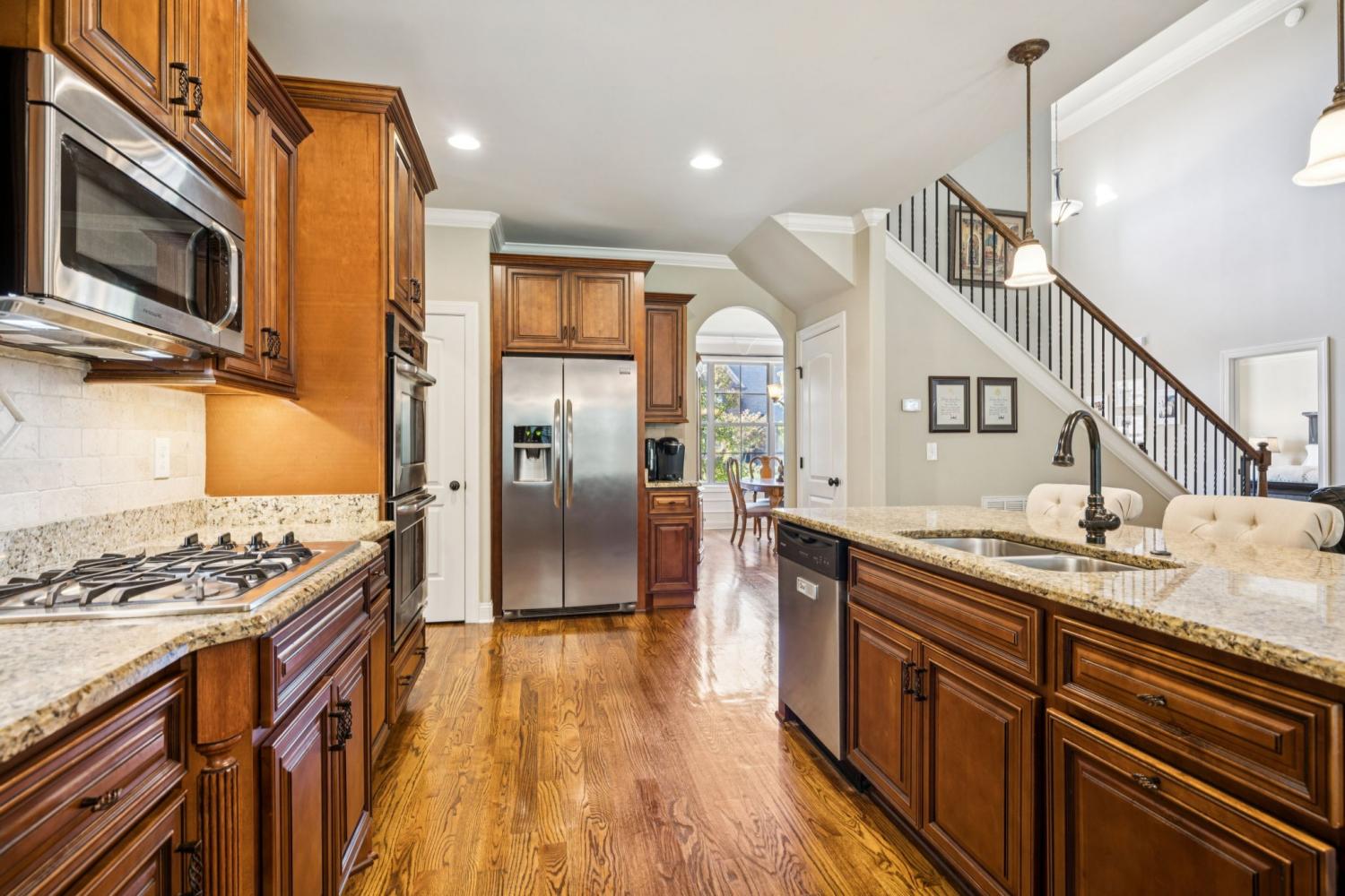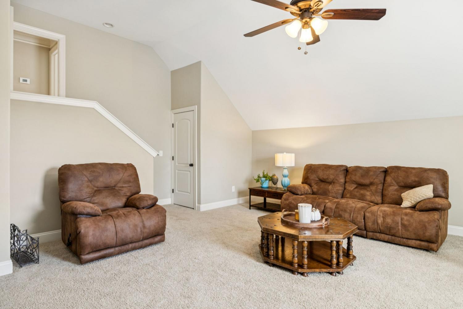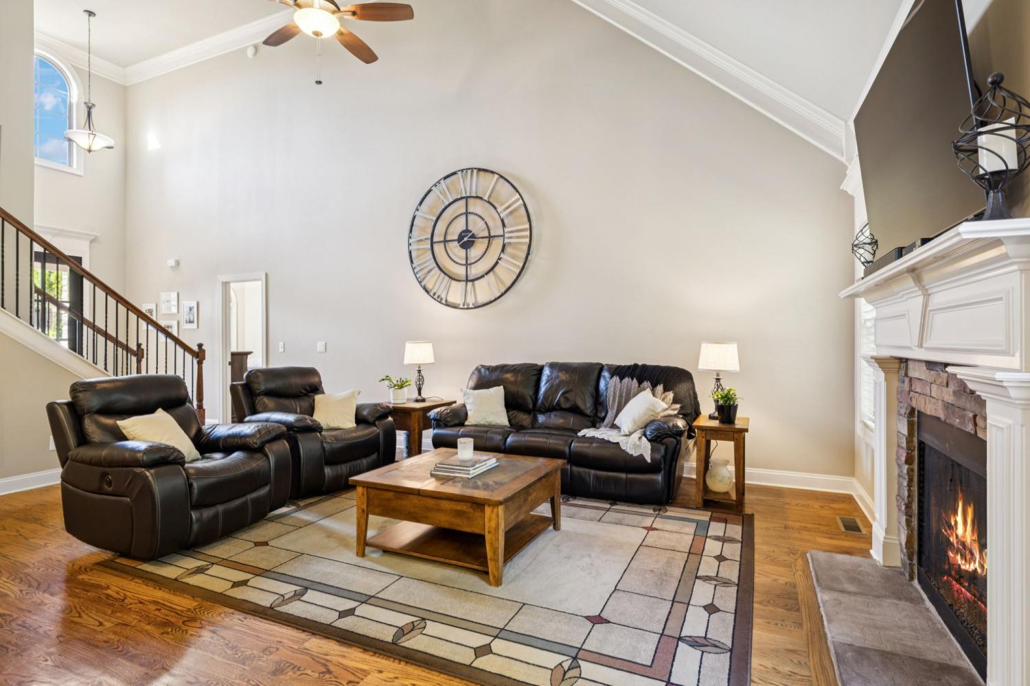 Beautiful custom-built home perfectly situated on a private, fenced lot backing to trees, this home offers quality construction and modern comfort. The main level features fresh sand and finish hardwood flooring throughout and beautiful neutral décor. The spacious layout includes a large primary suite, a guest room or office with a full bath, and a beautiful formal dining room that can easily serve as a home office or a dining space for the holidays. The open great room features high ceilings, beautiful crown molding and millwork, and a stone fireplace, flowing into a kitchen with granite countertops, custom cabinetry, designer tile, and a nice pantry. All appliances can remain, and the home’s smart automation system is negotiable. A large upstairs bonus room provides flexible space for a media room, gym, or playroom. The oversized utility room includes a sink, storage, and cubbies for easy organization, while the garage offers minimal steps into the home and additional storage. Outside, enjoy an oversized patio with a firepit and plenty of room for outdoor furniture. The level fenced yard backs to a tree line for added privacy. Residents of The Arbors at Autumn Ridge enjoy a welcoming community with neighborhood events such as movie nights, parades, food trucks, and summer celebrations. Zoned for top-rated Williamson County Schools—and don’t miss the brand-new elementary school just down the street! This home combines convenience, comfort, and timeless appeal. Buyers love this development that features custom homes, great location and a wonderful lifestyle.