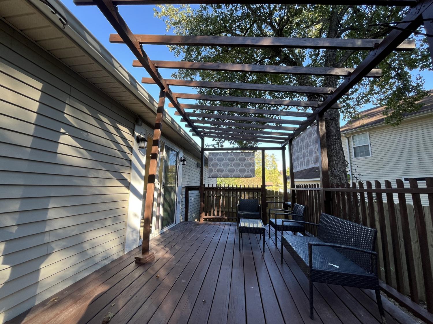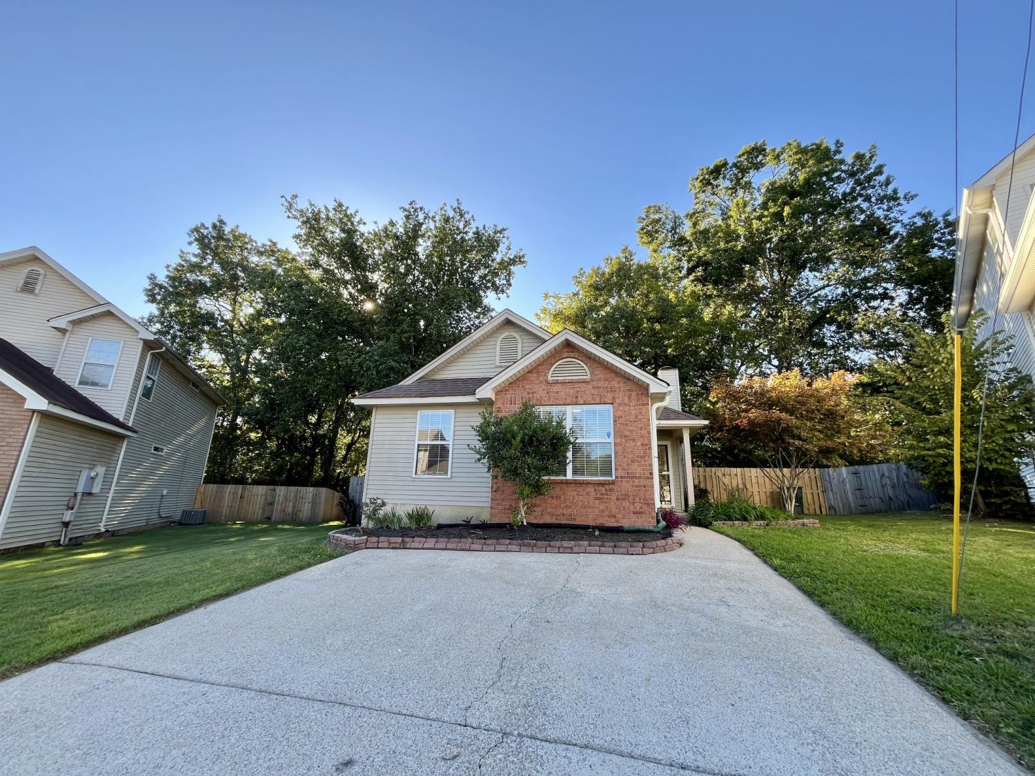 Step inside to a welcoming foyer and a spacious living room with vaulted ceilings and a cozy fireplace, creating the perfect gathering spot. The open layout flows into the updated kitchen and dining area, complete with modern cabinetry, sleek counters, and direct access to the backyard patio. The primary suite is set apart on one side of the home, featuring a thoughtful design with a central vanity, walk-in closet, and a tub/shower combo with a separate toilet area. On the opposite side, two additional bedrooms share a full bath with a tub/shower combo—ideal for family or guests. Throughout the home, you’ll find no carpet—tile flooring in the main living areas and durable laminate flooring in the bedrooms for easy maintenance. Outside, enjoy a fully fenced backyard with mature trees, a deck, and plenty of green space, all backing up to woods for added privacy. Conveniently located near I-40, Old Hickory Blvd, and Lebanon Pike, this home offers quick access to Kroger, ALDI, Publix, Northlake Village, and The Shops at Jackson Downs. You’re also just a short drive to Opry Mills, Percy Priest Lake, and Downtown Nashville, making this a prime Hermitage location.