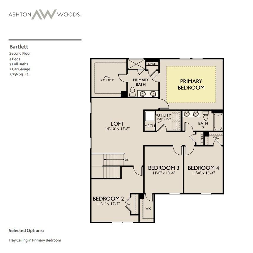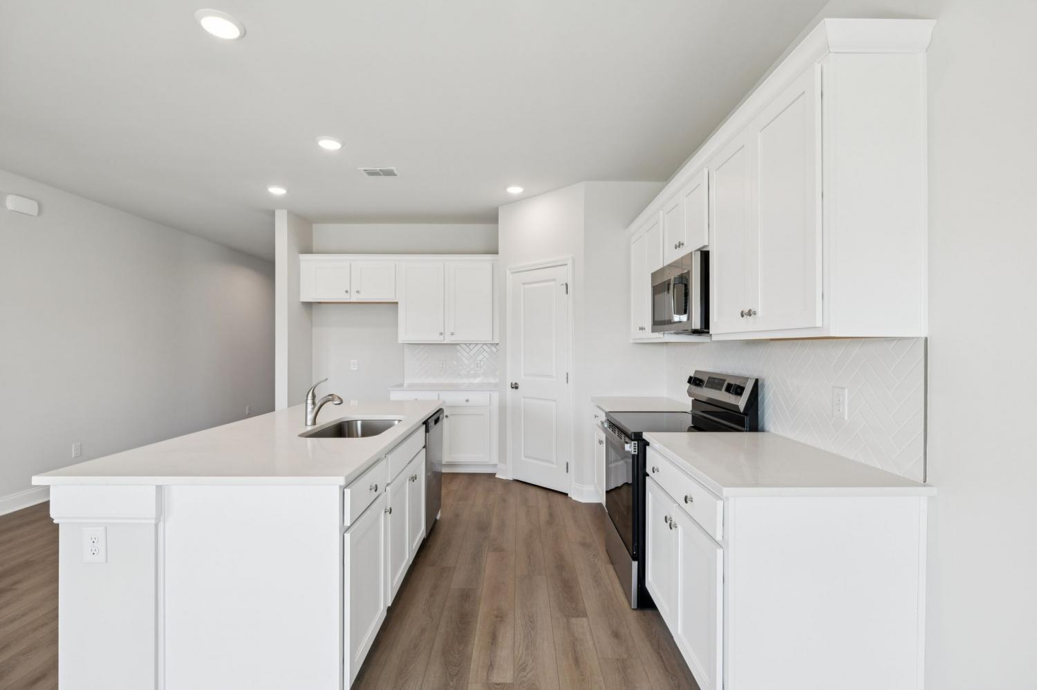 Homesite #39 - "The Bartlett" - Ready to Move In- Create memories when you step inside the five-bedroom Bartlett plan. This two-story home features a versatile flex room off the foyer, a covered patio off the dining area, and a bedroom on the main level ideal for guests. The open, designer-curated kitchen overlooks the spacious living room and features professional curated design finishes. Here, you'll find gorgeous cabinetry, quartz countertops, tile backsplash, and stainless appliances. On the second floor, a large loft area offers space for a media room, play room, or home office. The primary suite has a generous walk-in closet, tiled walk-in shower, and a dual vanity. Upgrades include tray ceiling in the owners suite, and a covered patio. Three secondary bedrooms, a full bathroom, and a laundry room with storage closet complete the second floor. Pictures of same floorplan with same finishes and actual floorplan.