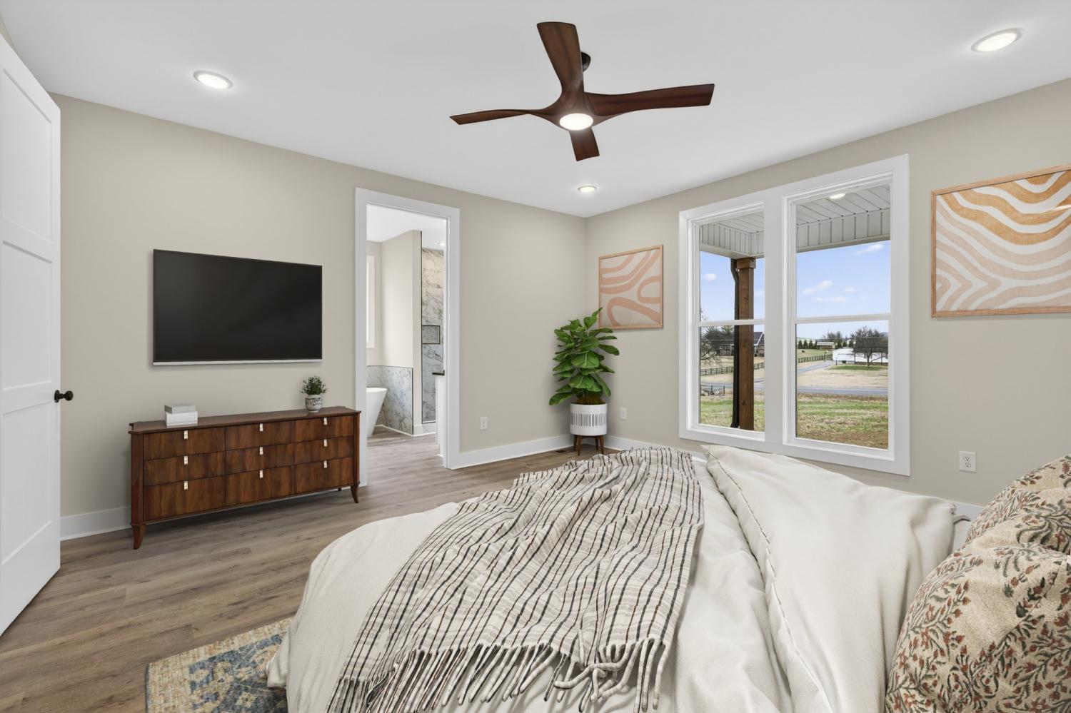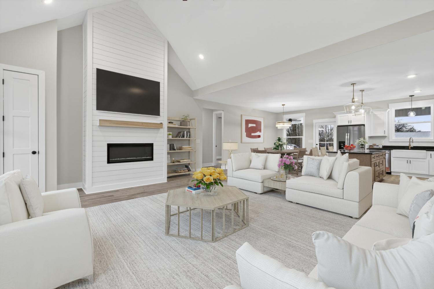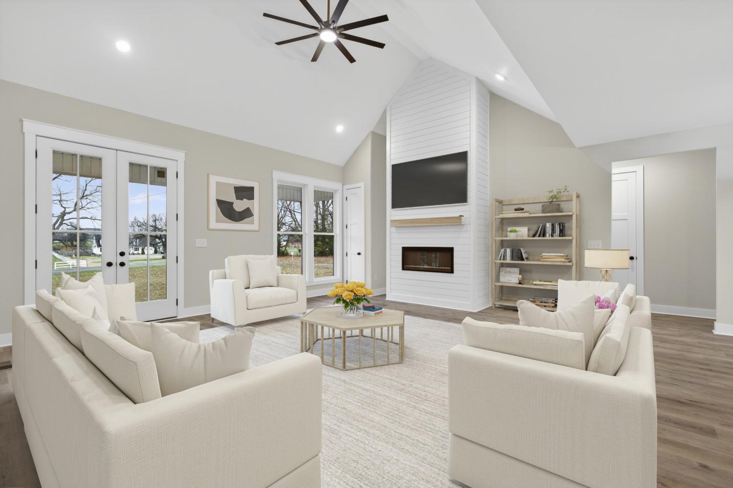 Beautiful new home on 2.39 acres with 40x70 shop! This 2,554 sq ft home offers 3 bedrooms and 2.5 baths on the MAIN FLOOR plus an UPSTAIRS BEDROOM, FULL BATH AND BONUS ROOM. Enjoy hardwood floors throughout, open-concept living with vaulted ceiling, fireplace, and built-ins. Gourmet kitchen with induction cooktop, wall oven/microwave, large island, and beautiful cabinetry. Luxurious primary suite features tile shower, soaking tub, and double vanities. Secondary bedrooms share a Jack & Jill bath. 9’ ceilings, 8’ doors, and spacious laundry off garage. Rocking chair front porch and covered back porch perfect for entertaining. Exceptional quality and value at $749,900—the best new home in Castalian Springs! Grass is AI generated