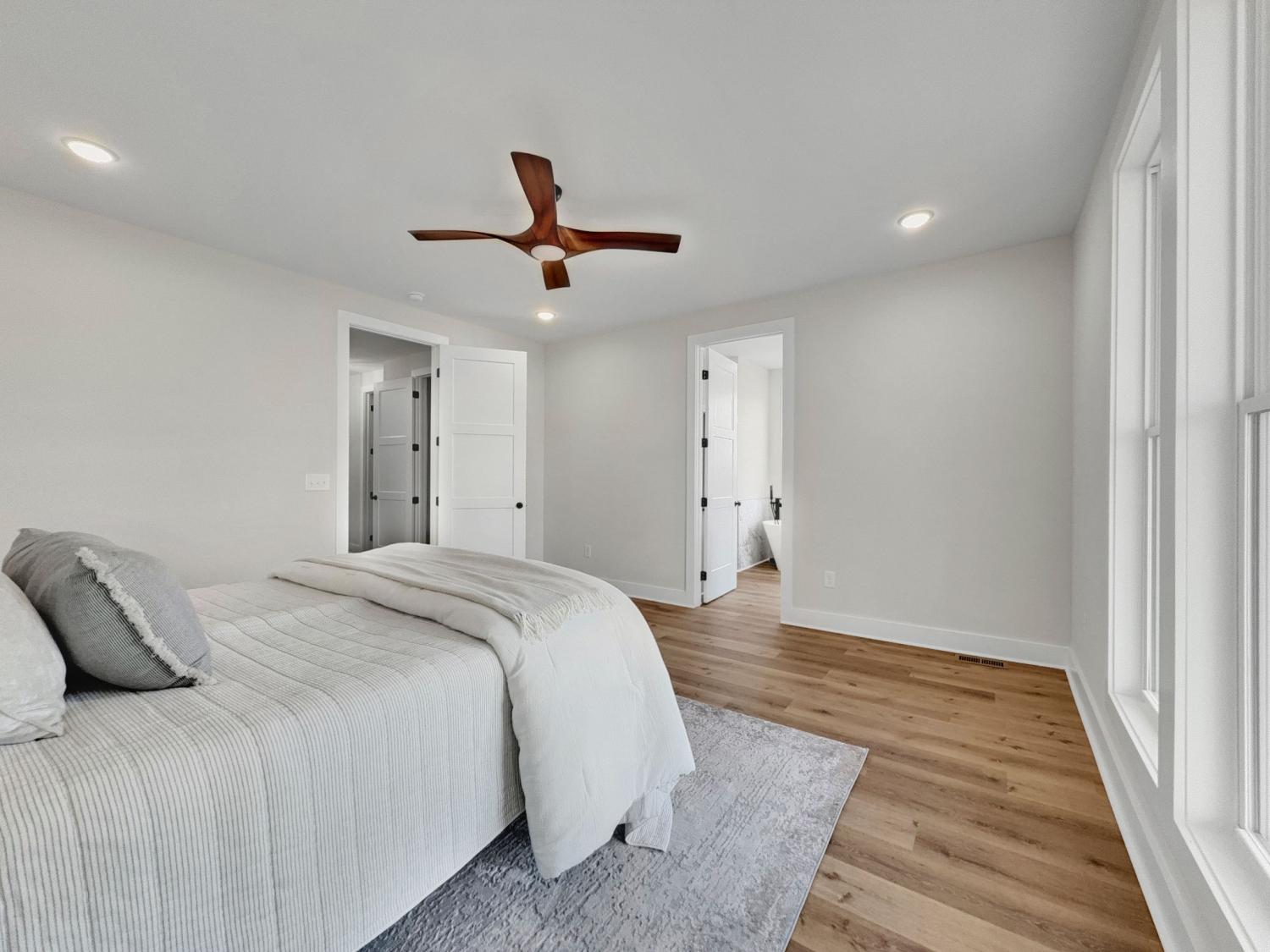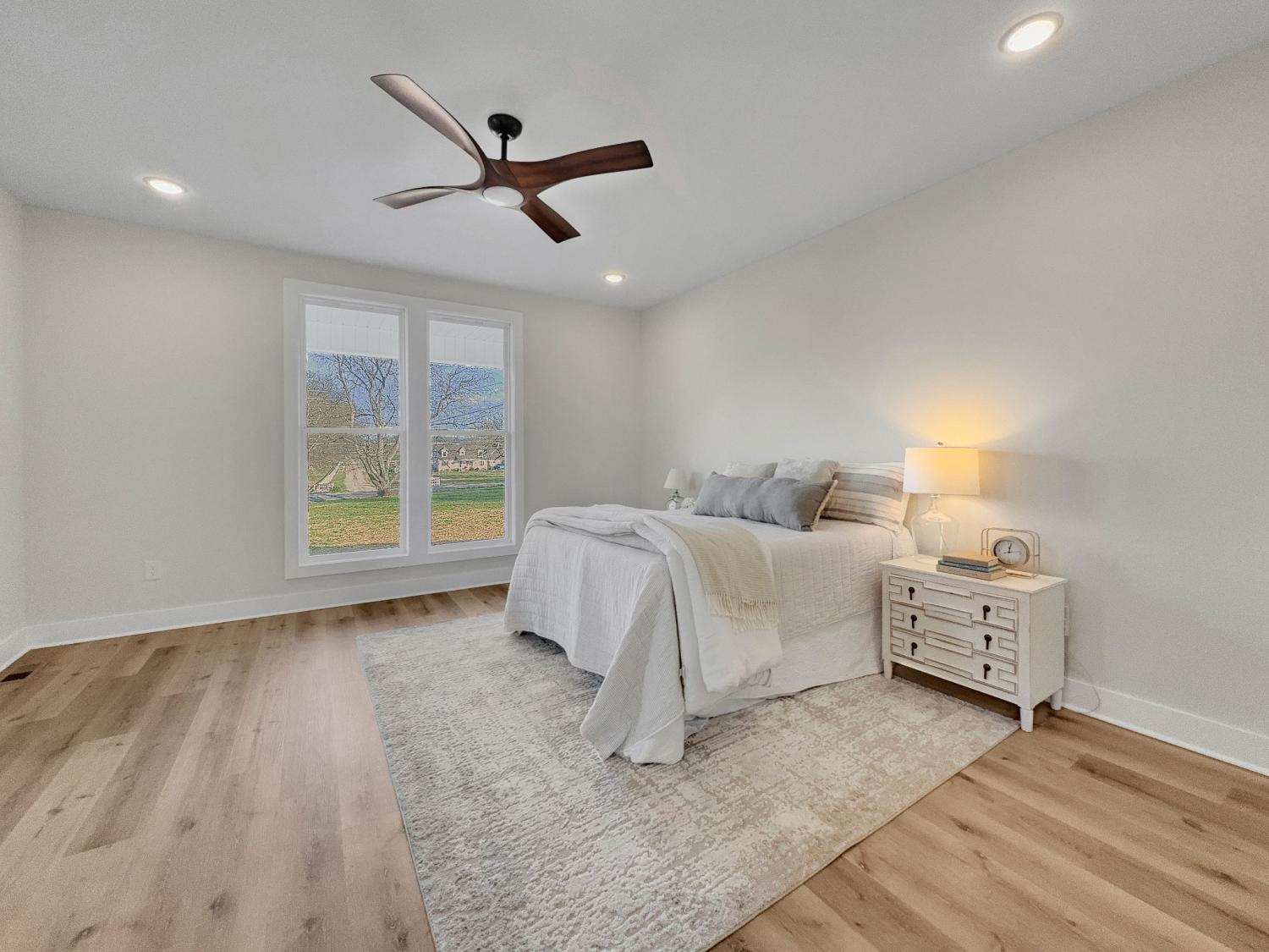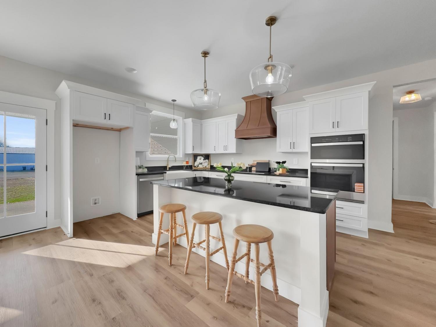 Beautiful new home on 2.39 acres with 40x70 shop! This 2,554 sq ft home offers 3 bedrooms and 2.5 baths on the MAIN FLOOR plus an UPSTAIRS BEDROOM, FULL BATH AND BONUS ROOM. Enjoy hardwood floors throughout, open-concept living with vaulted ceiling and electric fireplace. Gourmet kitchen with induction cooktop, wall oven/microwave, large island, and beautiful cabinetry. Luxurious primary suite features tile shower, soaking tub, and double vanities. Secondary bedrooms share a Jack & Jill bath. 9’ ceilings, 8’ doors, and spacious laundry off garage. Rocking chair front porch and covered back porch perfect for entertaining. Exceptional quality and value at $749,900—the best new home in Castalian Springs! Grass is AI generated