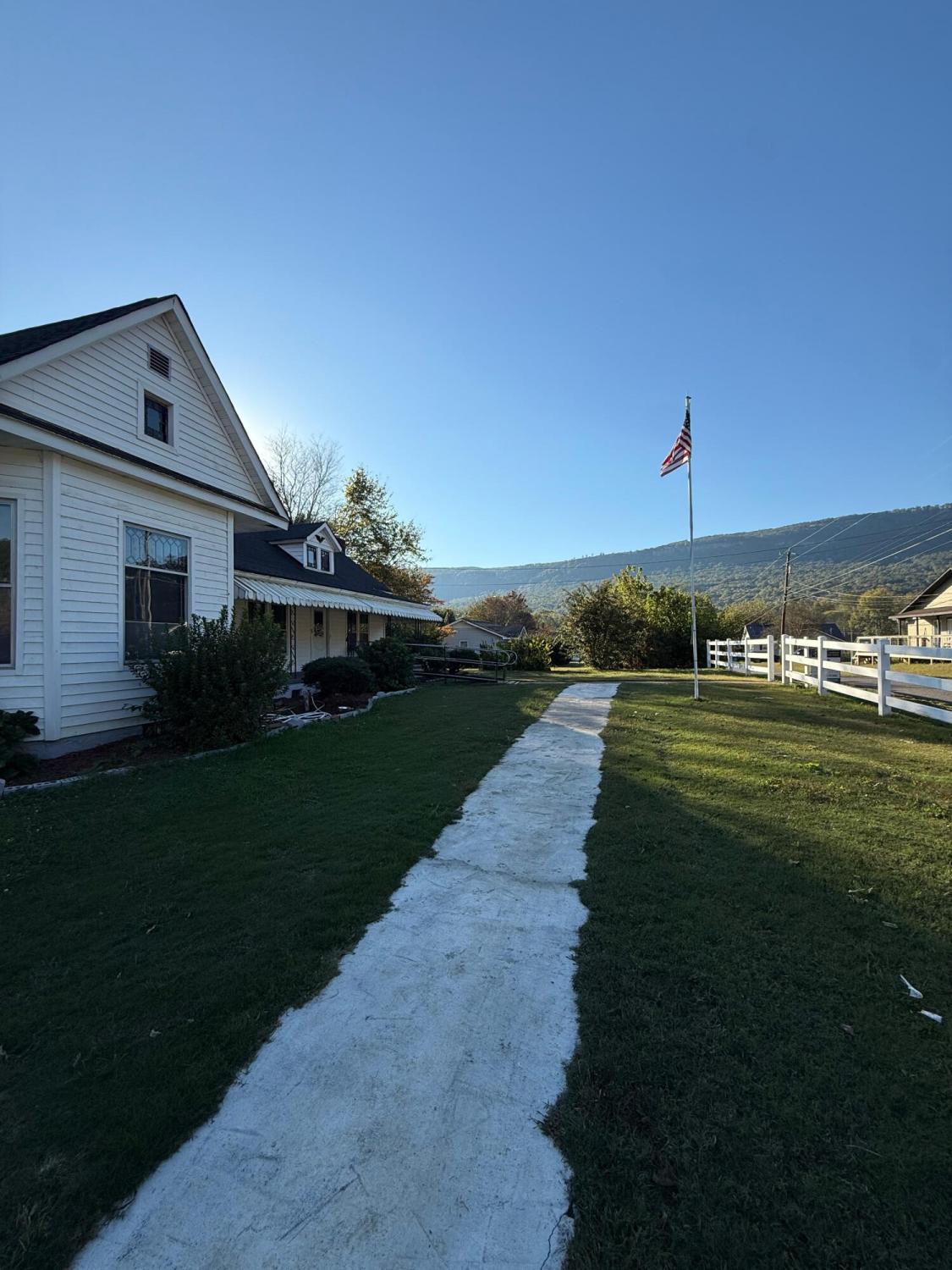 This historic one-level home offers timeless appeal, practical updates, and beautiful mountain views. Set on a large level lot with a fenced backyard, this home combines small-town convenience with the feel of open country living. The interior has large windows for natural light, a large living and dining room, and lots of cabinetry. The home includes a wheelchair ramp and a stall shower. The living area features a classic fireplace and large windows that frame the surrounding ridge views. The property also features two large outbuildings and a single carport space. A newer roof and water heater provide peace of mind, while the covered front porch and rear patio offer inviting spaces to relax and enjoy the outdoors.